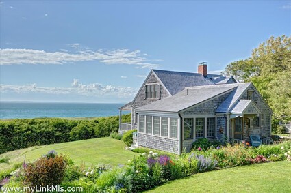Travel up a short winding, gravel drive and arrive at a compound of shingle-clad seaside cottages positioned to take advantage of the commanding views of Vineyard Sound, the Elizabeth Islands, Gay Head Lighthouse, Menemsha Pond and the village of Menemsha. This property, once featured on the cover of Architectural Digest, dates to the 1930’s and was lovingly renovated and restored by the current owner and Joseph Dick, a well-known and respected architect on the Cape and Islands.