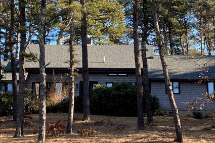 WATER VIEWS – WATERFRONT COMMUNITY. Set upon the hill overlooking Fresh Pond, with water views from almost every room and ample space to gather friends and family. A premier location to enjoy your Vineyard lifestyle and all that the Sengekontacket community offers - access to both fresh and saltwater ponds, a community dock, clubhouse, tennis/pickleball courts, kayak storage, and boat ramp, walking trails. A central kitchen with island, hardwood floors, and dining area lead to a sunny living room/great room with a dramatic brick fireplace and large den with a cozy propane stove, both with soaring cathedral ceilings and wood beam detail. Stairs lead to an expansive enclosed loft space designed as the fourth bedroom or home office. The main living spaces all enjoy water views to the north and large glass doors to the south for easy access to over 750 s/f of deck designed for the best indoor and outdoor entertaining. A sunny primary bedroom with an en-suite bath and walk-in closet, along with two bedrooms with large windows to highlight the water views and a full bath, complete the first floor. The large glass doors of the walk-out basement let in natural light and invite expansion.