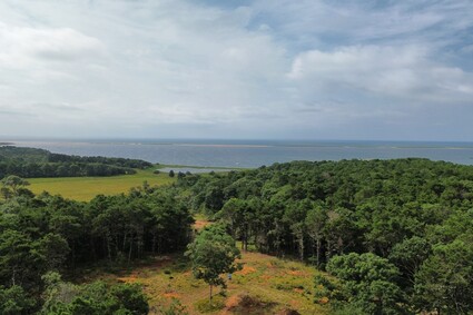 Chappaquiddick: Beautiful 9-acre parcel, a stone's throw away from Quammox Preserve, offering 30+ acres of conservation and water access on Katama Bay. The designated building envelope, perched high, affords water views and can accommodate a main house and guest house. Just off the paved road, the property is conveniently located near all the Chappy favorites- beaches, trails, a community center, and Slip Away Farm! Much of the preliminary engineering work has already been completed to help ensure ease of building. A wonderful opportunity!