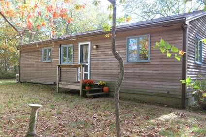 One level living! This ranch-style home has a great layout and some sweet, unexpected features. The living spaces are opened up to each other allowing the wall of sliders in the living room to flood the rooms with light - and these sliders give access out to the deck with serene views of the woodlands beyond; where Stoney Hill Path bounds the entire south side of the property. The primary suite is at one end of the home and has been expanded by the addition of a 3-season sunroom that also offers access out to the deck. At the far end of the house are the two guest bedrooms and their shared bath. The living room and all of the bedrooms have hardwood floors, the home is offered nicely furnished - and the full basement offers opportunities for additional living spaces. Great location just a hop, skip and jump to North Tisbury amenities or down-town Vineyard Haven.