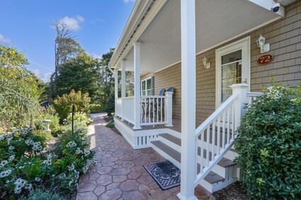 Covered Front porch to enjoy the beautiful butterfly and hummingbird garden.