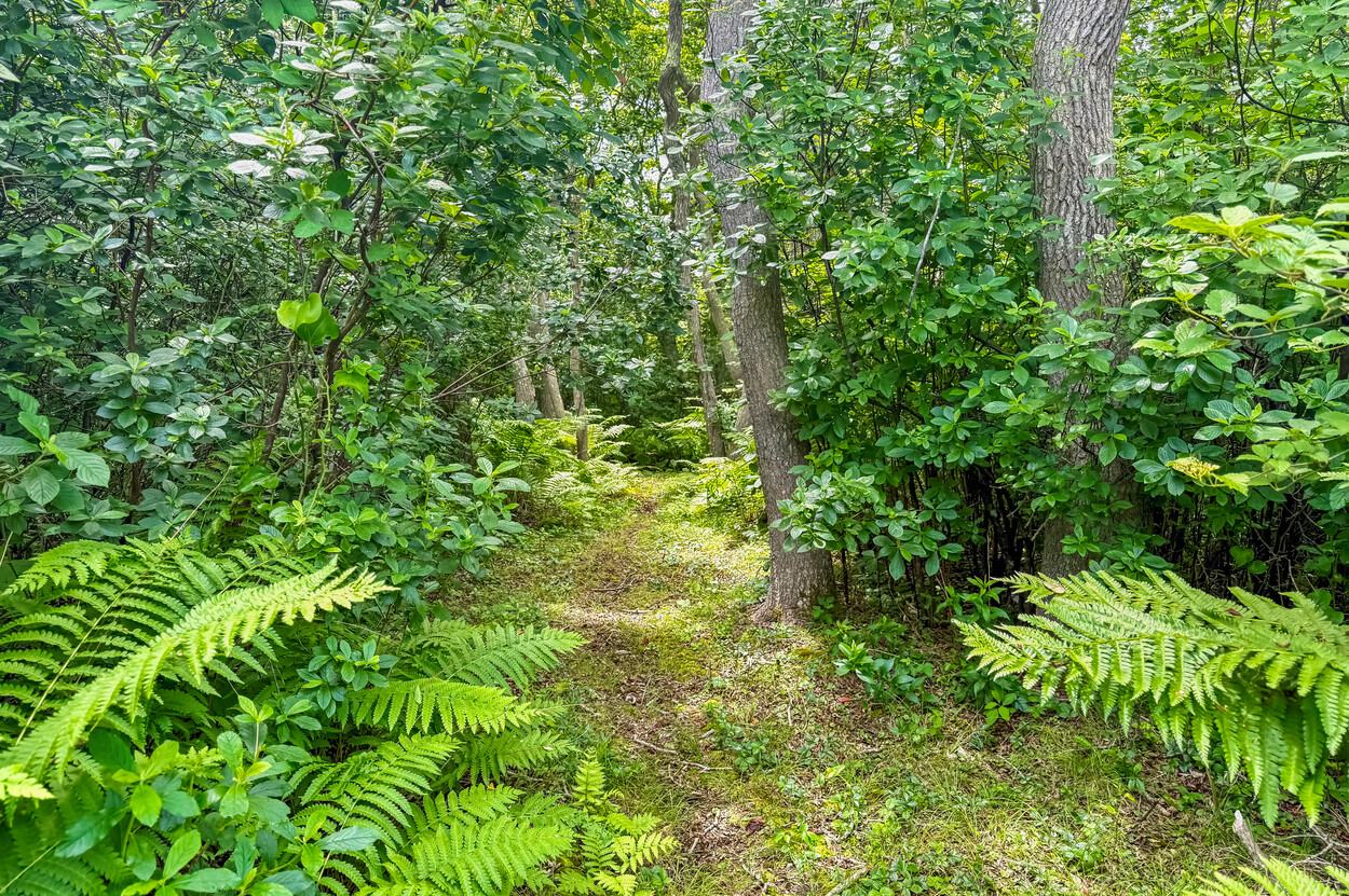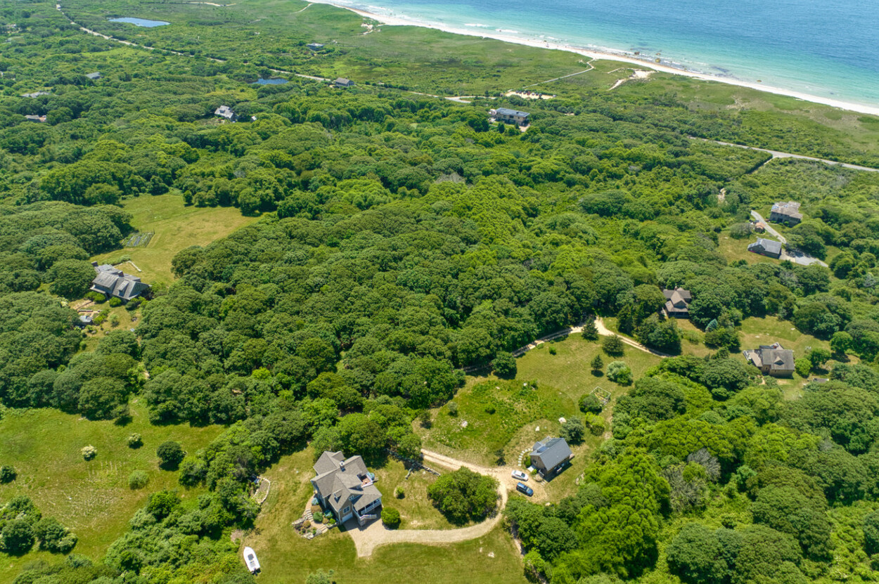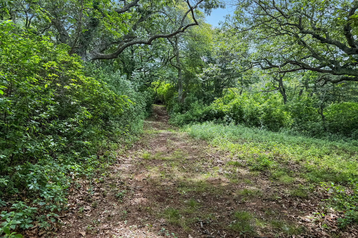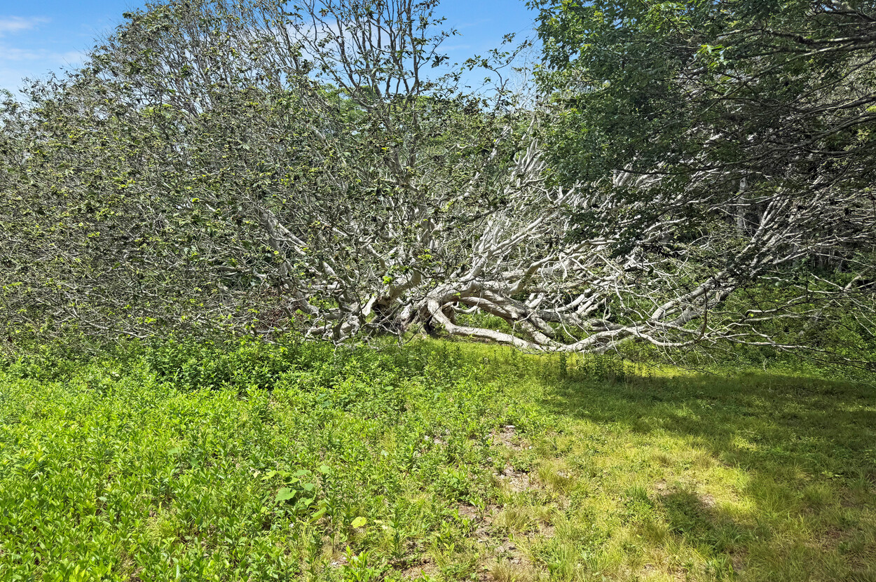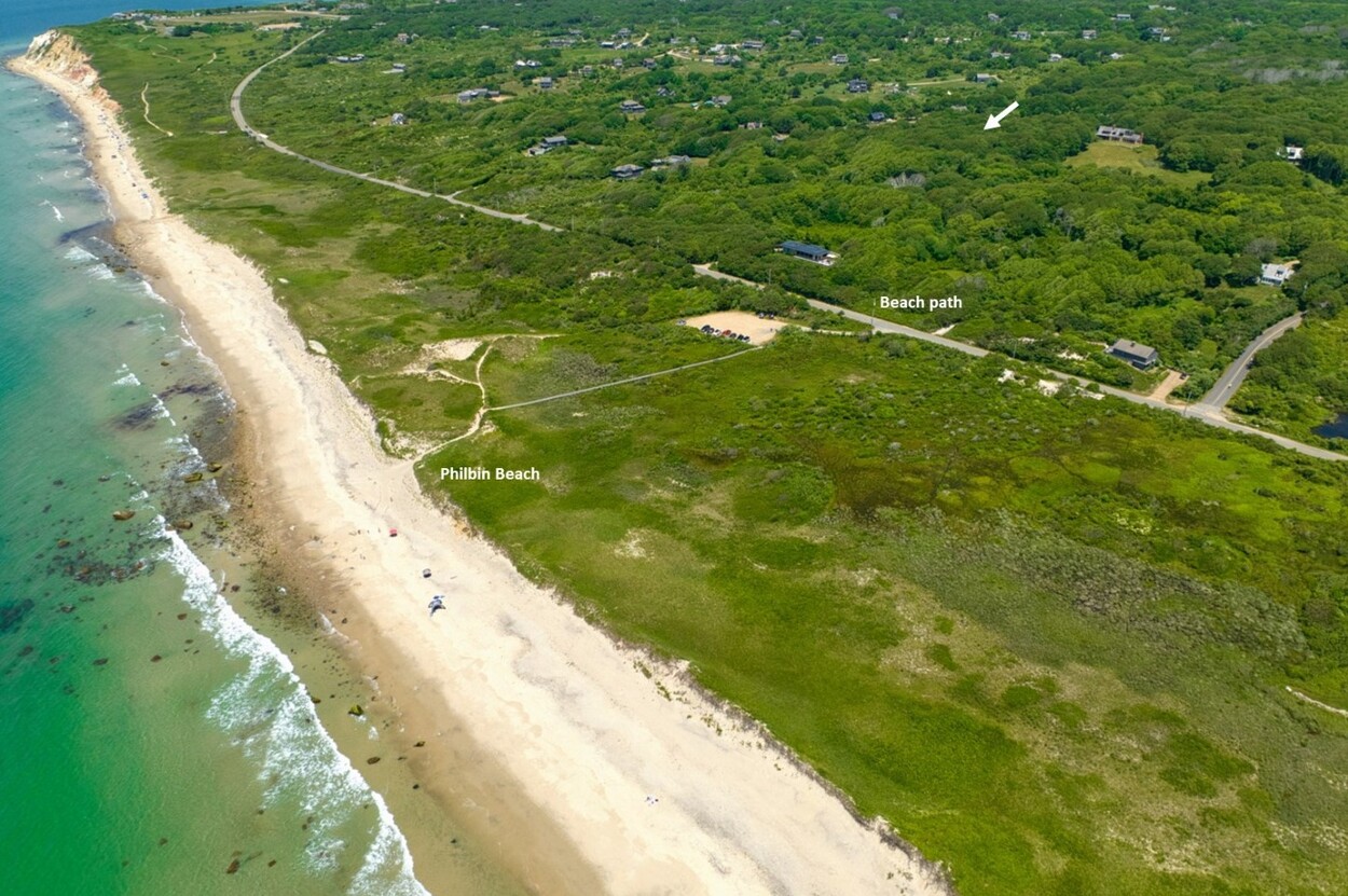 The nearby roar of the Atlantic can be heard from this pristine two-acre building opportunity in Aquinnah, ideally located at the end of Old Field Road with easy access from Moshup Trail. A storybook walking path through woods and fields over an easement bordering a majestic beetlebung grove and over a bubbling stream, leads directly to the entrance of cherished Philbin Beach. A thoughtfully designed building envelope is nestled atop a gentle knoll, offering elevation and seclusion, with further protective covenants in place to preserve the natural beauty of the landscape and enhance the sense of privacy.