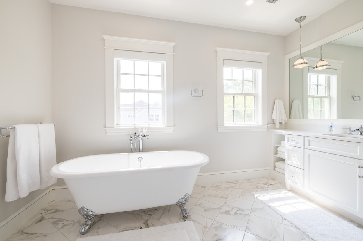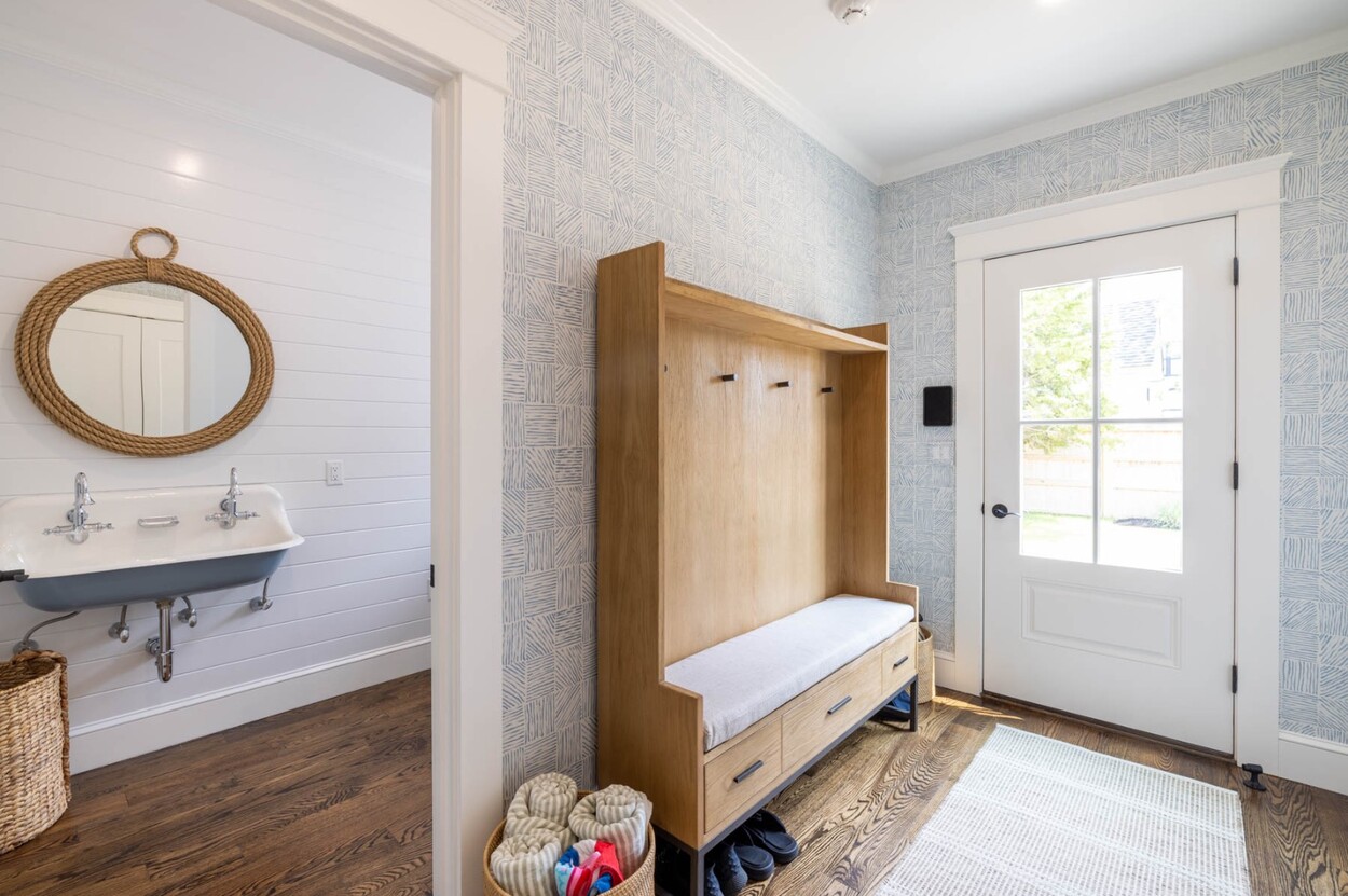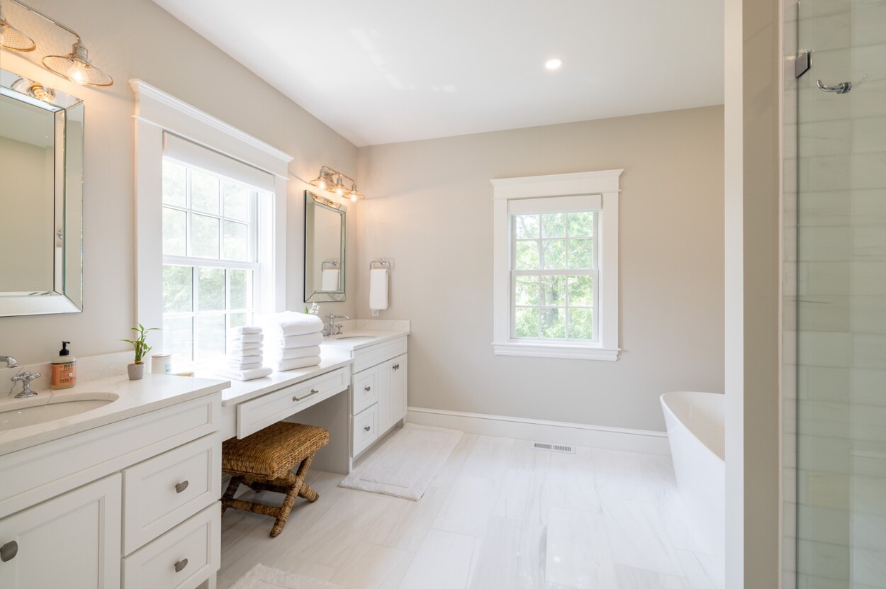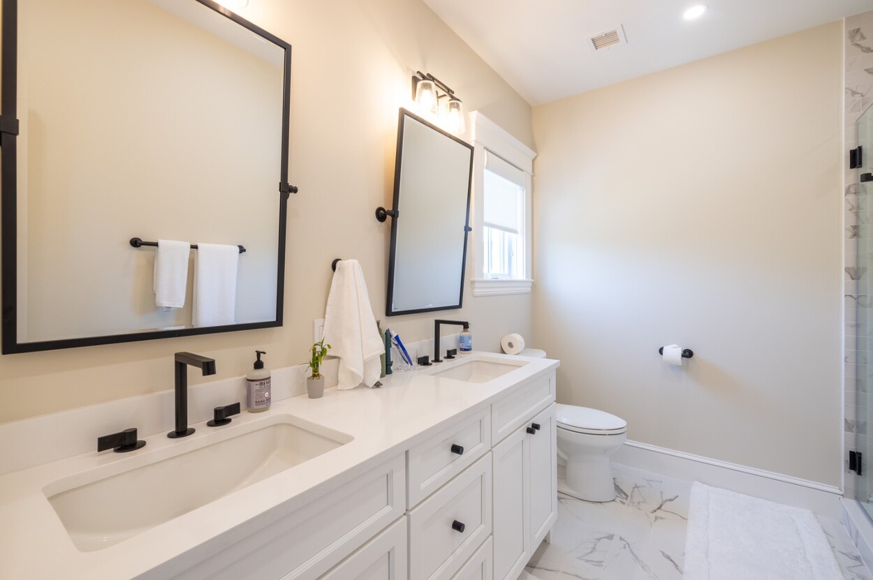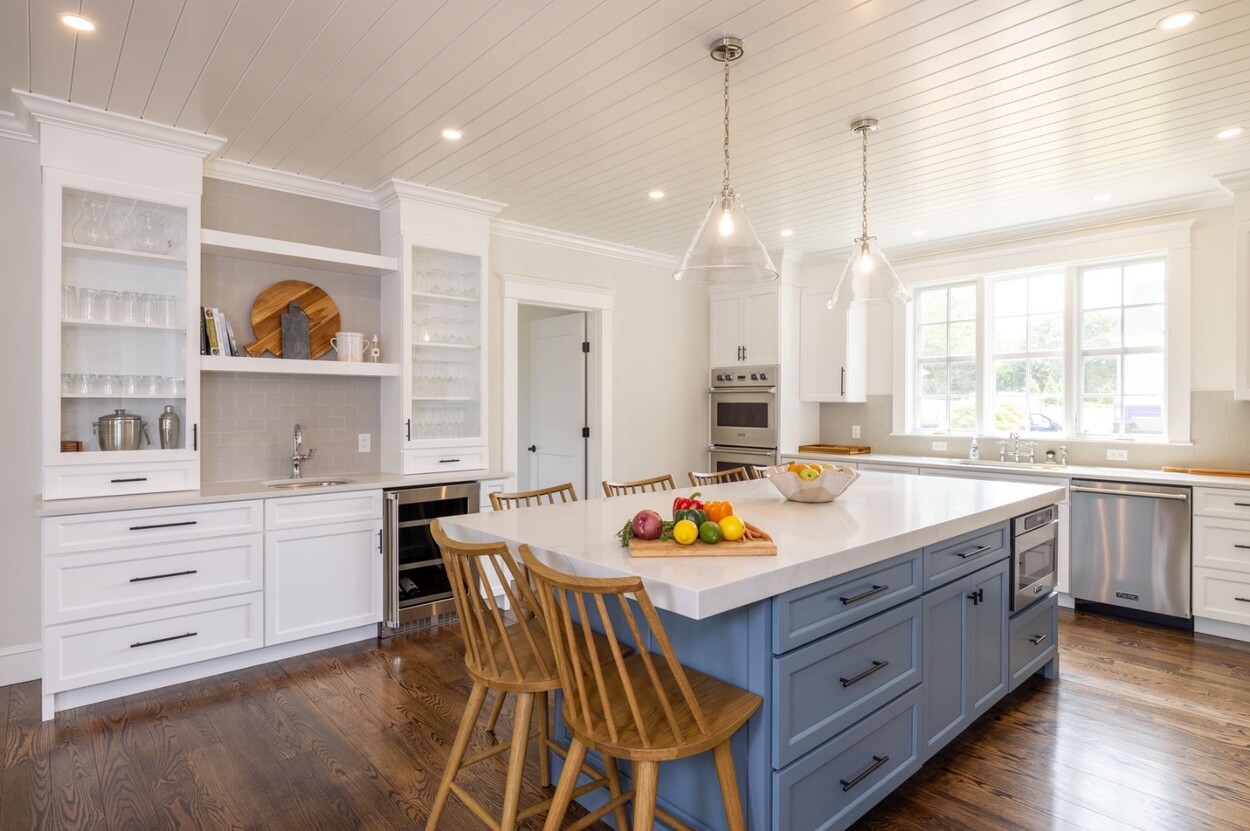 KATAMA COMPOUND WITH POOL - TURNKEY. In an enclave of luxury homes in Katama, this 2021-built 5 bedroom, 5 bathroom property with three half-baths is being delivered turnkey with fine furnishings and artwork. The home has everything the modern buyer wants, including two primary bedroom suites (one upstairs, one downstairs), all bedrooms with ensuite bathrooms, two laundry rooms, detached guest quarters, high-end music system, a beautiful pool area, the list goes on. In addition to the 4700-sf main house with 4 ensuite bedrooms there is a Carriage House with a bedroom suite upstairs. In 3 years time this detached bedroom can be converted into full guest apartment by converting unfinished space into a living room and kitchen. The Carriage House also includes a poolhouse with half bath and a 2-car garage.