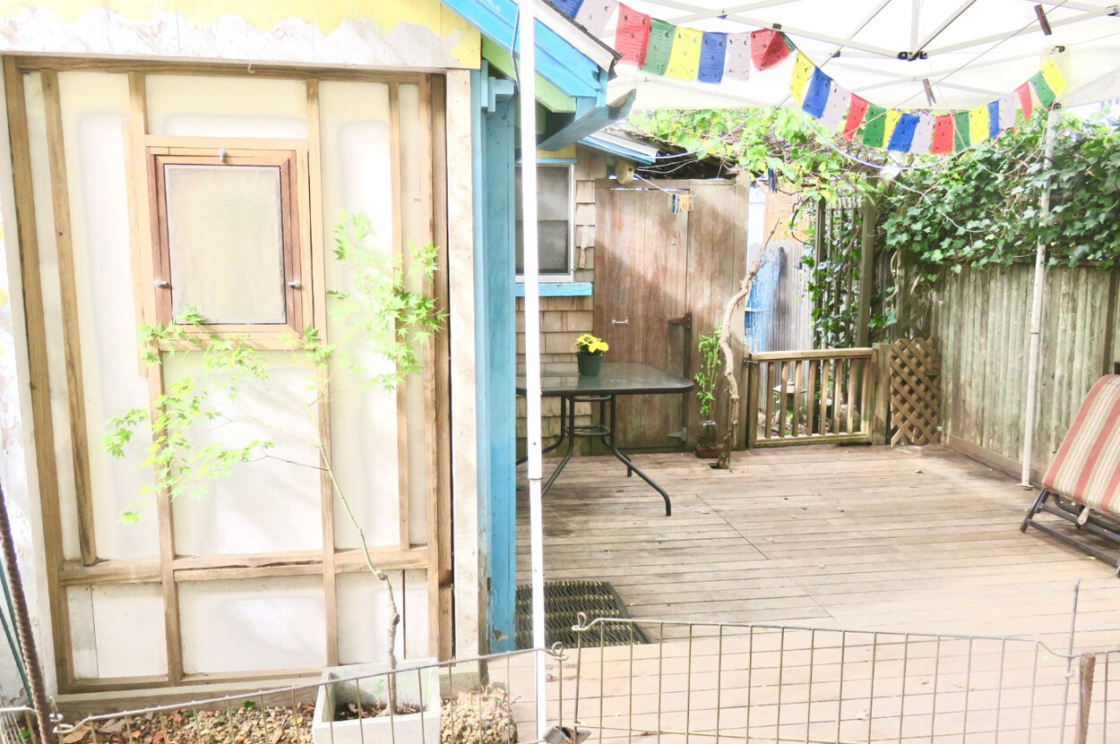 extensive views of Oak Bluffs Harbor and Nantucket Sound from the balcony.Come in from the back deck after an outdoor shower or dining on the back patio.Walk to the Tabernacle, Campground pathways and parks or into the many dining areas and shops in Town. Walk to the beach and Yacht Club and along the blocked off roads by the sea.