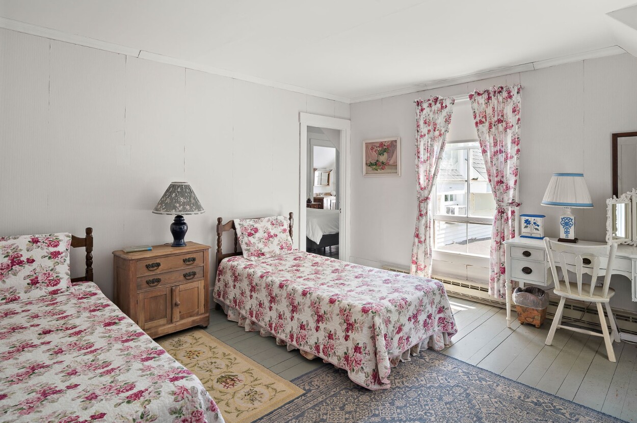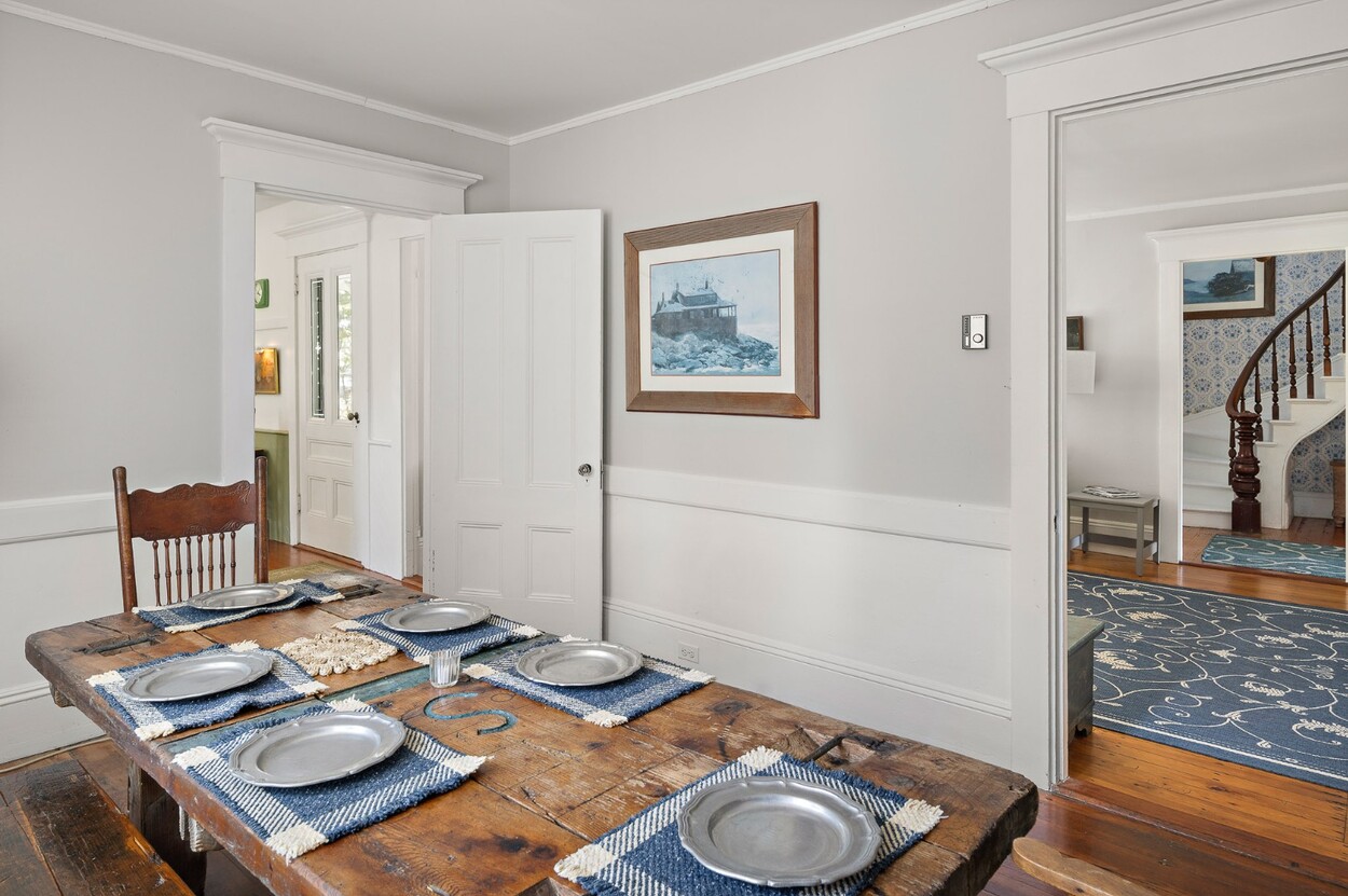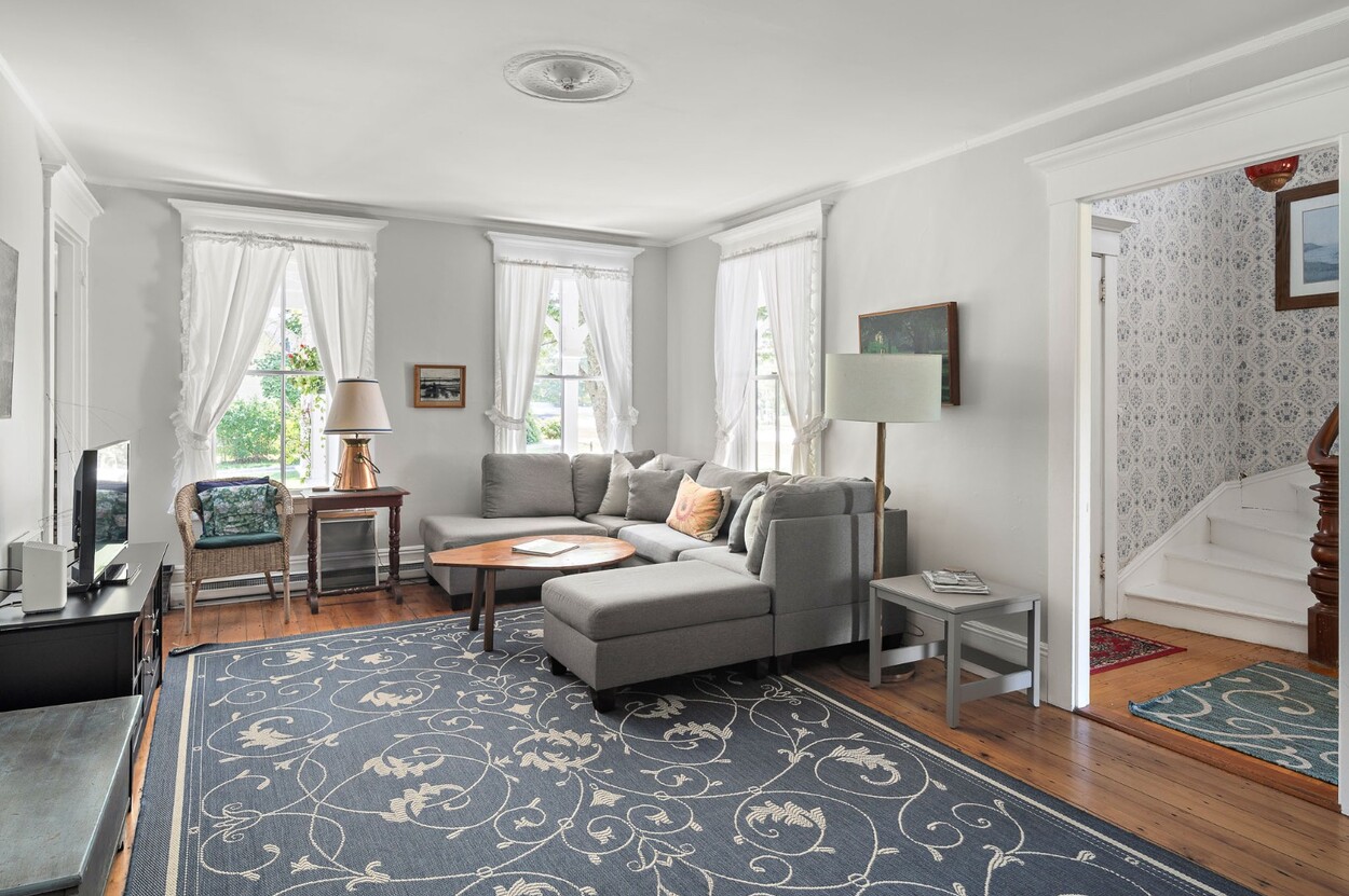 This historic Sea Captain’s home offers a rare opportunity to own a piece of West Tisbury’s rich heritage. Owned by the same family since 1947 and lovingly maintained for four generations, the home exudes warmth, character, and timeless Vineyard charm. Known for its delightful front porch adorned with vibrant hanging flower baskets, the property sits in an ideal in-town location, near beloved local landmarks like Alley’s General Store, 7a Foods, the West Tisbury Library, the Field Gallery, and the Grange Hall. The six-bedroom, two-bath home is filled with distinctive features, including an extraordinary original staircase, a welcoming den/office space, and a spacious living room that connects to a first-floor bedroom. Toward the back of the home, you'll find a cozy dining room, a full bath, and an eat-in kitchen that opens to a back patio. The kitchen retains part of its original zinc countertop, a second entrance from the front porch, and a back staircase leading to the second floor. Upstairs are five additional bedrooms and another full bath, all maintaining the authentic details and charm of a true vintage home. Thoughtful touches abound, such as a dining table made from a ship’s hatch discovered by the family on a remote Chilmark beach in the 1950s, and a living room coffee table fashioned from half of an old blacksmith’s bellows. Recent updates include a new six-bedroom septic system, making the property as functional as it is charming. Situated between Lambert’s Cove and Long Point beaches—both accessible to West Tisbury residents—this distinctive property offers the rare combination of historical significance, Village convenience, and Vineyard soul.