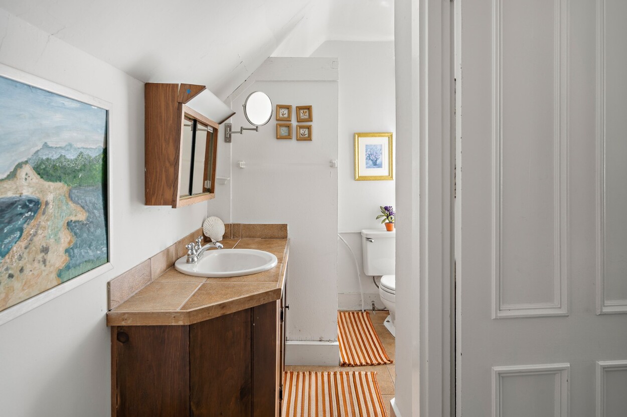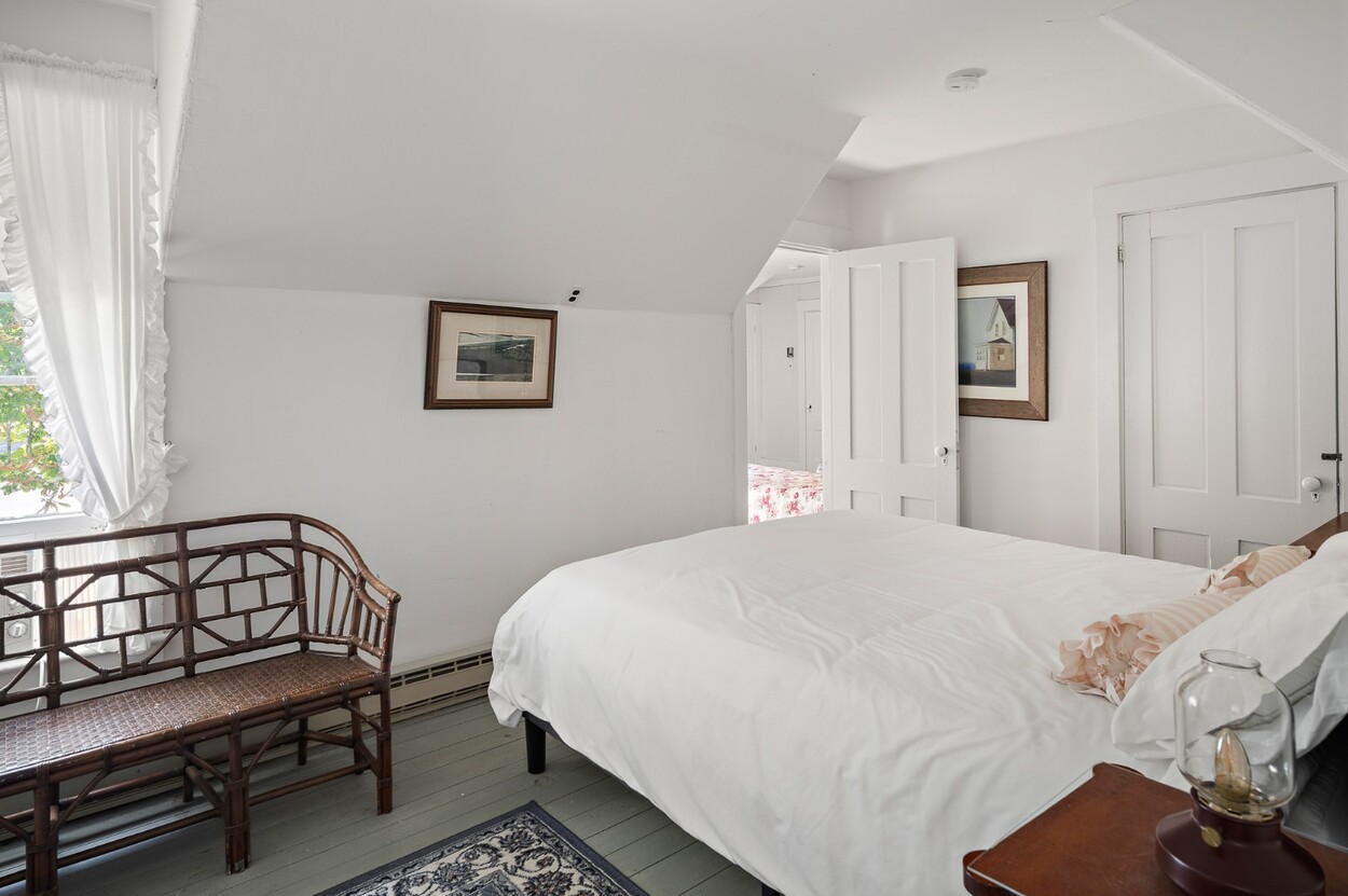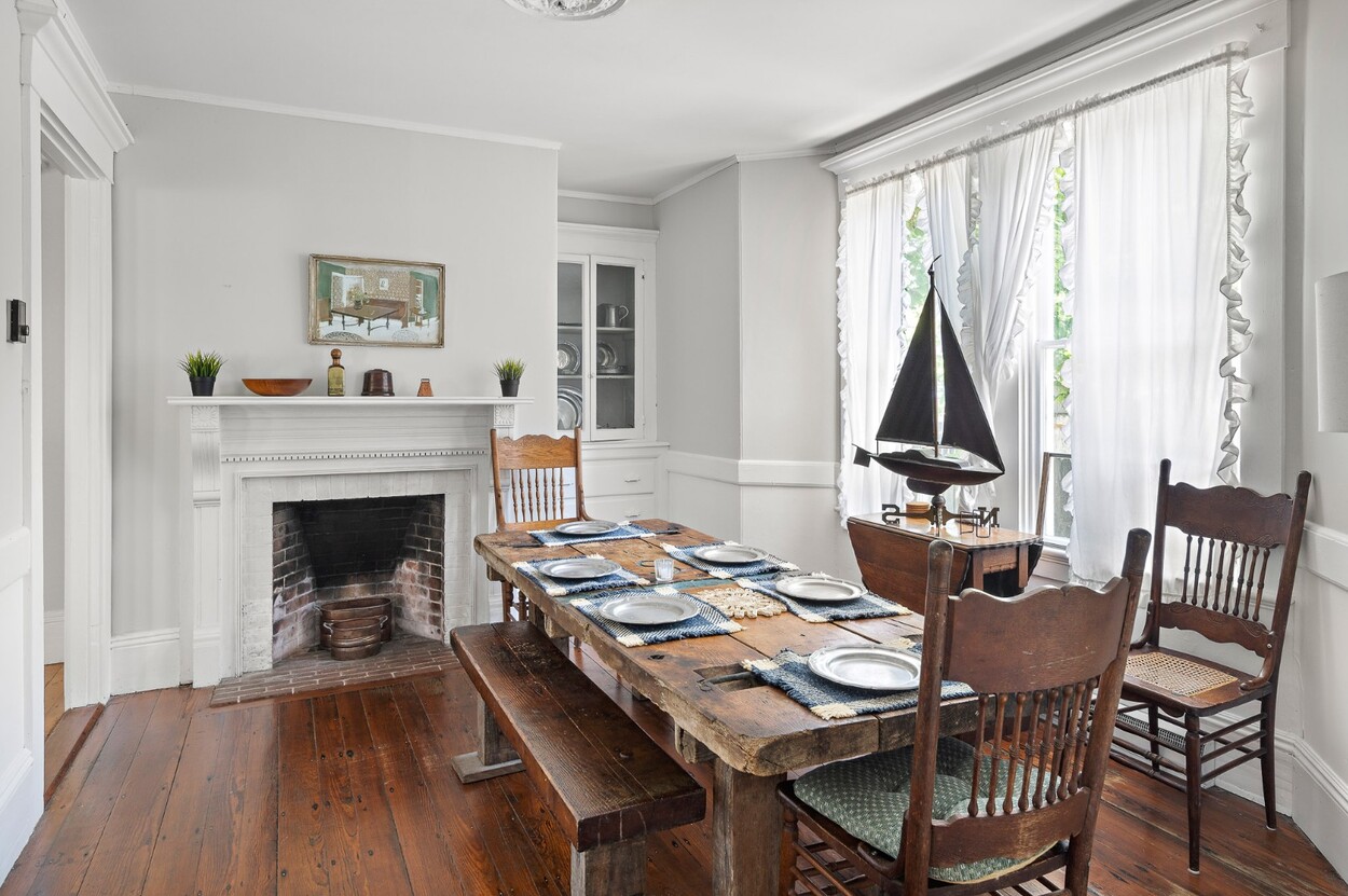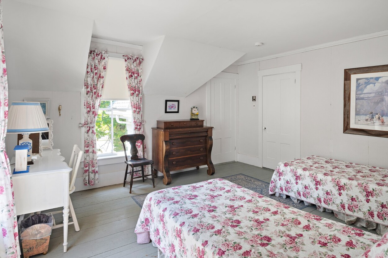 This historic Sea Captain’s home offers a rare opportunity to own a piece of West Tisbury’s rich heritage. Owned by the same family since 1947 and lovingly maintained for four generations, the home exudes warmth, character, and timeless Vineyard charm. Known for its delightful front porch adorned with vibrant hanging flower baskets, the property sits in an ideal in-town location, near beloved local landmarks like Alley’s General Store, 7a Foods, the West Tisbury Library, the Field Gallery, and the Grange Hall. The six-bedroom, two-bath home is filled with distinctive features, including an extraordinary original staircase, a welcoming den/office space, and a spacious living room that connects to a first-floor bedroom. Toward the back of the home, you'll find a cozy dining room, a full bath, and an eat-in kitchen that opens to a back patio. The kitchen retains part of its original zinc countertop, a second entrance from the front porch, and a back staircase leading to the second floor. Upstairs are five additional bedrooms and another full bath, all maintaining the authentic details and charm of a true vintage home. Thoughtful touches abound, such as a dining table made from a ship’s hatch discovered by the family on a remote Chilmark beach in the 1950s, and a living room coffee table fashioned from half of an old blacksmith’s bellows. Recent updates include a new six-bedroom septic system, making the property as functional as it is charming. Situated between Lambert’s Cove and Long Point beaches—both accessible to West Tisbury residents—this distinctive property offers the rare combination of historical significance, Village convenience, and Vineyard soul.