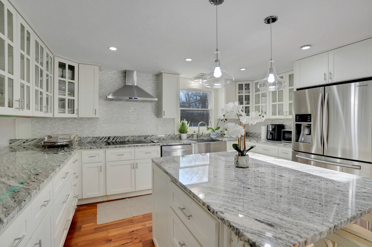 The main level offers hardwood floors, a renovated kitchen with granite countertops and stainless appliances, and an open living/dining area with fireplace that flows effortlessly for everyday living and entertaining. The primary suite features a private bath and balcony access.