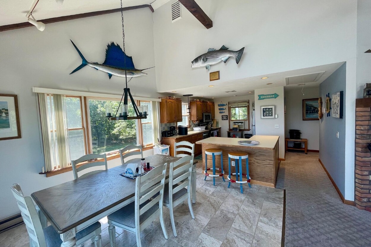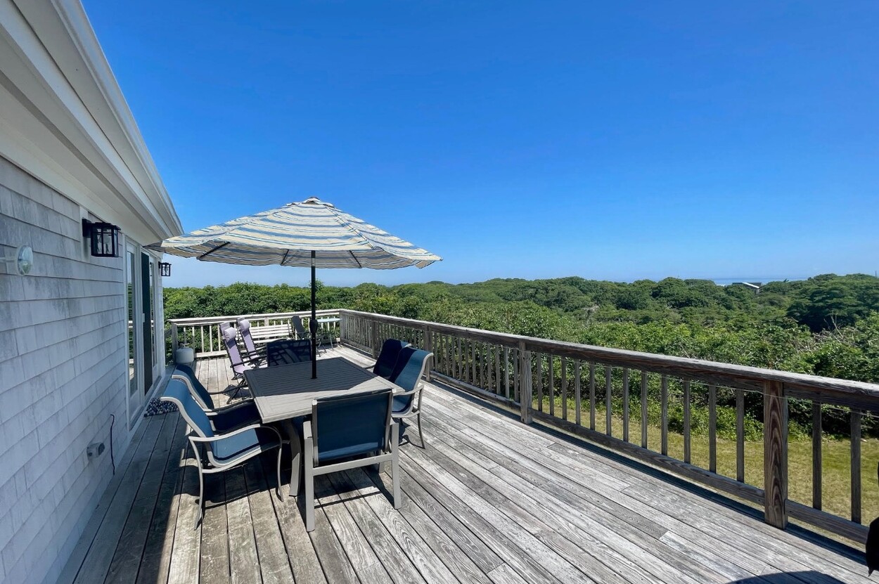 12 Lobsterville Rd in Aquinnah is a uniquely designed contemporary home set on 2.6 acres of lush grounds with large tracts of conservation land nearby. Open concept living, dining, kitchen on the second floor with unobstructed ocean views of Vineyard Sound. Spacious deck for sunset viewing and grassy lawn for sundown games. Walking distance to Lobsterville Beach and a short bike ride to the lighthouse.
