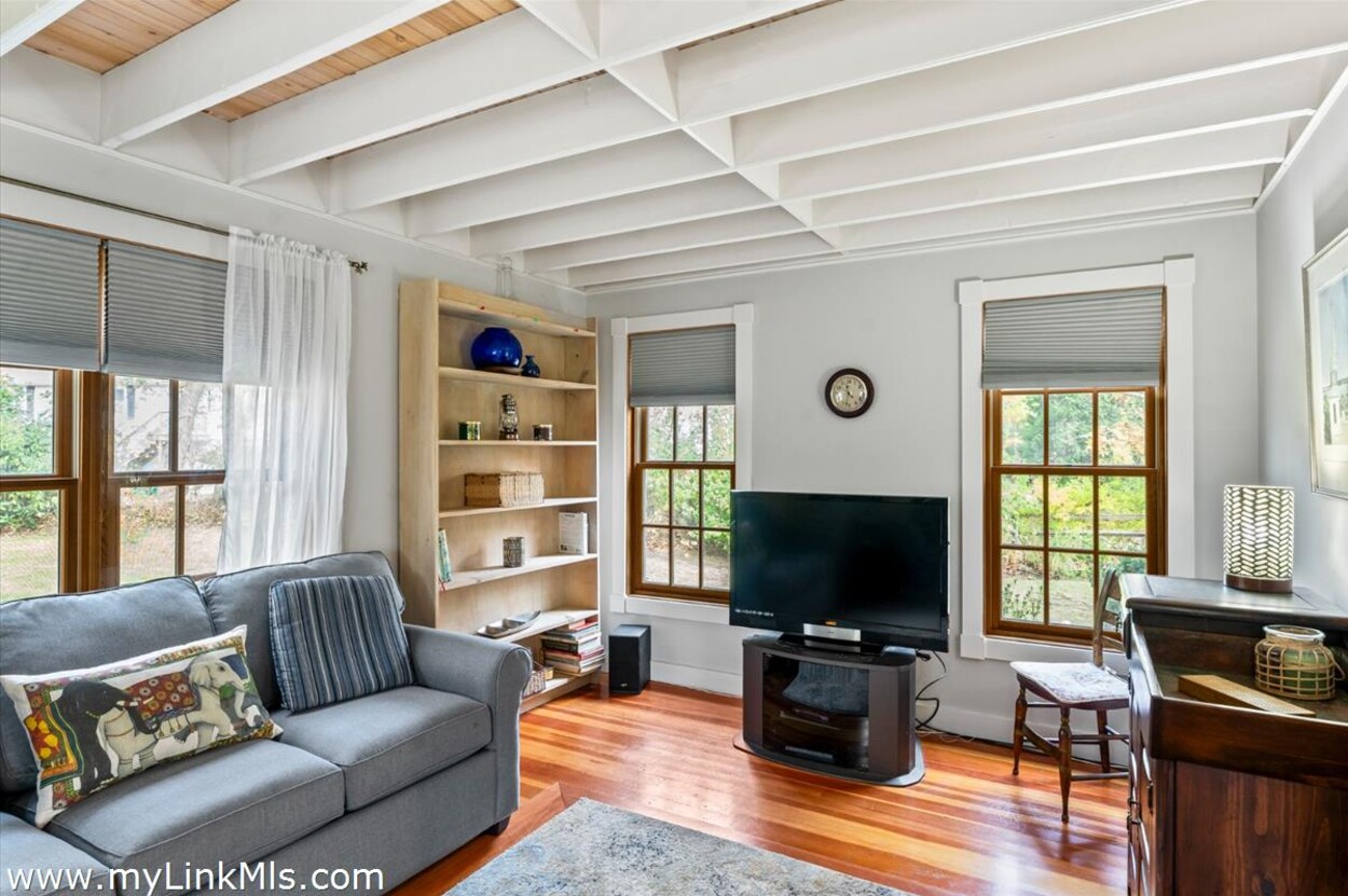 Charming, custom-built, 3-bedroom, 1.5-bath Oak Bluffs home on a quiet circle, offering a peaceful setting with convenient access to down-island attractions, year-round ferries, and miles of ancient way trails through acres of conservation land. Well-maintained with many decorative details, features include a large primary bedroom, a convenient first-floor bedroom, and an open kitchen dining area flowing to a spacious wooden deck and outdoor shower—perfect for indoor-outdoor living. Beautifully maintained with wood floors, skylights, and natural light throughout, this move-in-ready home blends comfort, character, and charm. The floor plan offers privacy between the 3 oversized bedrooms. Ideal for year-round living or a seasonal retreat. 4 bedroom septic system in place invites expansion.