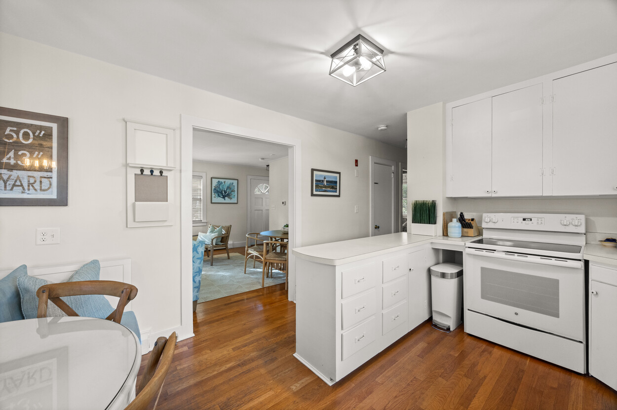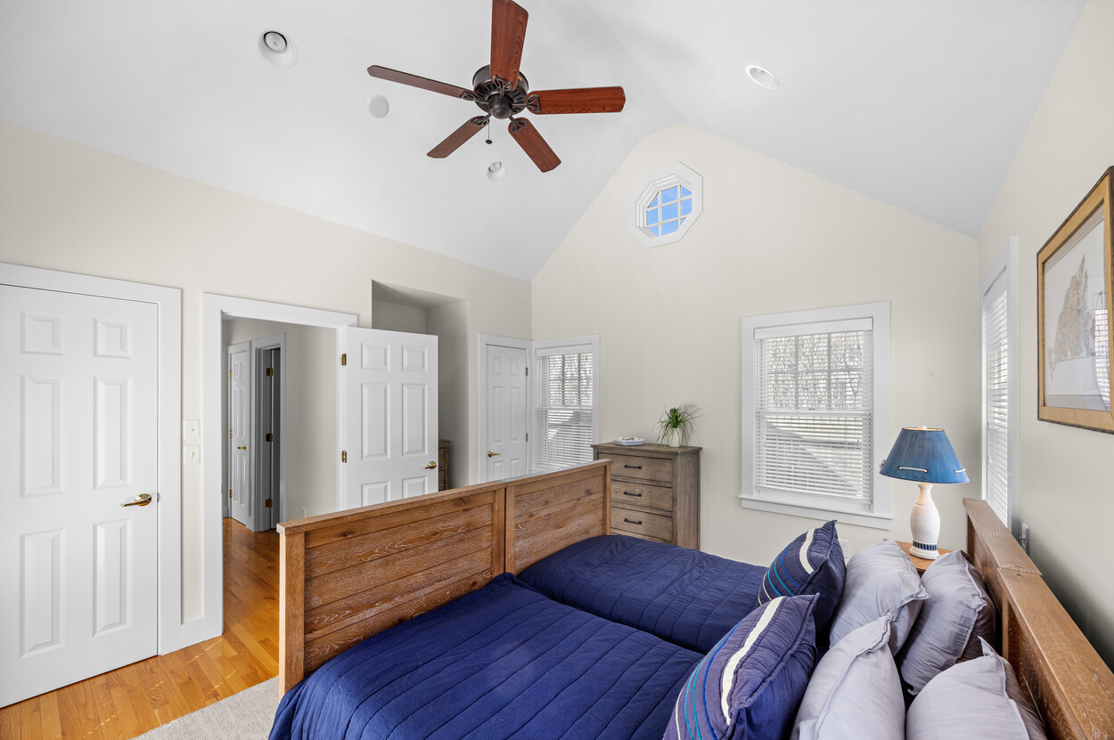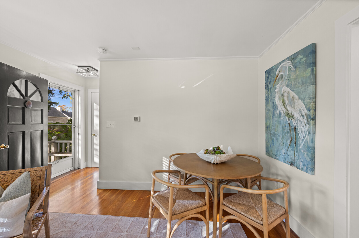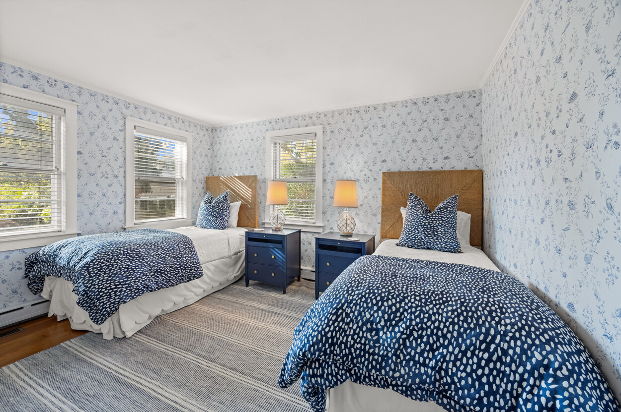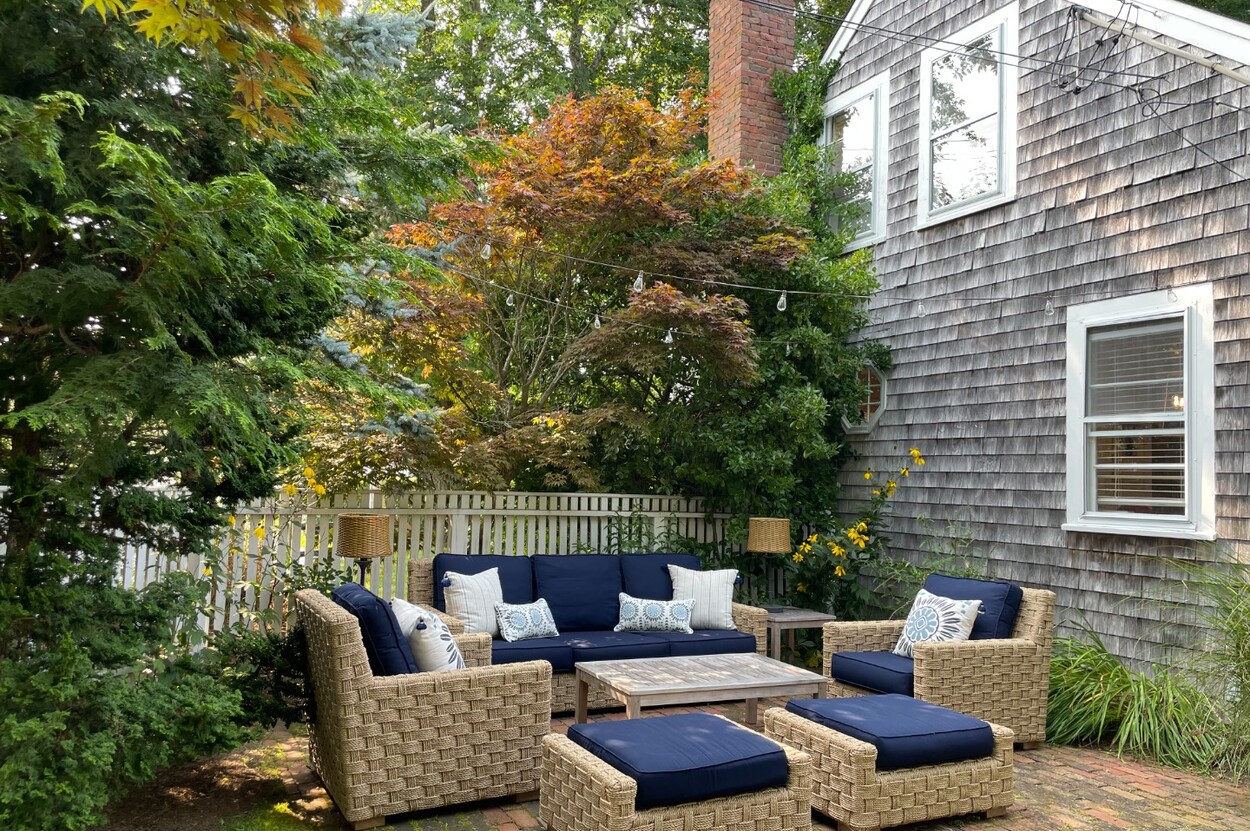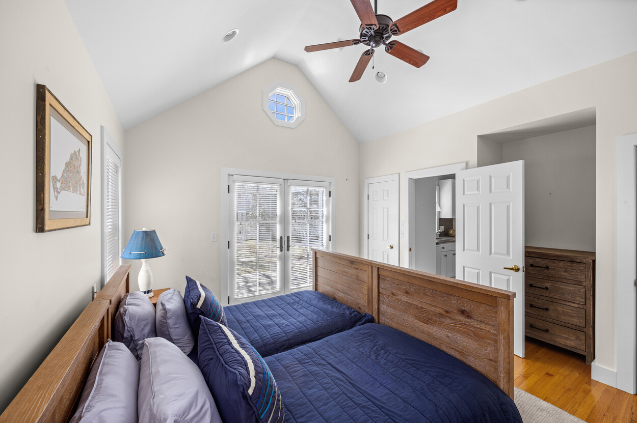 Set in the heart of Edgartown Village, this pristine Cape offers an exceptional combination of charm, comfort, and in-town convenience. Just moments from boutique shopping, acclaimed galleries, fine dining, and the scenic harbor, this four-bedroom, three-bath home captures the quintessential Vineyard lifestyle. Two entrances enhance the home’s functionality: a formal front entry leads directly to the inviting living room, while a casual back entrance opens to the bright, cheerful kitchen, complete with a built-in banquette dining area. The outstanding primary wing at the rear of the house features a separate entrance with French doors opening to a pergola patio. The suite boasts a cathedral-ceiling bedroom, a private sitting area, a full bath, and a kitchenette—perfect for extended guests or private retreats. The first floor also includes an additional full bath, a second bedroom, and a convenient laundry room. Upstairs offers a spacious primary bedroom, an additional bedroom, and a full bath.