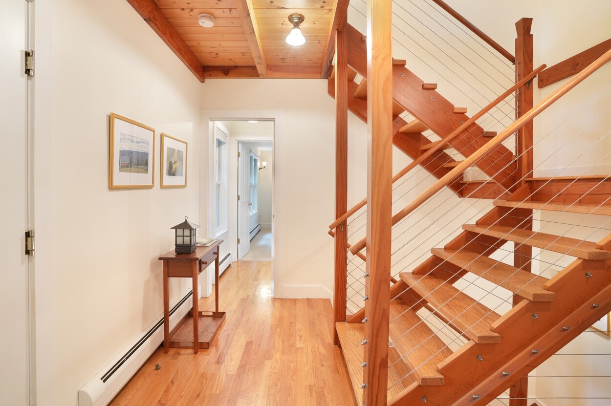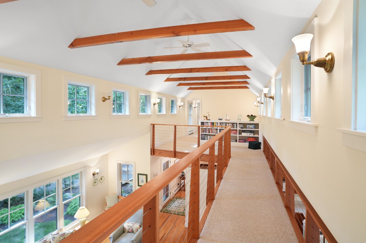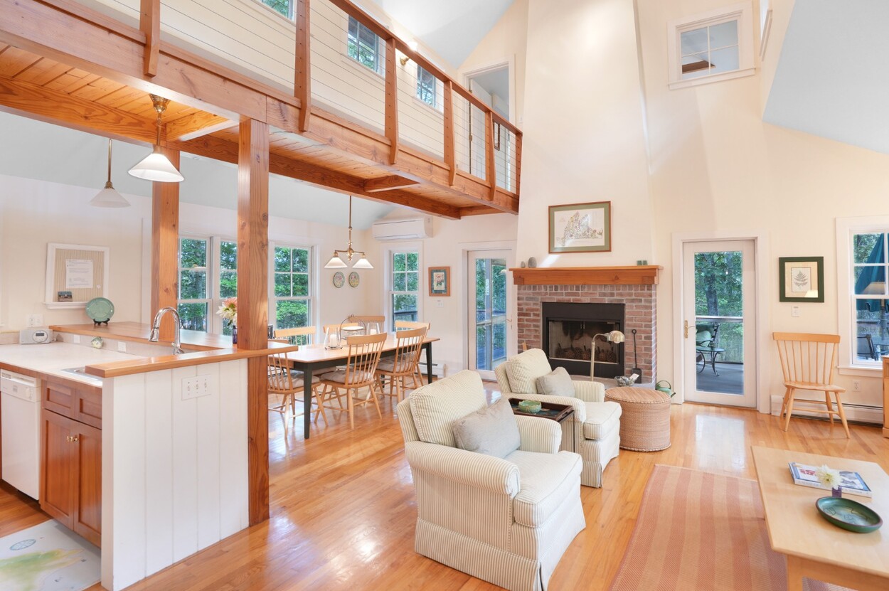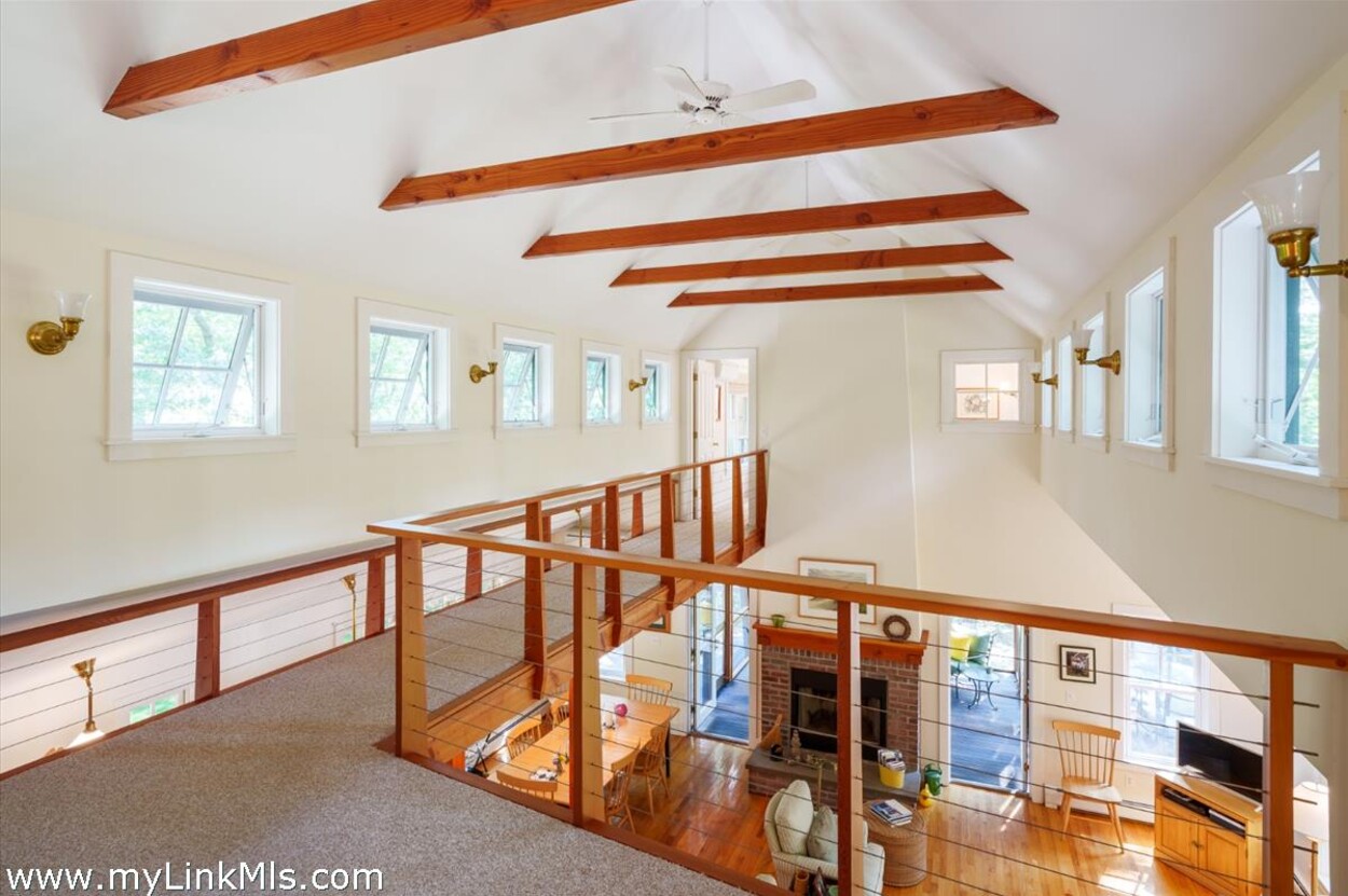 Affectionately referred to as ‘The Treehouse', this property encompasses all the elements of a modern, sophisticated residence while providing the warmth and comfort of a private retreat. Professionally designed by Hutker Architects, this four-bedroom home, with a den/potential fifth bedroom, is sited in a private area, conveniently located with easy access to grocery store, pharmacy, and post office, and also to the island’s most beautiful beach at Lambert’s Cove. This home boasts meticulous attention to detail and exceptional craftsmanship. From the moment you step foot inside, you will notice the open floor plan design that creates a spacious and inviting atmosphere. Each of the four bedrooms has been thoughtfully designed and appointed to provide maximum comfort and privacy. The primary bedroom and ensuite bath and the den are at each end of the upper level, joined by a walkway across the living space. The main level also features a bedroom with ensuite bath, in addition to the large, open kitchen/dining/living space. Two more light-filled bedrooms plus a shared hall bath are located on the above-ground lower level. This is a meticulously maintained home with an open floor plan that is both functional and aesthetically pleasing. The open concept design includes a wood burning fireplace in the living room and a wonderful screened porch with open decks on either side. A back deck includes an outdoor shower.