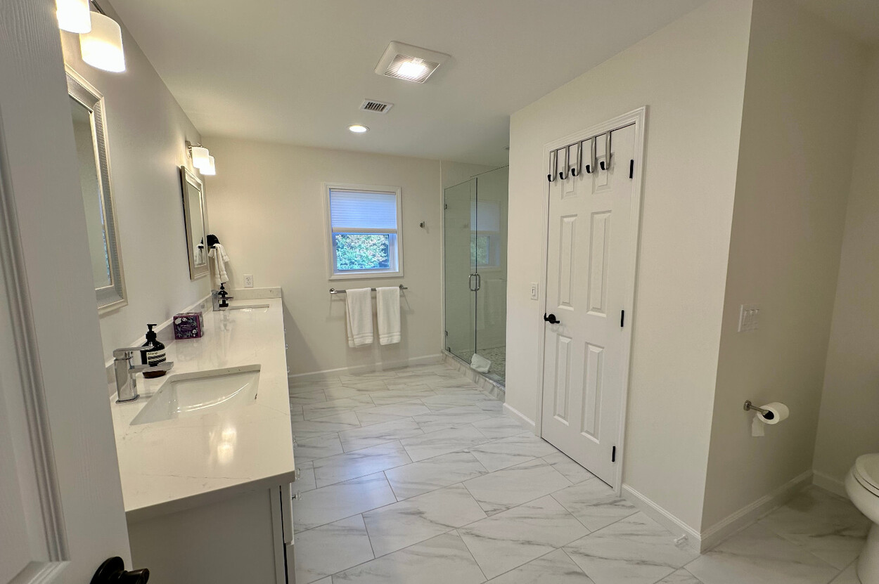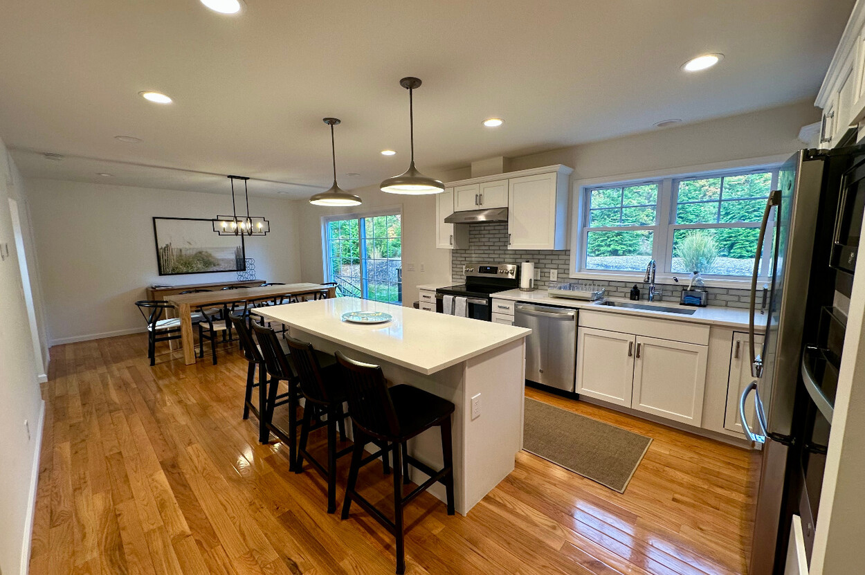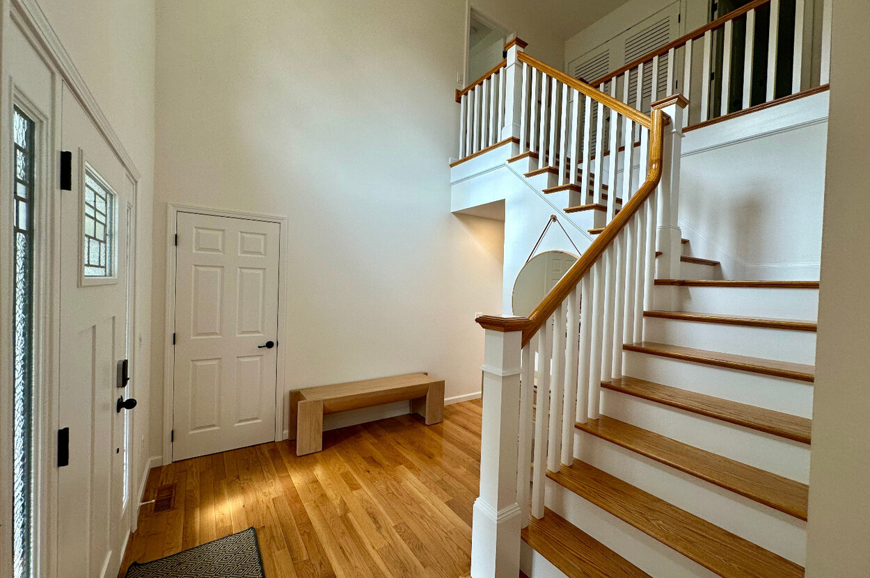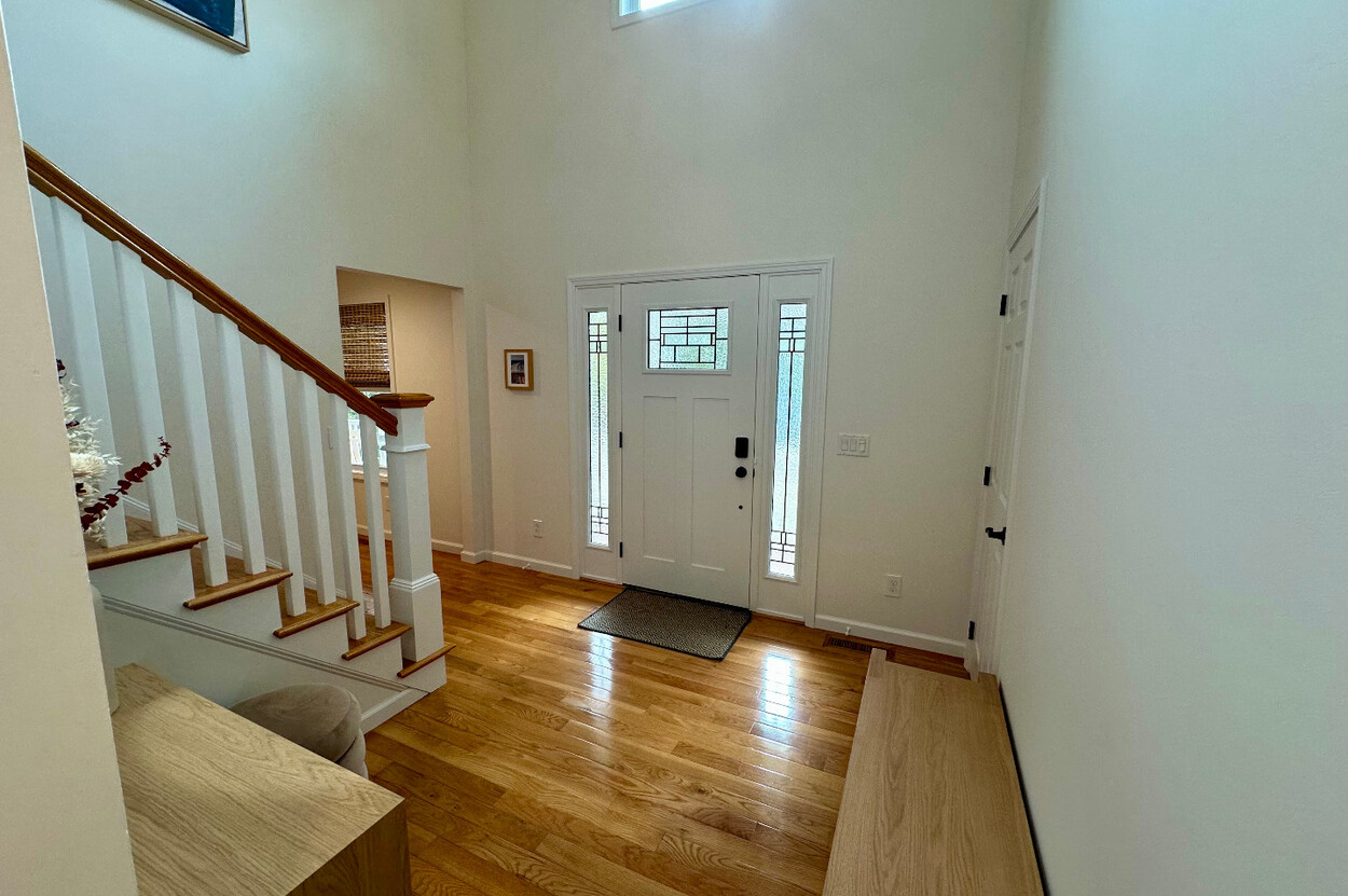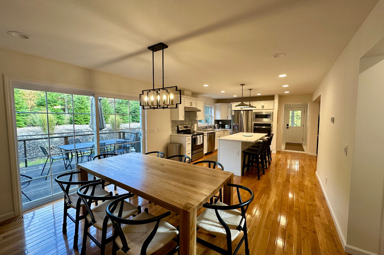 This Colonial Style home with wrap around porch is beautifully maintained and nicely sited on almost a half acre. The first floor is thoughtfully designed and offers an open floor plan that includes an ample mudroom with half bath and is just off the side porch that takes you into the well equipped kitchen with a center island, stainless appliances, custom cabinetry and dining room with sliders to a peaceful and private deck. Living room offers a comfortable space for TV and relaxing. There is also nice size first floor primary with walk-in closet and spacious en-suite bathroom. The grand entryway takes you to the second floor which offers a second primary bedroom with walk-in closet and en-suite bath. There are two guest rooms that share a bath and second floor laundry. Wood and tile floors throughout, propane FHA with A/C. The walkout basement is ready to be finished off for additional living space, workshop or office.