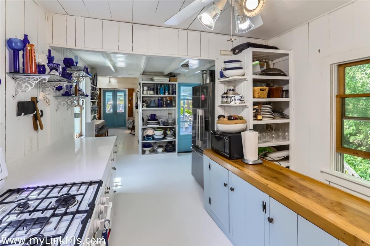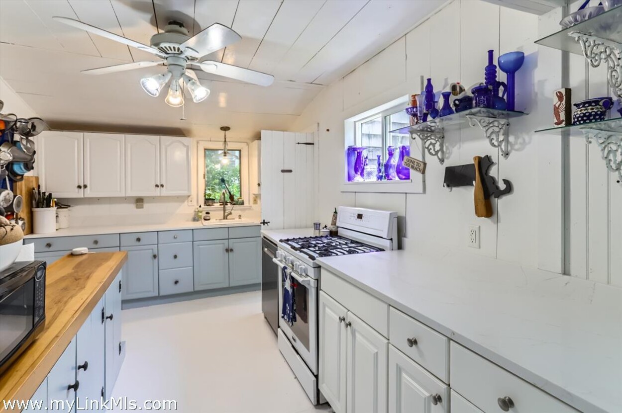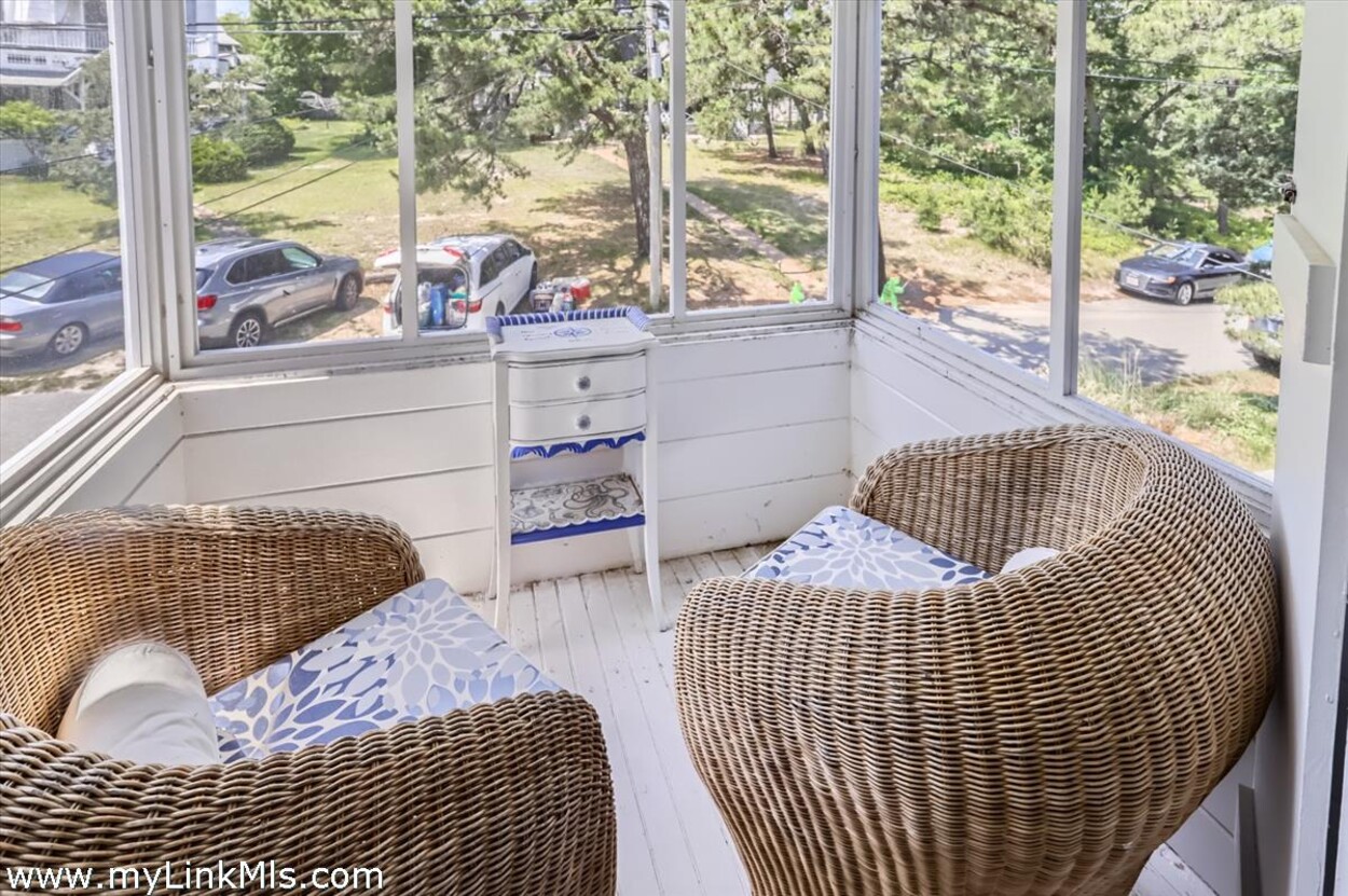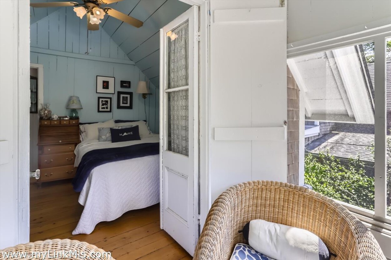 Welcome to this year-round East Chop Victorian Gingerbread home, close to Oak Bluffs Harbor, Jetty Beach, and downtown. The amazing wrap-around porch is perfectly designed for spending lazy summers with friends and family. Many a party has been hosted on this generous porch, made more enticing by an open-plan first floor with a large kitchen, living room, and dining area. The first floor features Victorian charm, featuring a beautiful stained glass window, painted beam ceilings, wainscoting, and built-in shelves. The second floor has 3 bedrooms, each with its own character, including a generous primary bedroom suite with vaulted ceilings, skylights, a walk-in closet, plus a full bathroom and an extra built-in closet. The 2nd bedroom has an open and airy feel with a vaulted ceiling and a screened porch affording views of the neighborhood. The final room has its own private balcony for viewing the backyard garden oasis. The lower level consists of a finished bonus room, laundry, and a full bathroom with tub and storage area. This home and its established gardens have been lovingly maintained, and its location in a delightful neighborhood of highly sought-after East Chop, gives you all that Martha's Vineyard living can offer. Passed Title V Inspection.