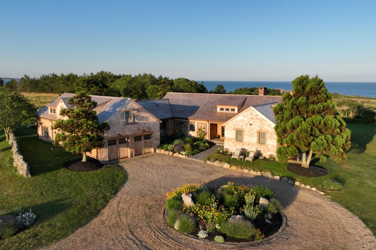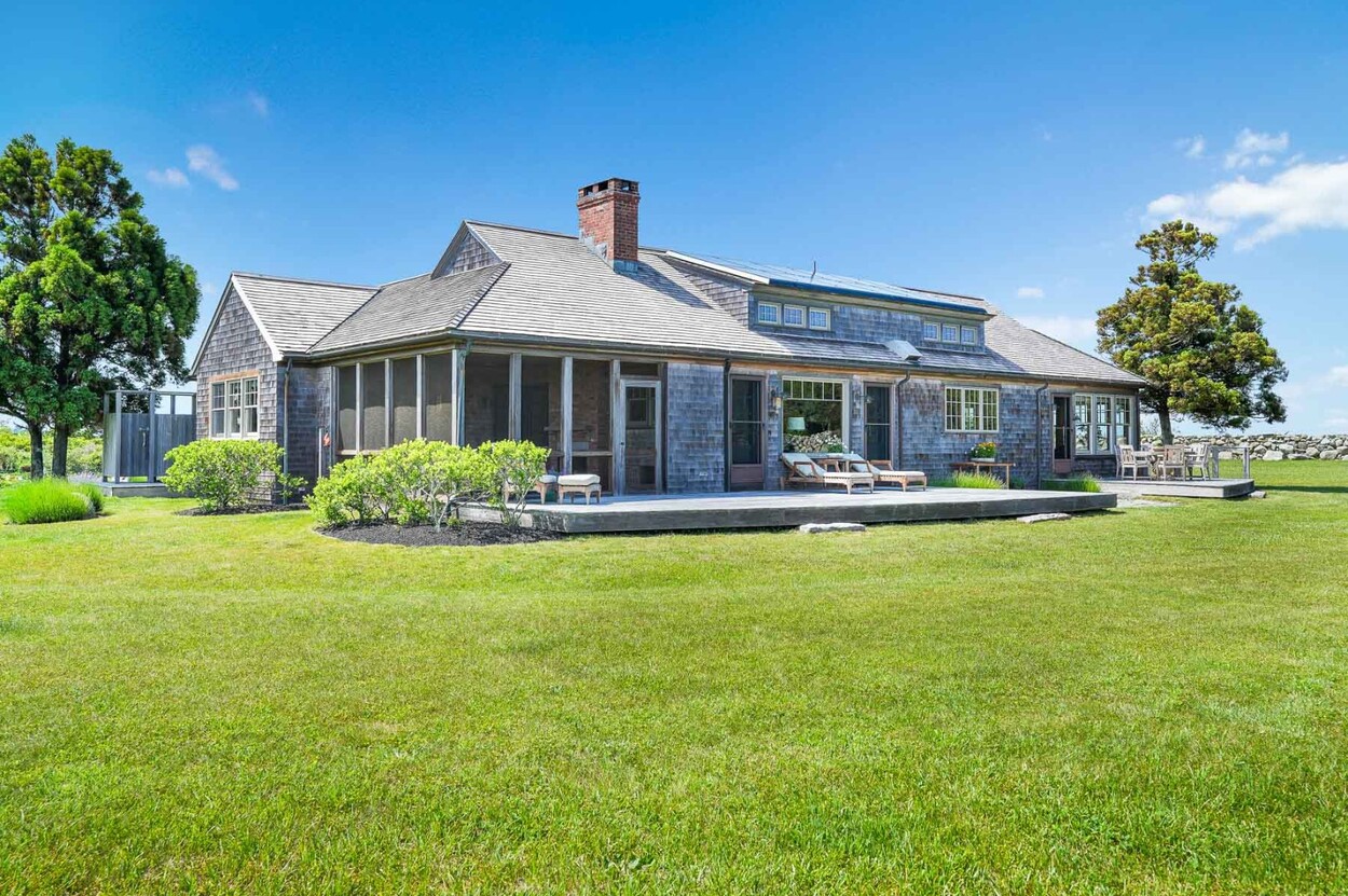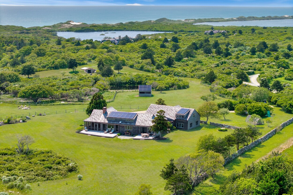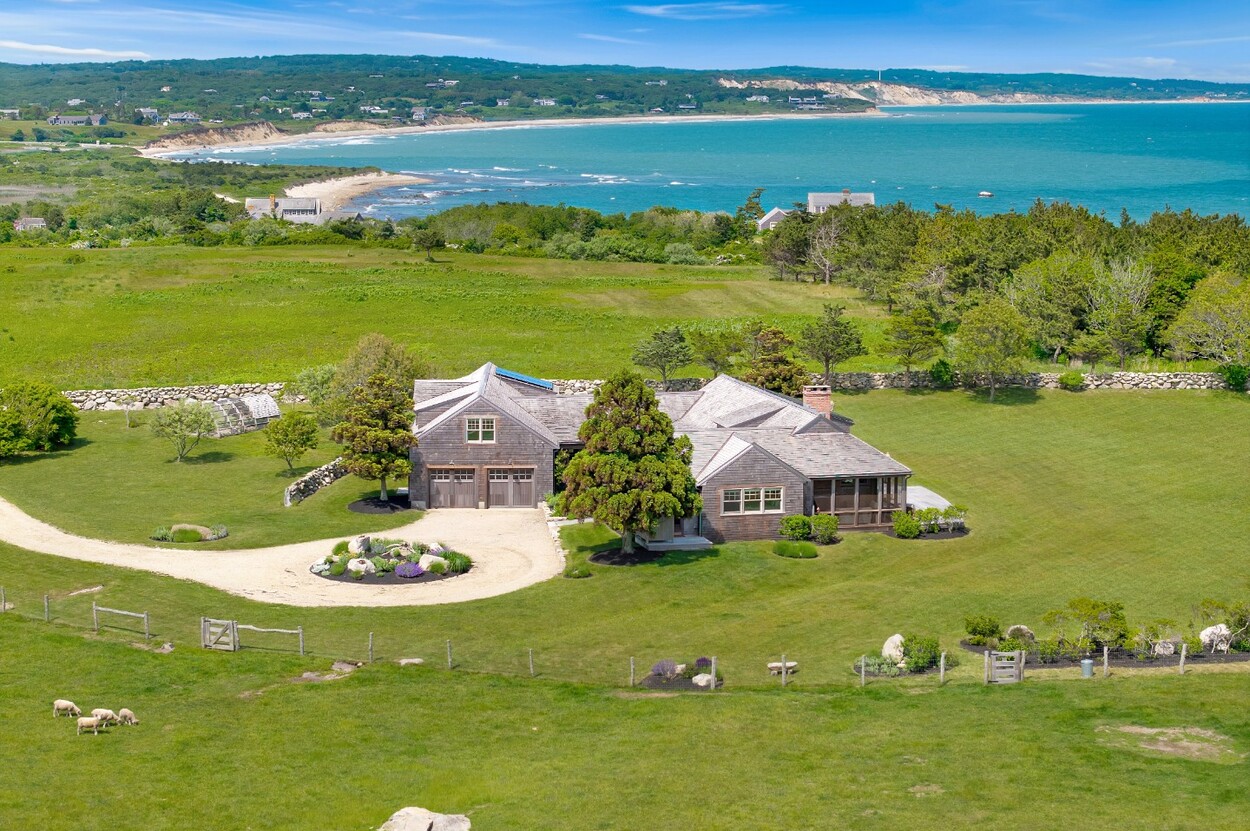 Welcome to an extraordinary ocean view coastal sanctuary set within the exclusive gates of Squibnocket Farm—a 450+ acre private community with access to over 2 miles of oceanfront, 1.5 miles of pond frontage, and 300+ acres of conservation land. Set on a peaceful, pastoral landscape abutting 17 acres of preserved land, this stately home was designed and built by Soikkeli & Company, one of the island’s premier luxury builders. Inspired by traditional New England farmhouse architecture, the exterior features cedar shingles, multiple gables, and timeless charm. At the heart of the home is a stunning chef’s kitchen with soapstone countertops, a custom farm sink, high-end appliances, and a walk-in pantry. Two living rooms flank the kitchen, while the first-floor primary suite occupies the sunny southern end of the house offering luxurious comfort and ocean views. Four additional bedrooms and a two-car garage sit in a separate wing. Smart features include Nest thermostats and a HEOS sound system. Outdoors, the organic landscaping showcases historic stone walls, colorful gardens, and a manicured lawn, all complemented by nearly 3 acres of fenced pasture. Enjoy outdoor living from the expansive back deck or the screened porch with stone fireplace, both perfect for stargazing or enjoying the breathtaking Atlantic Ocean views. Squibnocket Farm ownership includes exclusive access to scenic trails, pond launches, and a private beach with some of the Martha’s Vineyard’s most pristine dunes and shoreline. This is more than a home, it’s a lifestyle.