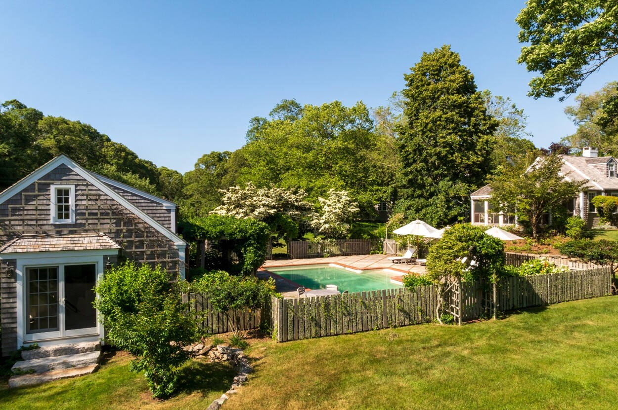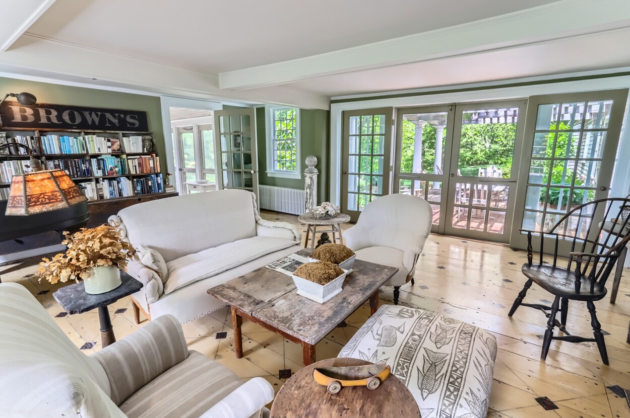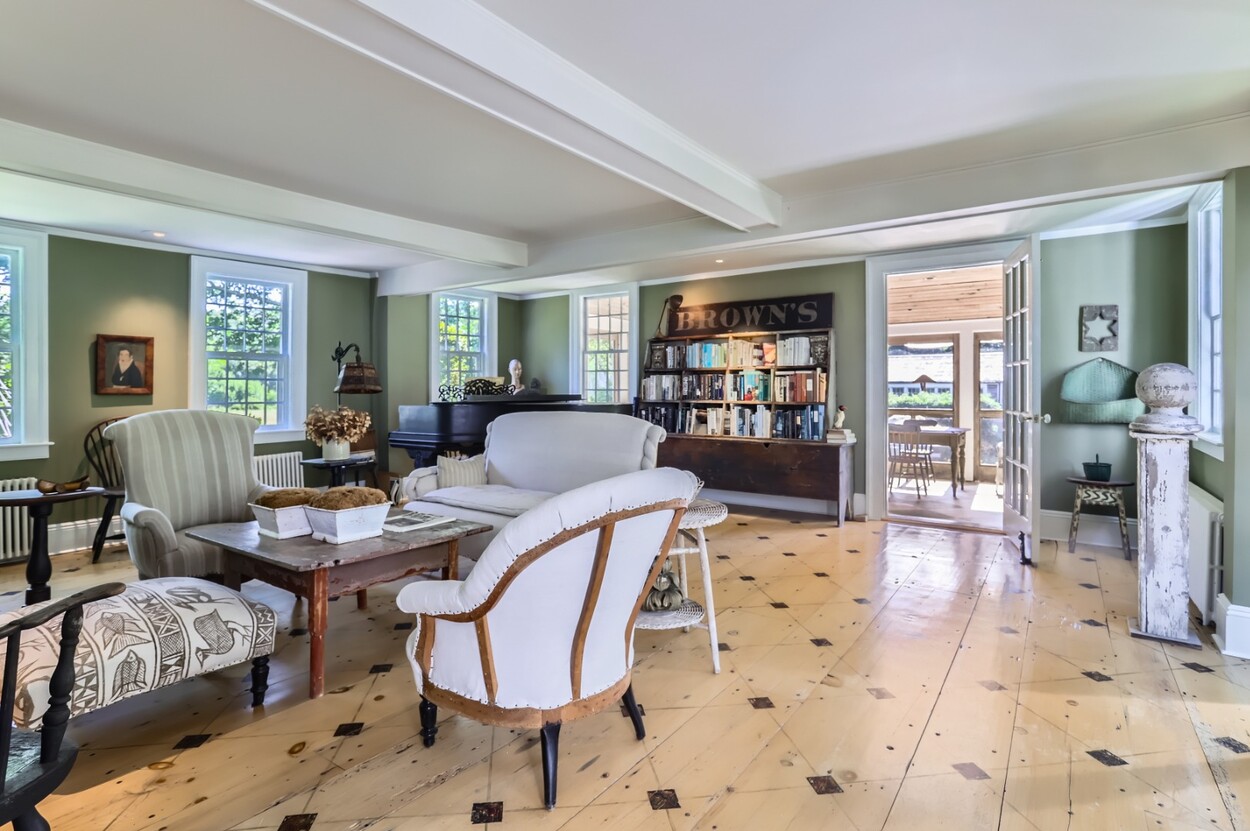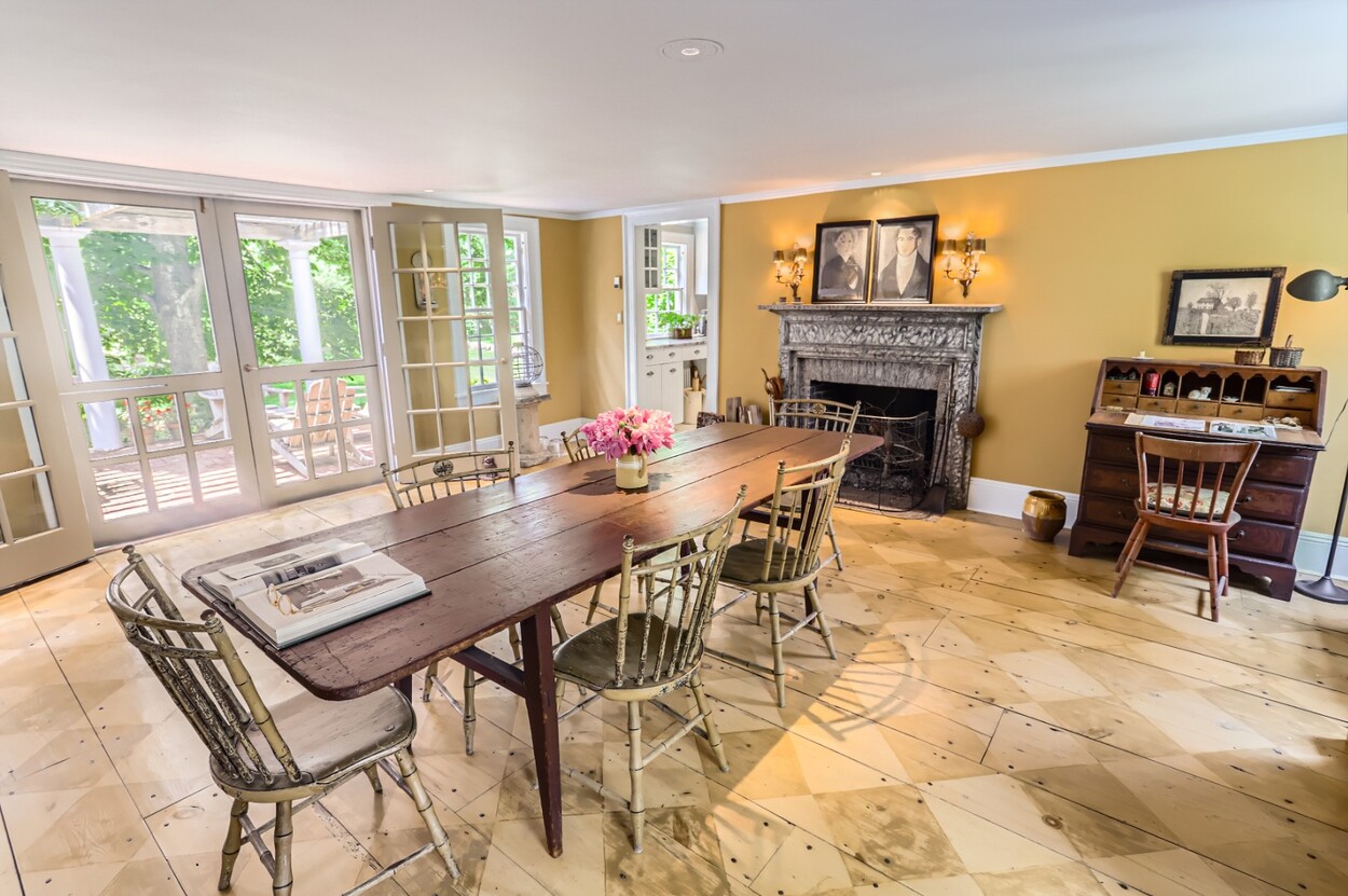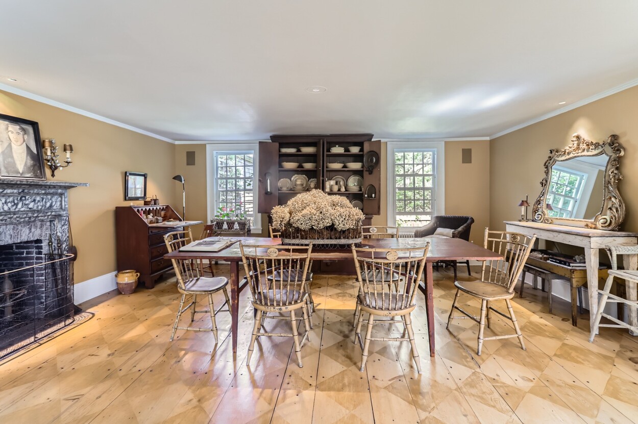 The main home dates from 1730 and has been lovingly restored over the years. Carefully preserved original details—such as hand-painted Siberian elm floors, gunstock posts, a Dutch door, and four fireplaces—coexist with thoughtful upgrades throughout. The main residence offers five bedrooms and four bathrooms, a large kitchen, separate dining room, cozy living room, a great room with a tranquil screened porch that overlooks the heated saltwater pool.