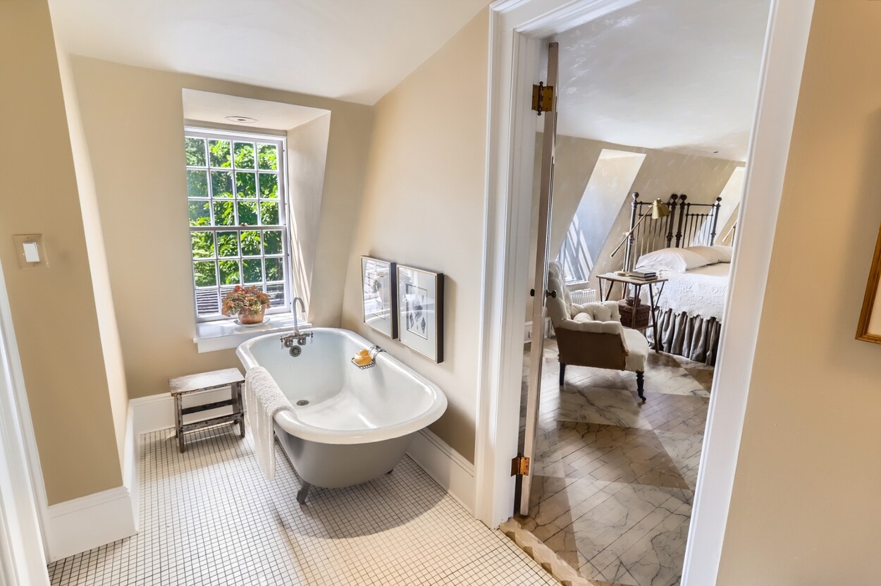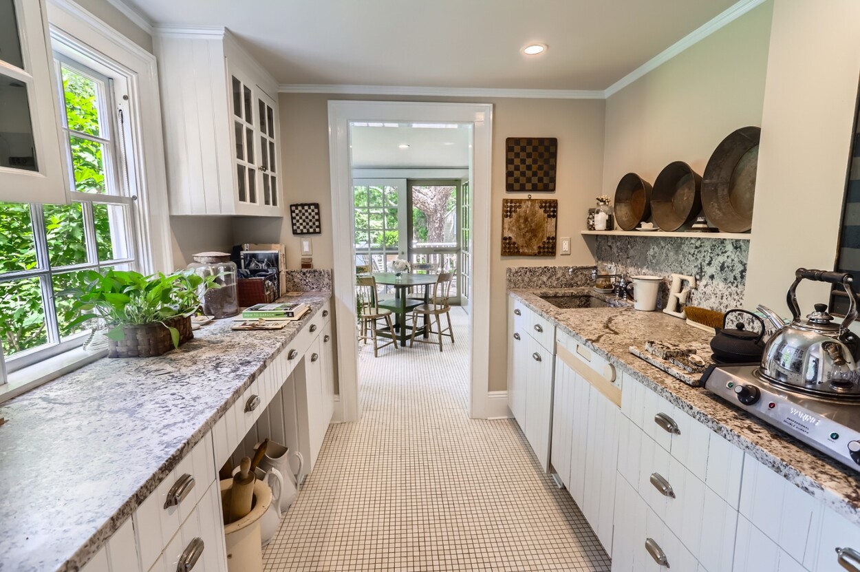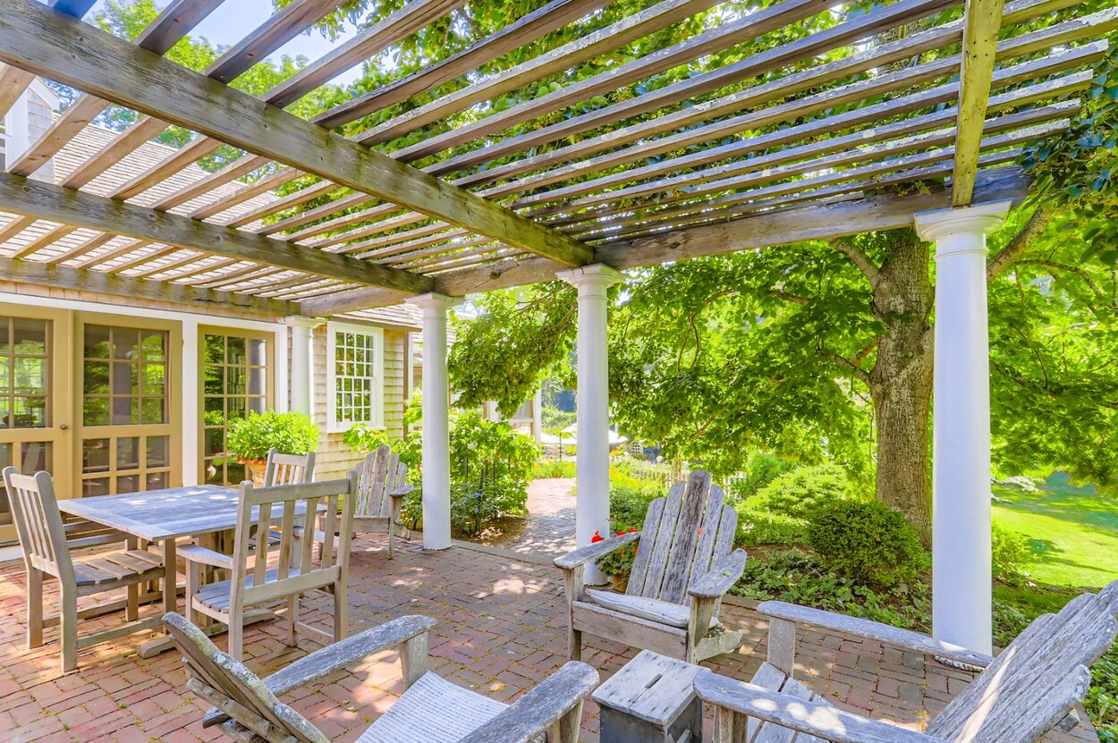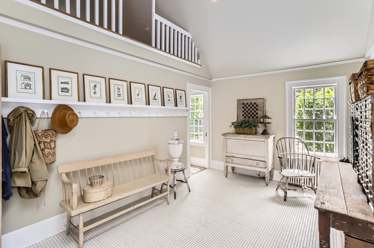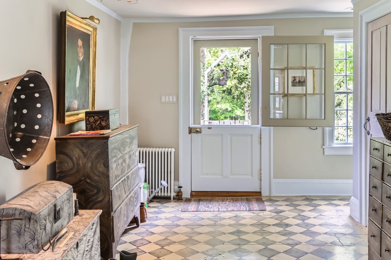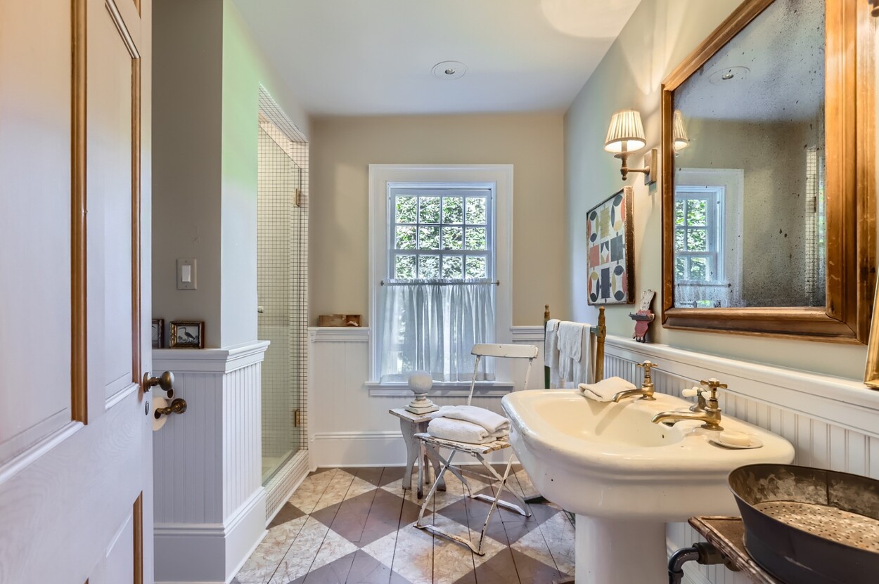 The main home dates from 1730 and has been lovingly restored over the years. Carefully preserved original details—such as hand-painted Siberian elm floors, gunstock posts, a Dutch door, and four fireplaces—coexist with thoughtful upgrades throughout. The main residence offers five bedrooms and four bathrooms, a large kitchen, separate dining room, cozy living room, a great room with a tranquil screened porch that overlooks the heated saltwater pool.