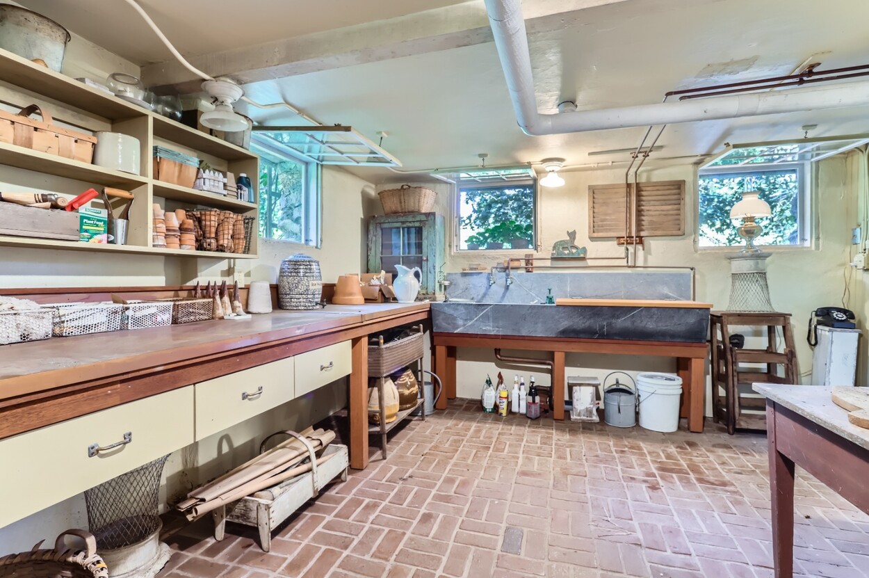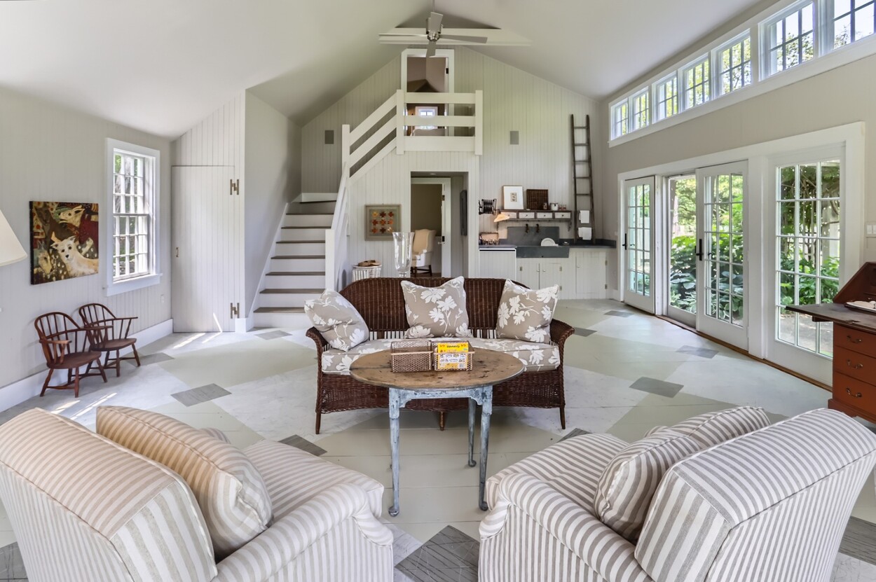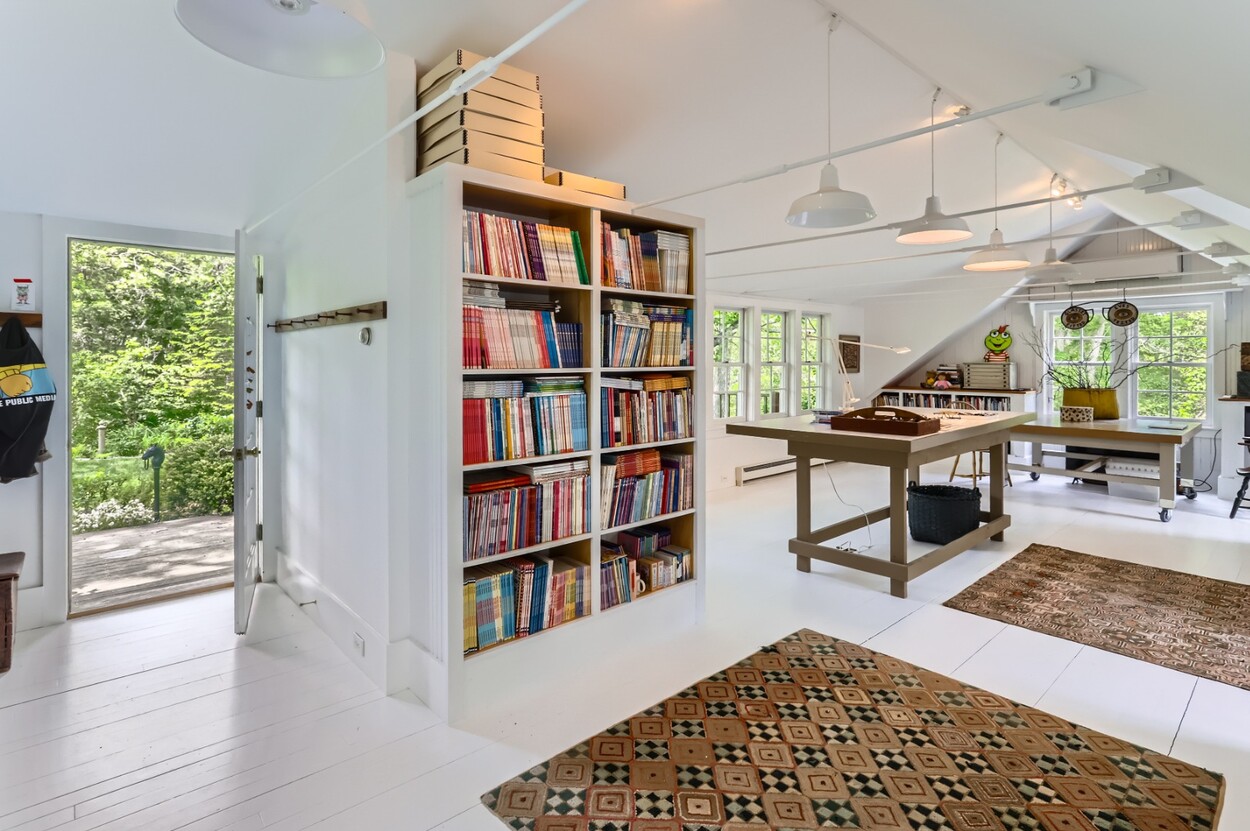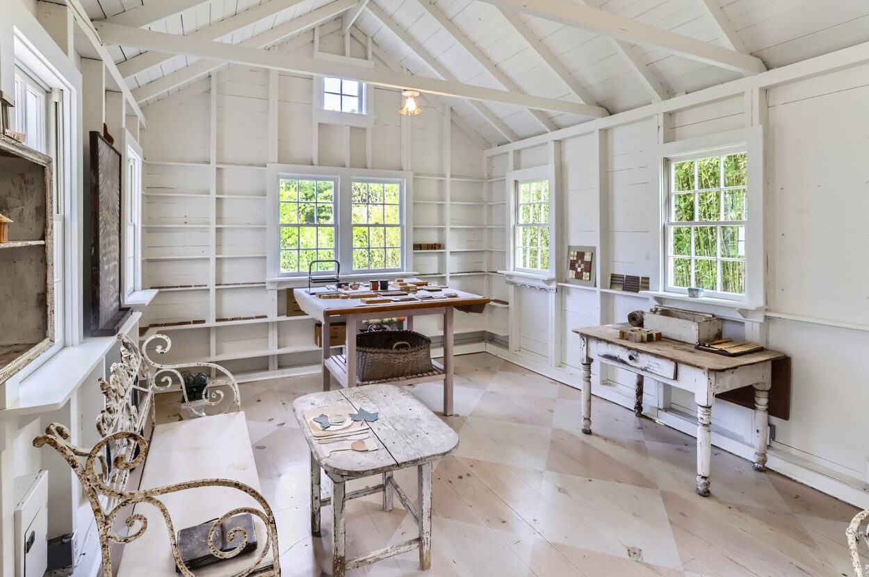 Set on nearly eight acres, this unique estate includes a thoughtfully renovated antique farmhouse and several distinctive outbuildings: a pool, guest house, an art studio, and a carriage house with room for three cars, plus a second studio above.