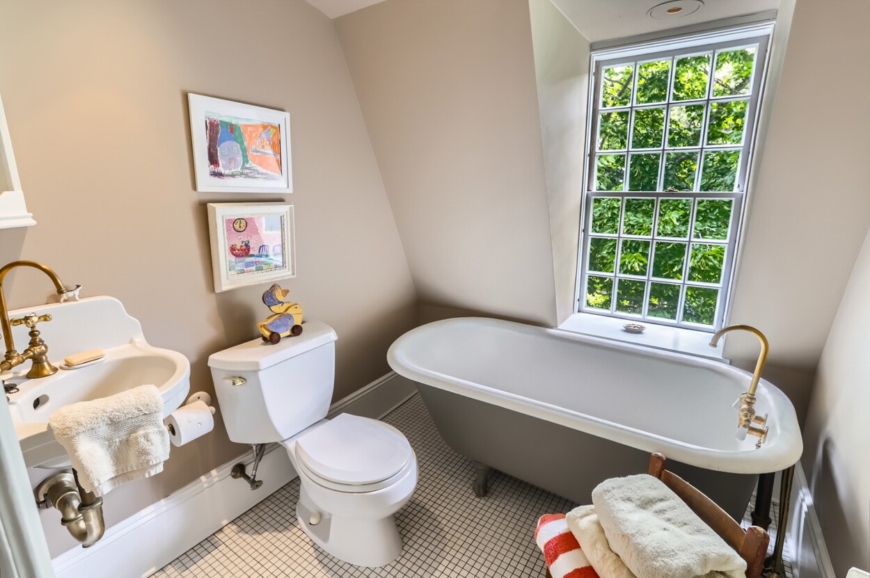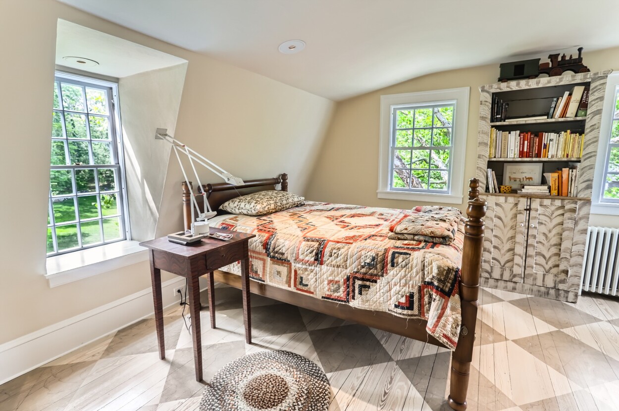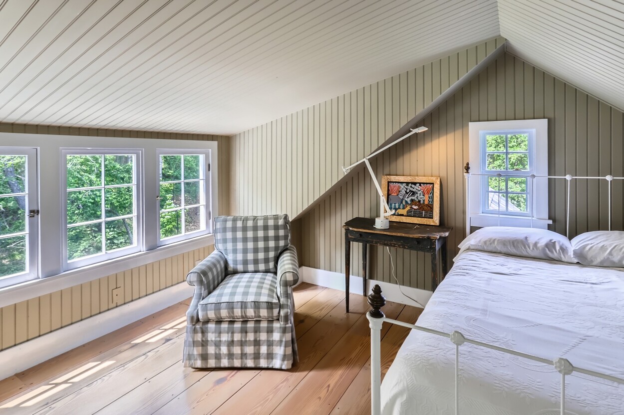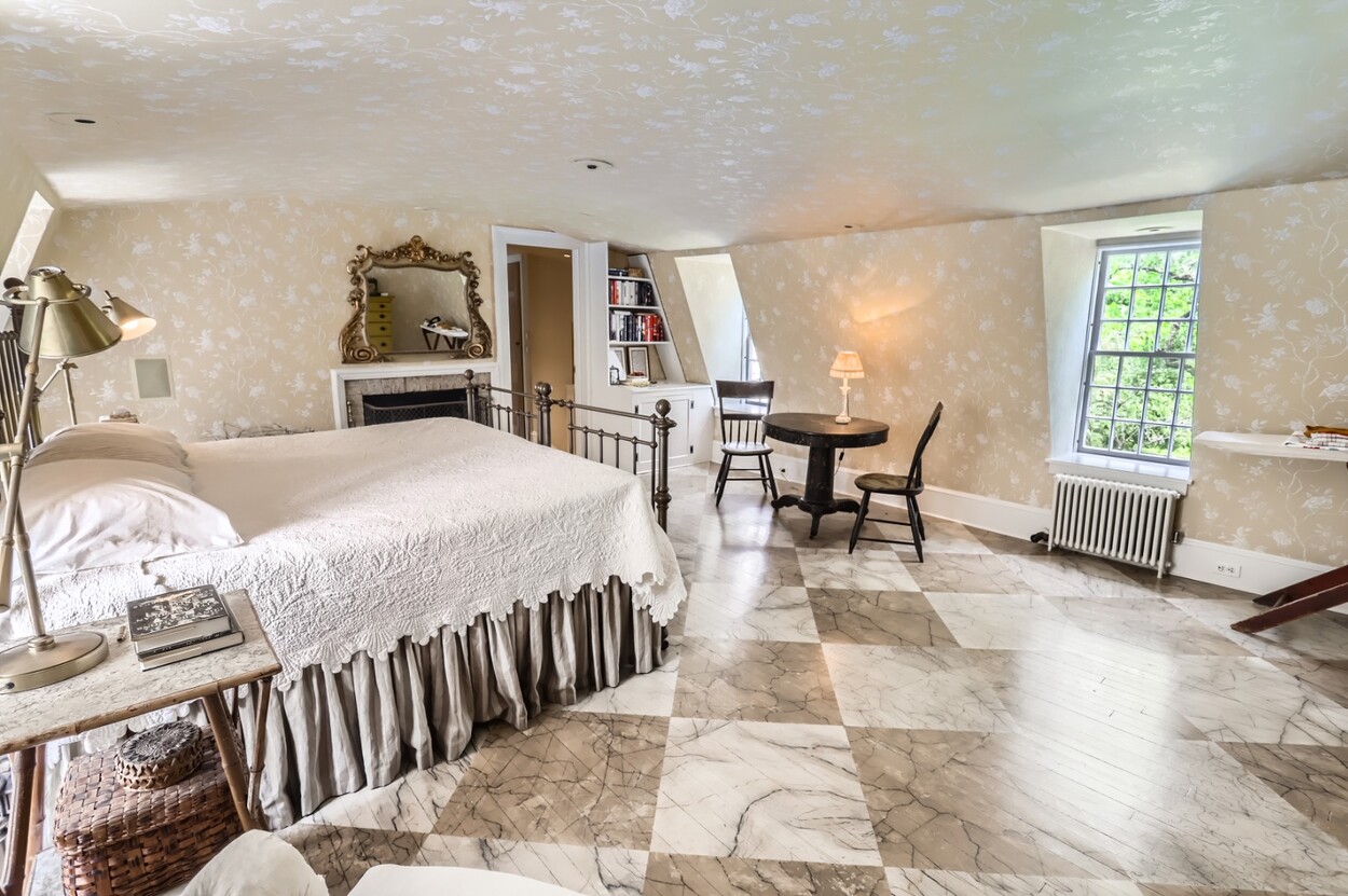 Set on nearly eight acres, this unique estate includes a thoughtfully renovated antique farmhouse and several distinctive outbuildings: a pool, guest house, an art studio, and a carriage house with room for three cars, plus a second studio above.