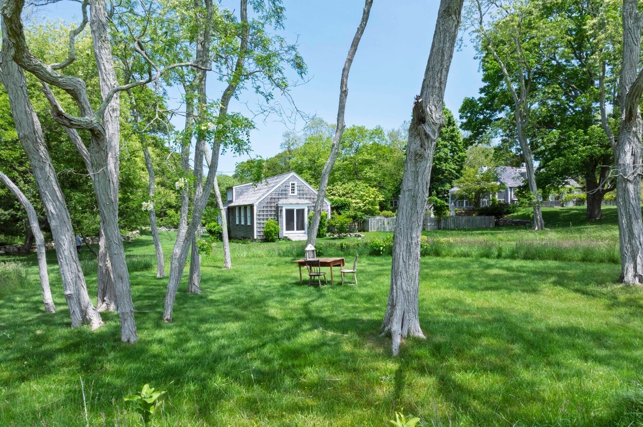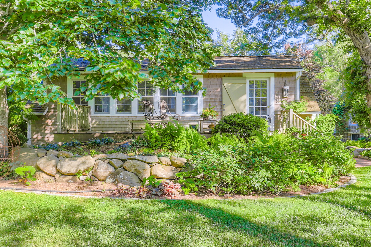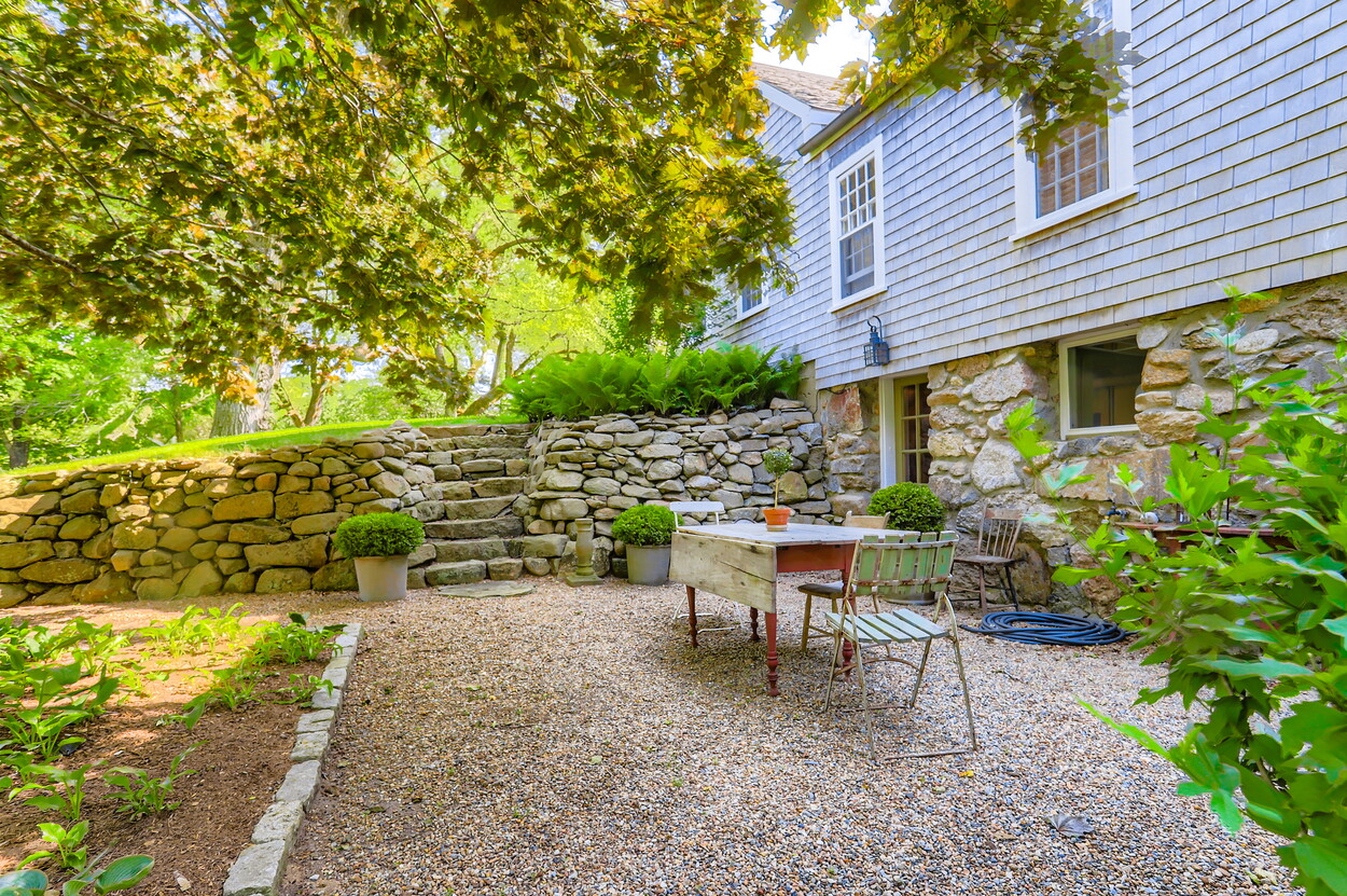 The grounds evoke an arboretum-like feel, with mature trees, open meadows, stone walls, a picturesque pond, babbling brook and perennial gardens. Stroll to the farm for fresh eggs, or to the beach for an evening walk. This is a natural haven in a magical setting, yet just minutes from Vineyard Haven's shops, restaurants, and the ferry.