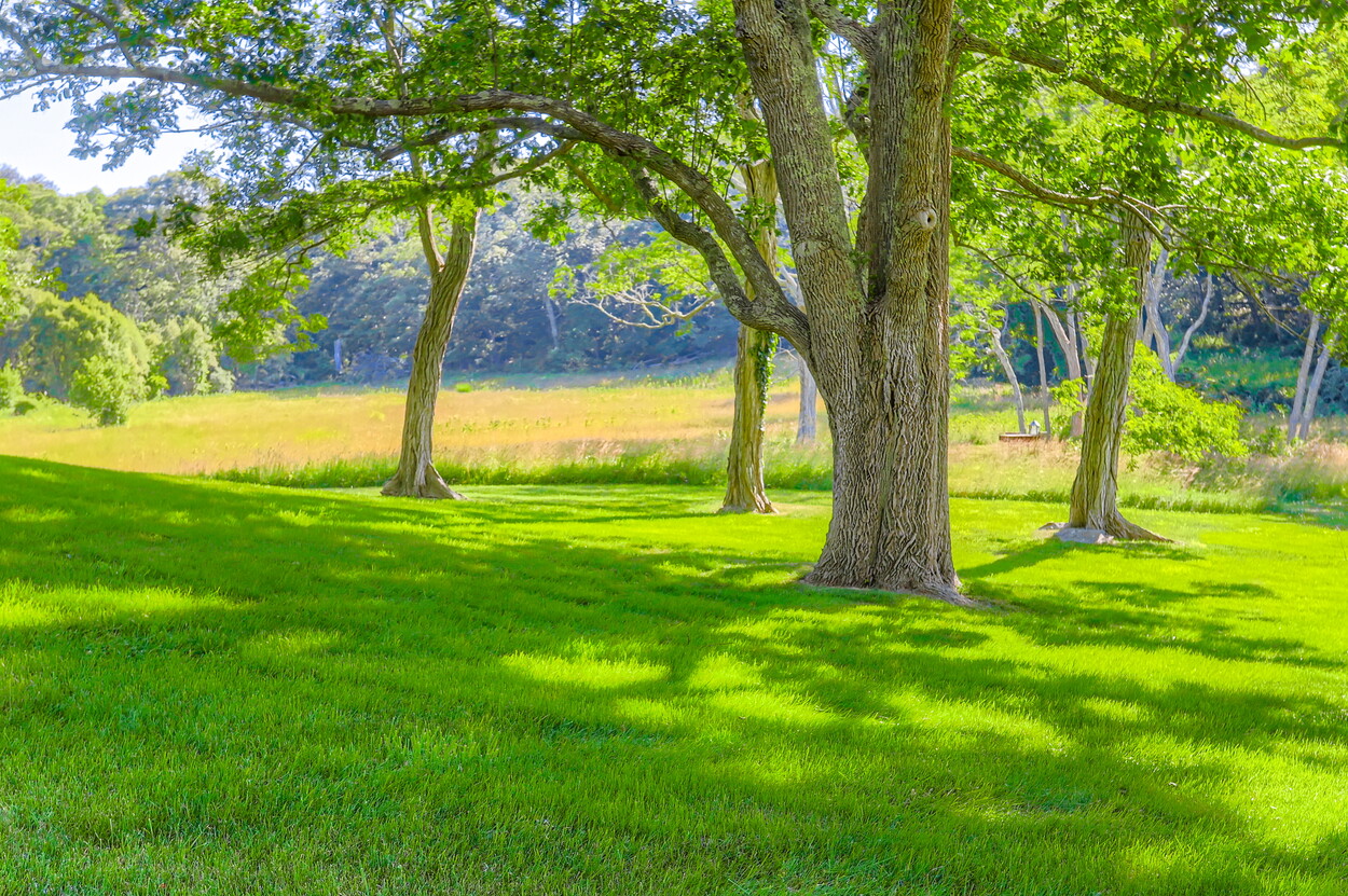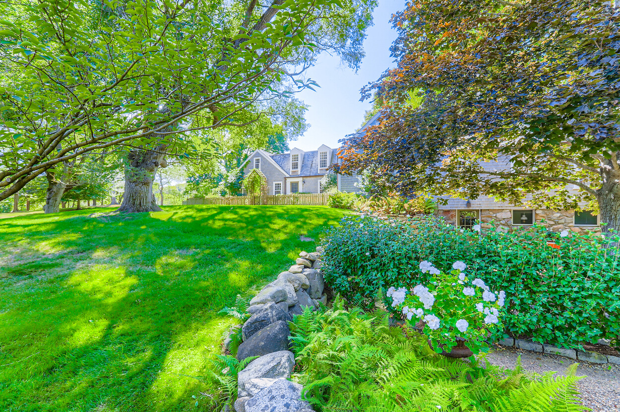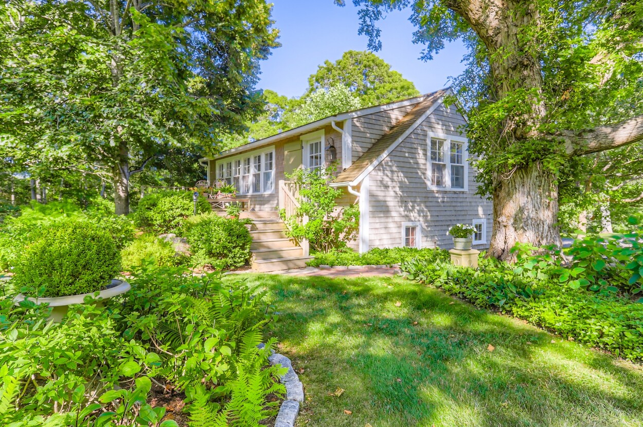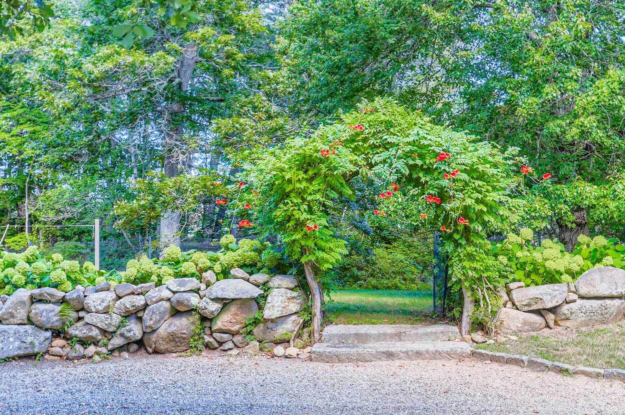 The grounds evoke an arboretum-like feel, with mature trees, open meadows, stone walls, a picturesque pond, babbling brook and perennial gardens. Stroll to the farm for fresh eggs, or to the beach for an evening walk. This is a natural haven in a magical setting, yet just minutes from Vineyard Haven's shops, restaurants, and the ferry.