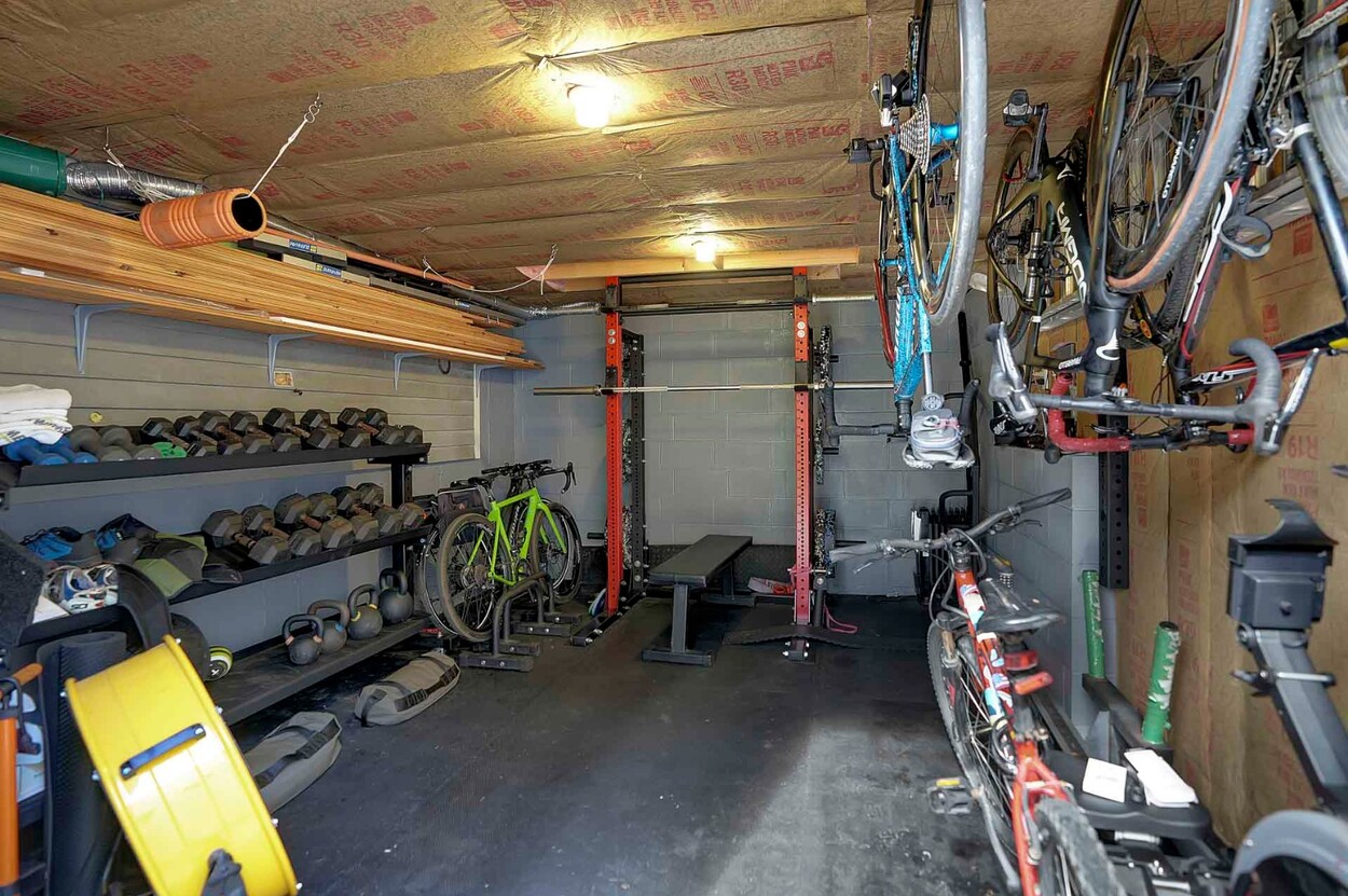 On the second floor, two well-sized bedrooms share a full bath, while the Lower Level offers additional space for gathering or guests, including a large lounge with media area, a bedroom and full bath, and a laundry room. A flexible bonus space currently functions as a home gym or valuable storage space, adding even more versatility.