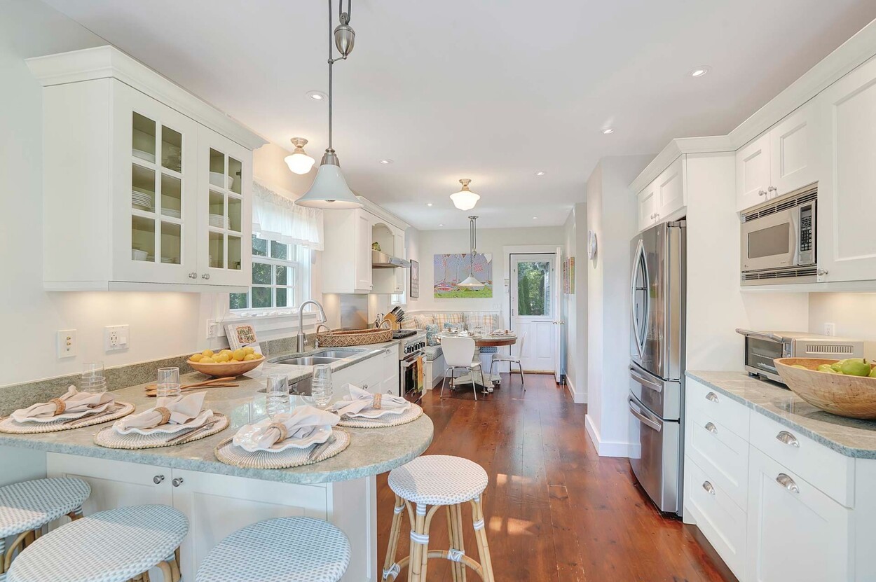 EDGARTOWN GEM: WALK TO TOWN + RELAX BY THE POOL. Nestled just a short stroll from all the best of Edgartown Village, this beautifully renovated retreat offers the ideal balance of Vineyard charm and modern convenience. Designed across three levels of living spaces, the home provides a flexible layout that works beautifully for entertaining, relaxing, or hosting guests.