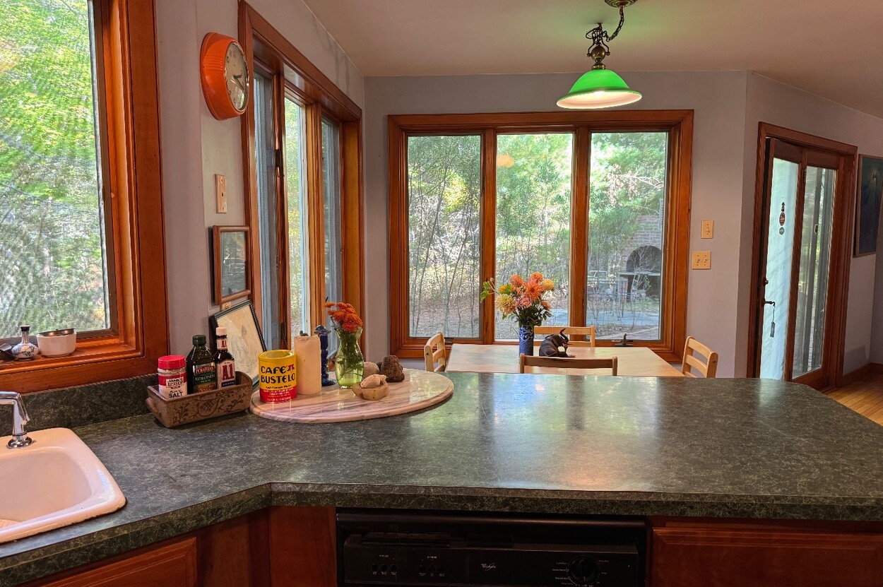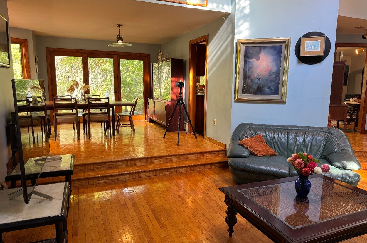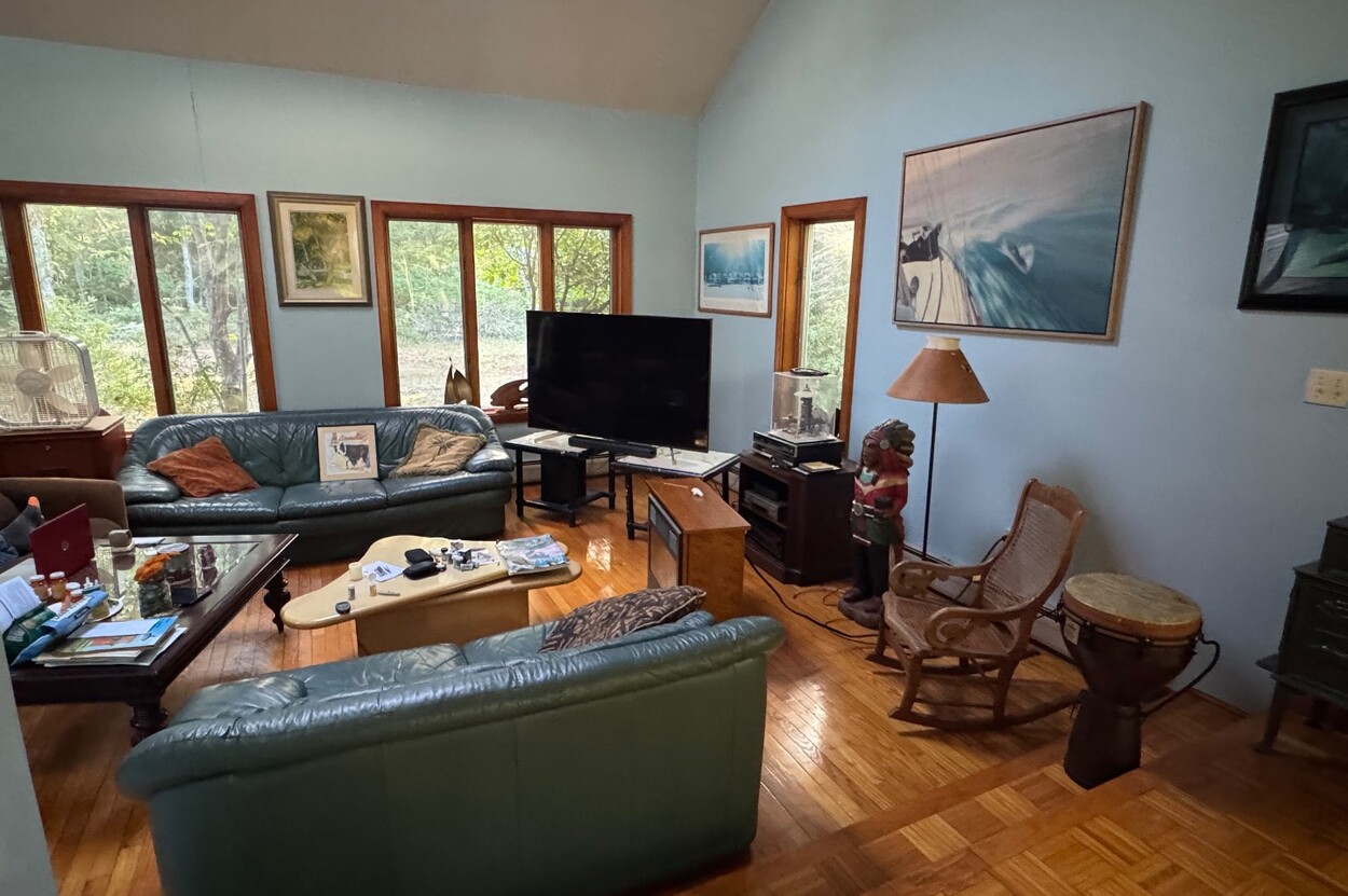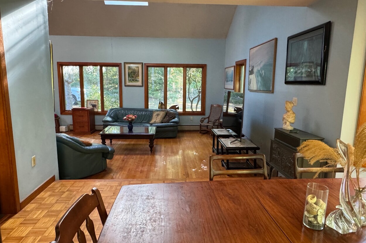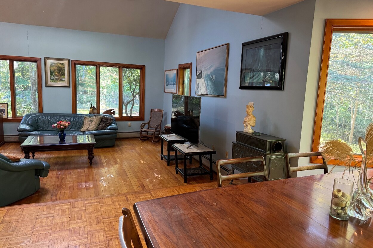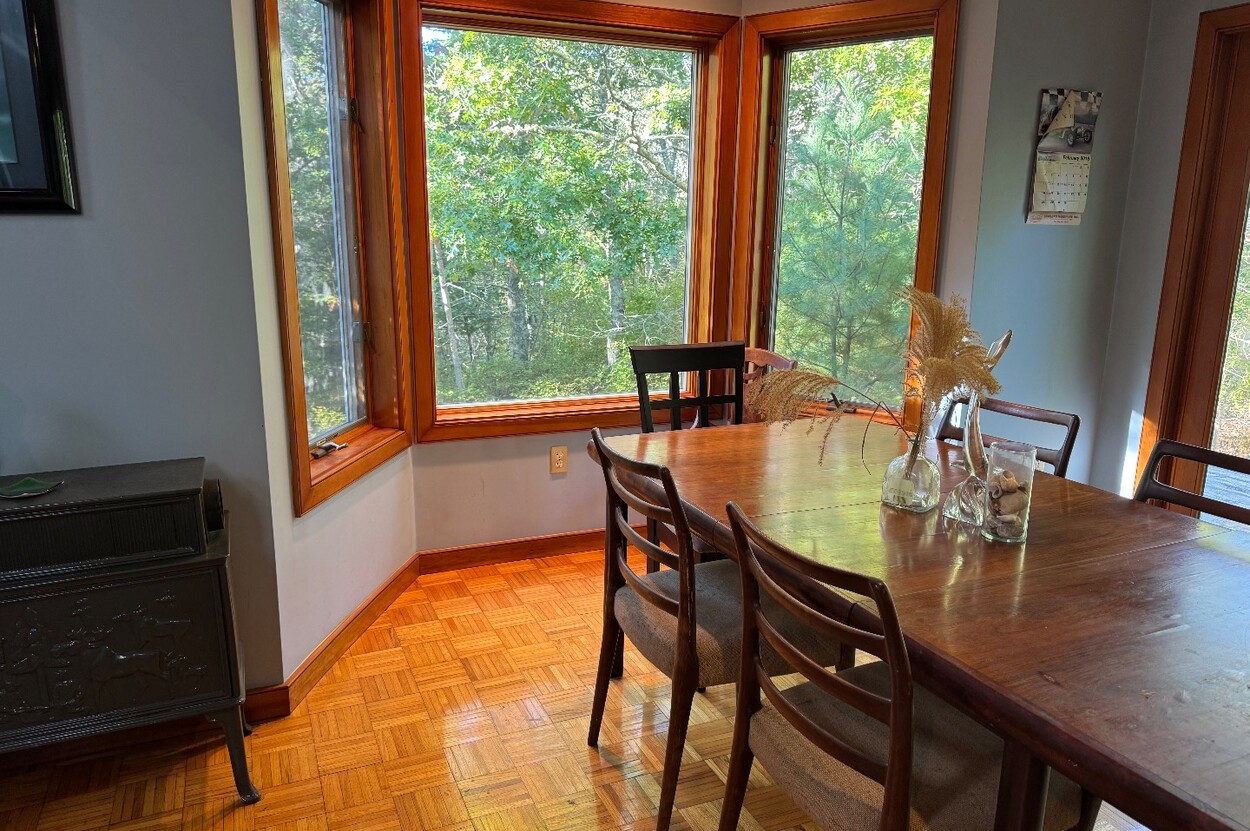 Showings start DECEMBER 2. This spacious custom designed home is well sited to offer maximum privacy in the lush area of Long View. A short bike ride to Lambert's Cove beach, it's also about a 20-minute walk down a quiet private road. The home lays out well for family and extended guests with a roomy living room boasting vaulted ceilings and large windows. The house is designed to have an intimate relationship with the outdoors. A sunny dining area with sliders connects you to the back yard. The large spacious eat in kitchen has a wood stove and comfortable siting area and also a deck off of it walks out to a brick barbeque, where you can chef up some great meals in the afternoon sun. Upstairs on one side is a huge ensuite primary bedroom with a walk out to a small deck on one side. There are 3 additional comfortably sized bedrooms with a shared bathroom also on the 2nd floor. A This home has fantastic wall space for art, and the oak floors radiate a wonderful warmth. While not designed as a rental, this home could generate solid rental income or be a wonderful place to call home. Possible ADU up to 900 square feet.