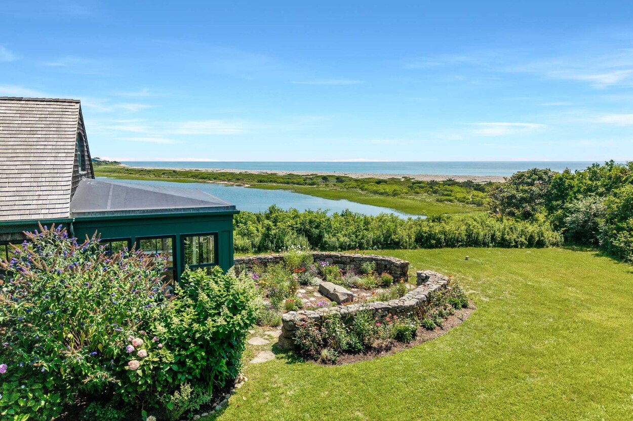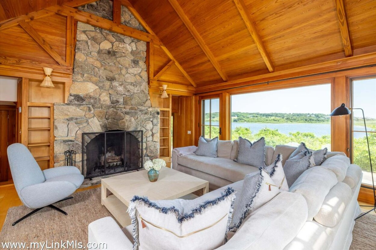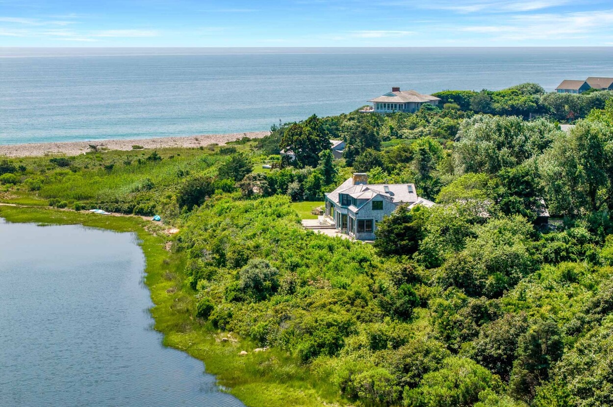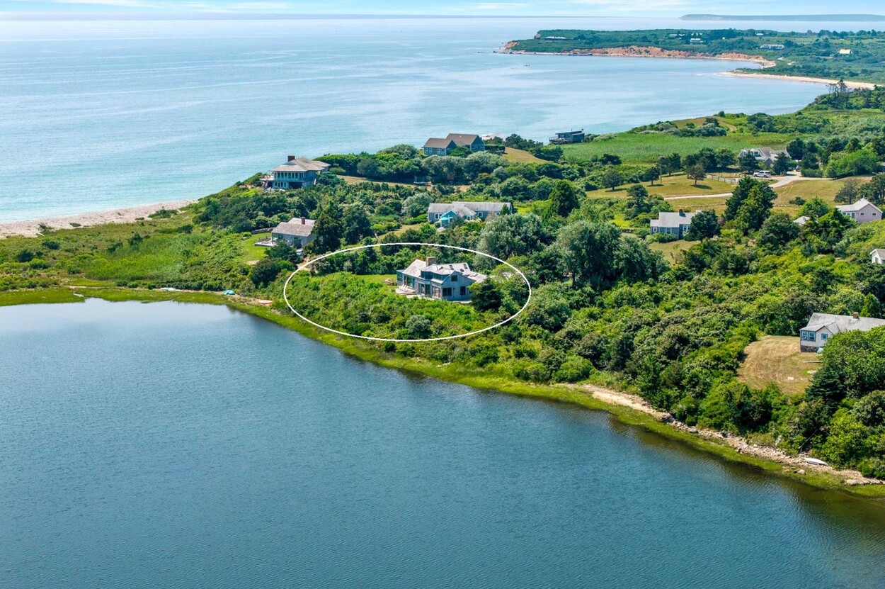 Waterfront home on Stonewall Pond. Nestled along the serene shores of Stonewall Pond, this waterfront home is located in one is Chilmark’s most idyllic locations. This remarkable property offers an unparalleled living experience with breathtaking Atlantic Ocean views and exclusive access to Stonewall Beach. Step inside and be greeted by a seamless fusion of elegance and comfort. The interior spaces are thoughtfully designed to maximize the views and large windows let in an abundance of natural light. With most of the living area on the first floor, the spacious layout features a large living room with stone fireplace, dining room with fireplace, home office, gourmet kitchen, and 3 spacious bedrooms. The second floor features a bedroom suite with breathtaking views of Stonewall Pond and the Atlantic Ocean beyond. This Chilmark location harmoniously combines natural beauty and modern conveniences. In addition to the immediate waterfront access, the surrounding area offers a wealth of activities including boating, fishing, kayaking and paddle boarding. Don't miss your chance to make this unparalleled waterfront retreat your own.