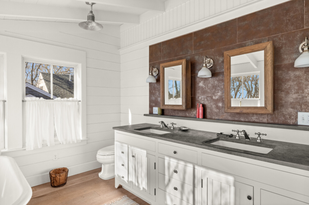 CLASSIC CHILMARK RETREAT. Set on nearly six acres of picturesque land, this Modern Chilmark Farmhouse home has been thoughtfully restored and expanded, offering a serene blend of timeless character and modern comfort. The main residence features 3 bedrooms and 3.5 baths, within approximately 5,400 square feet of gracious living space.