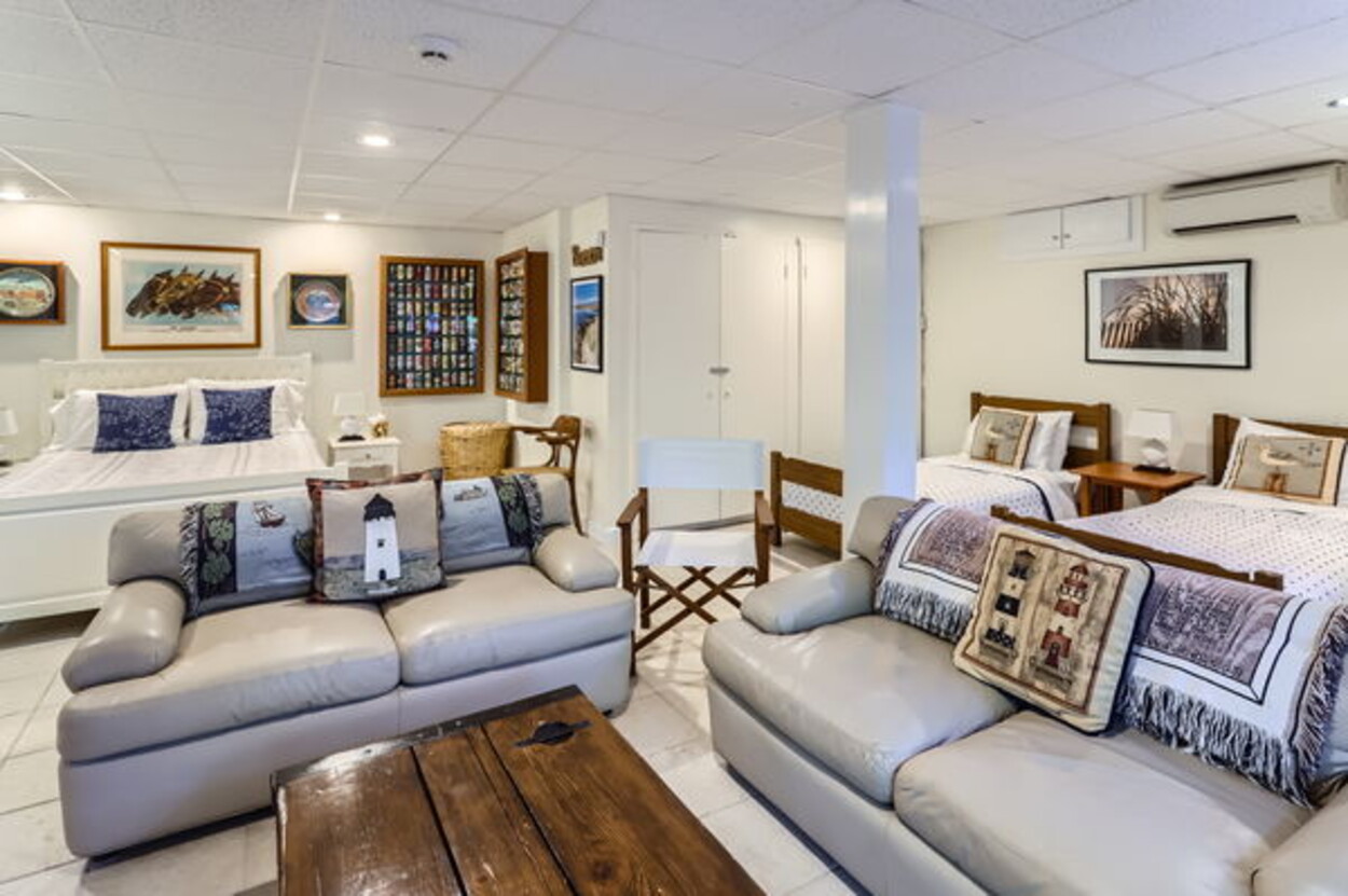The main home offers a spacious open layout with generous living, dining, and sitting areas, ideally suited for entertaining and family gatherings and all with stunning views of the water. A large, bright kitchen serves as the heart of the home, while the living room, dining room, primary bedroom and two elevated decks provide front row seats to boating activity, wildlife, and some of the most spectacular sunsets on the island. The primary bedroom is a serene sanctuary with floor to ceiling water views that feel truly immersive. A second main level bedroom also has water views and its own full bath. On the lower level, a bedroom suite includes a comfortable sitting area with a TV, and spacious full bath.