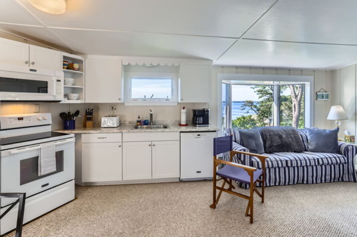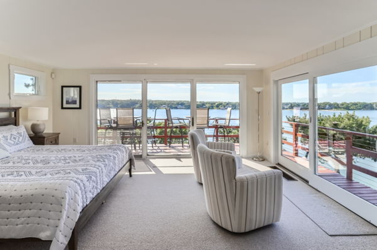 The guest house is a retreat unto itself, offering equally stunning water views from kitchen, living room and private porch. Its large primary bedroom features ample space, while the additional bedroom is a cozy, private nook.
