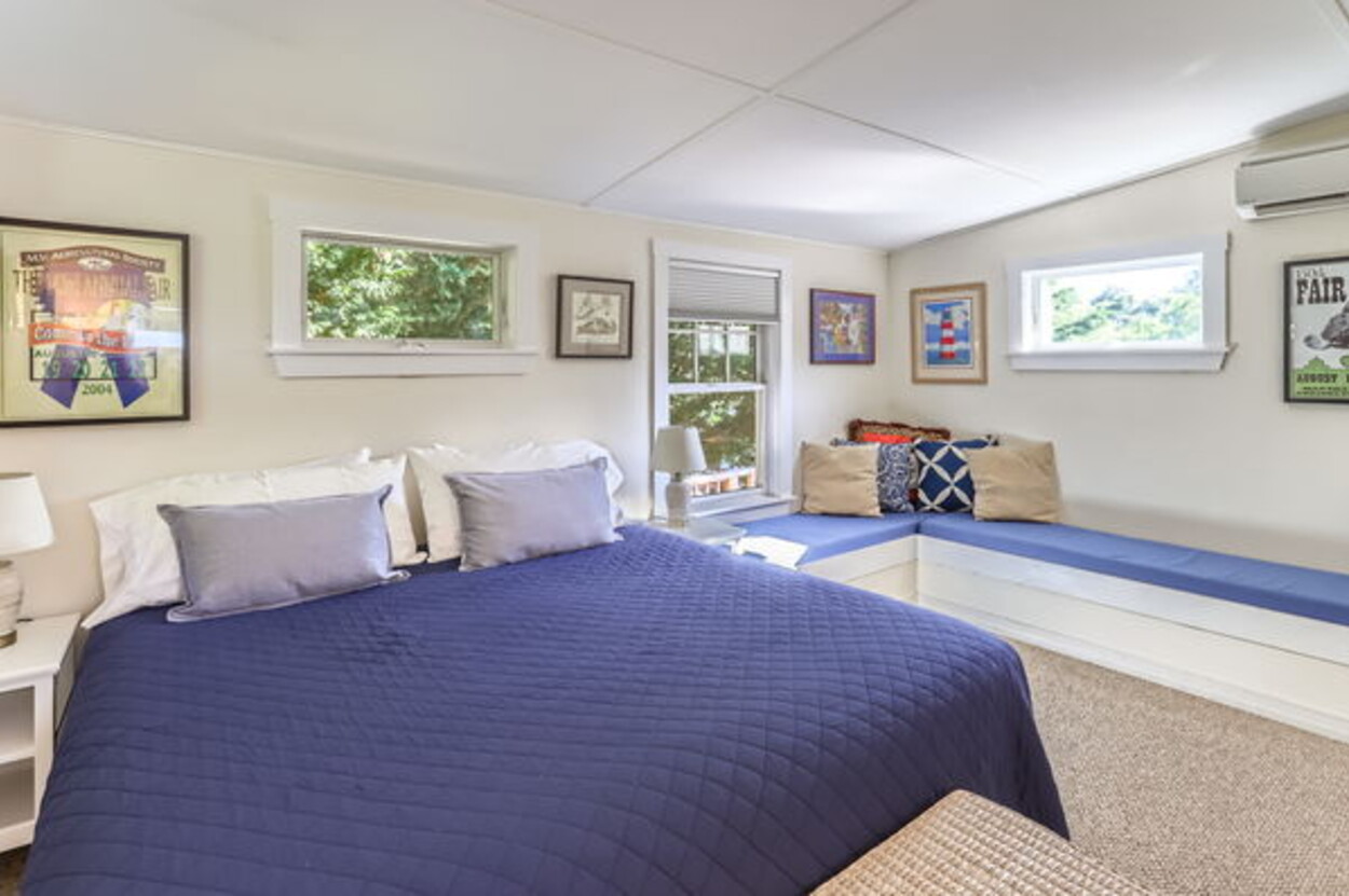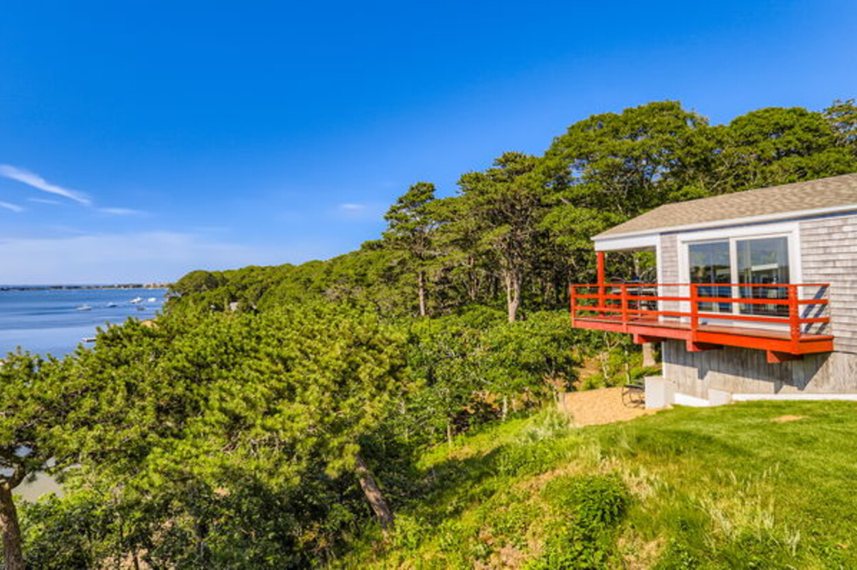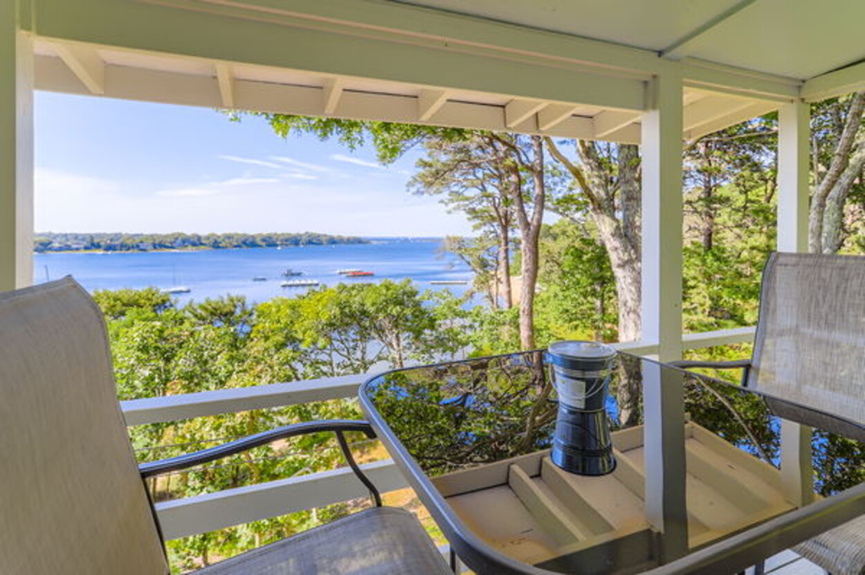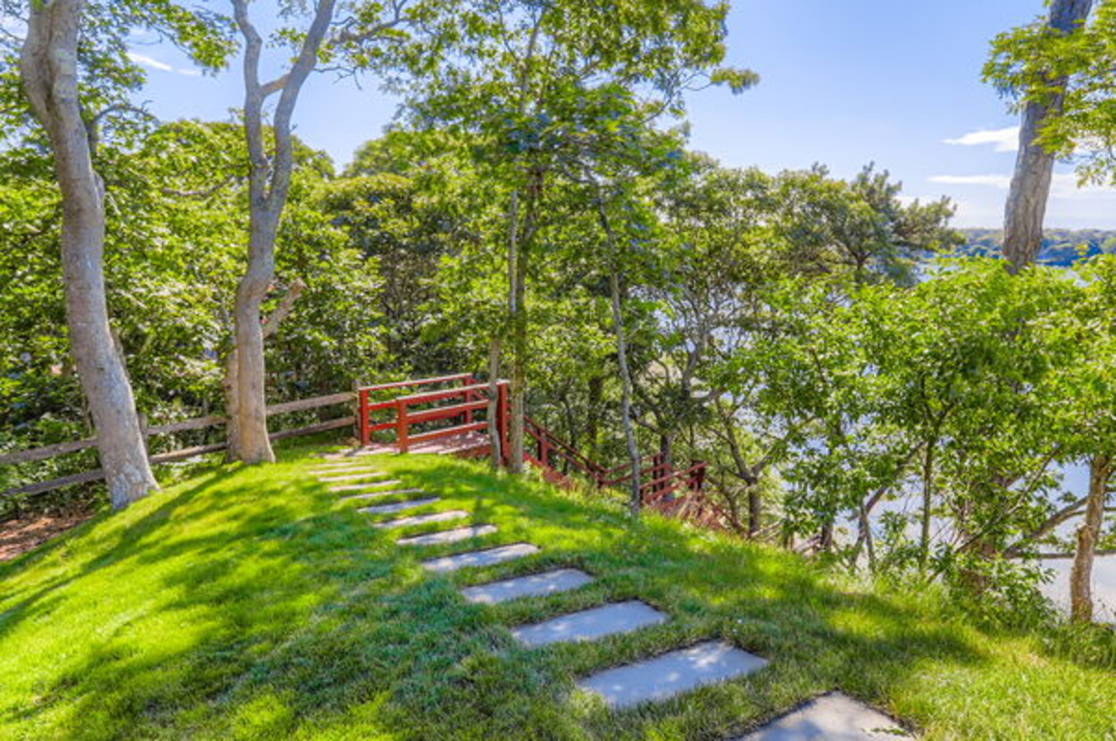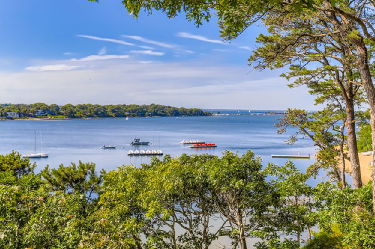 This exceptional waterfront estate offers unmatched panoramic views from house and guest house with extraordinary privacy on a nearly two acre setting rarely found in this coveted Oak Bluffs location. Commanding sweeping vistas of Lagoon Pond, Vineyard Haven, Hines Point, the iconic drawbridge, Vineyard Sound, and even distant views of Cape Cod. The property includes a renovated three-bedroom main residence and a two-bedroom guest house, each thoughtfully oriented to capture the ever changing light over the water.