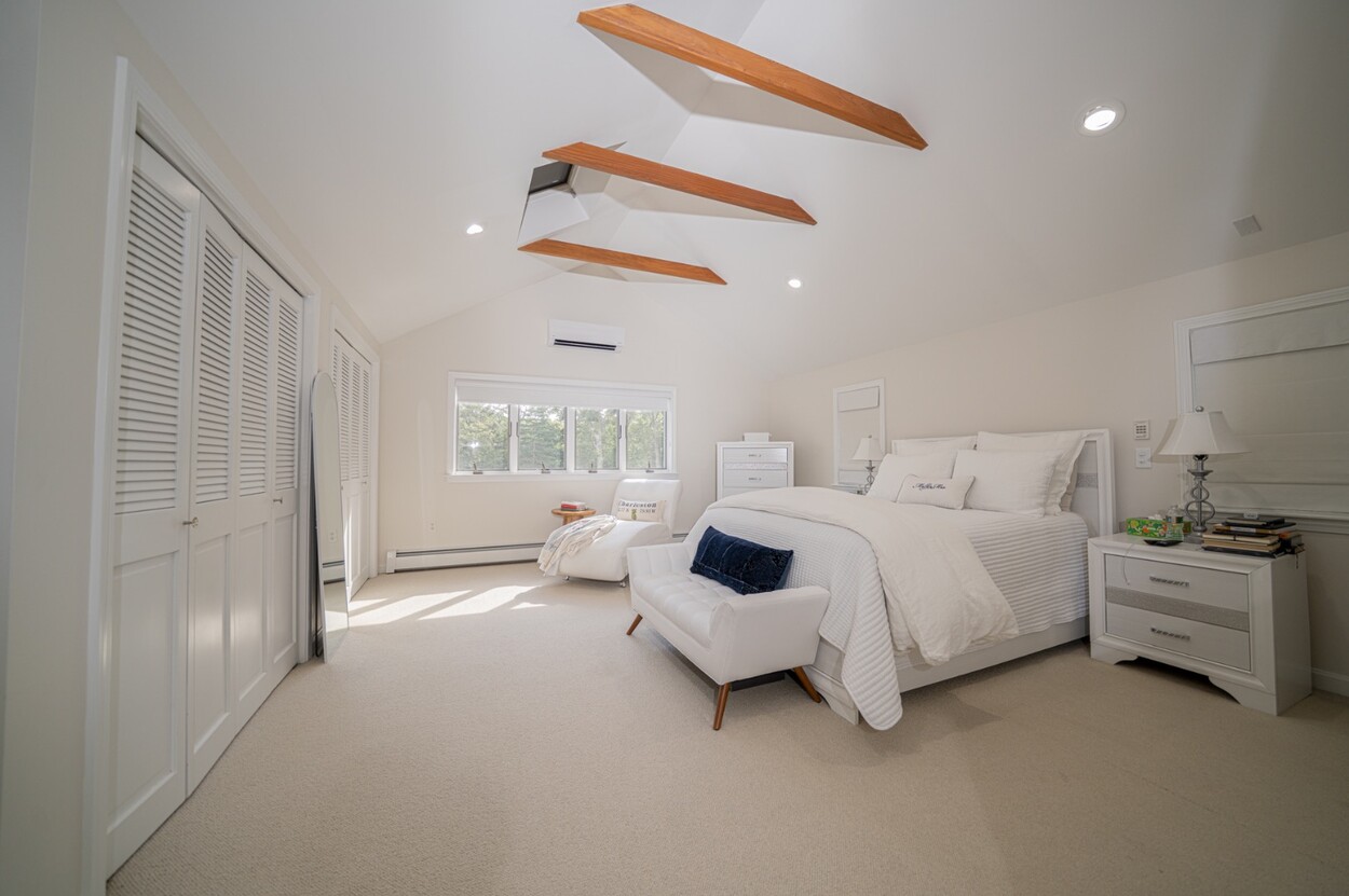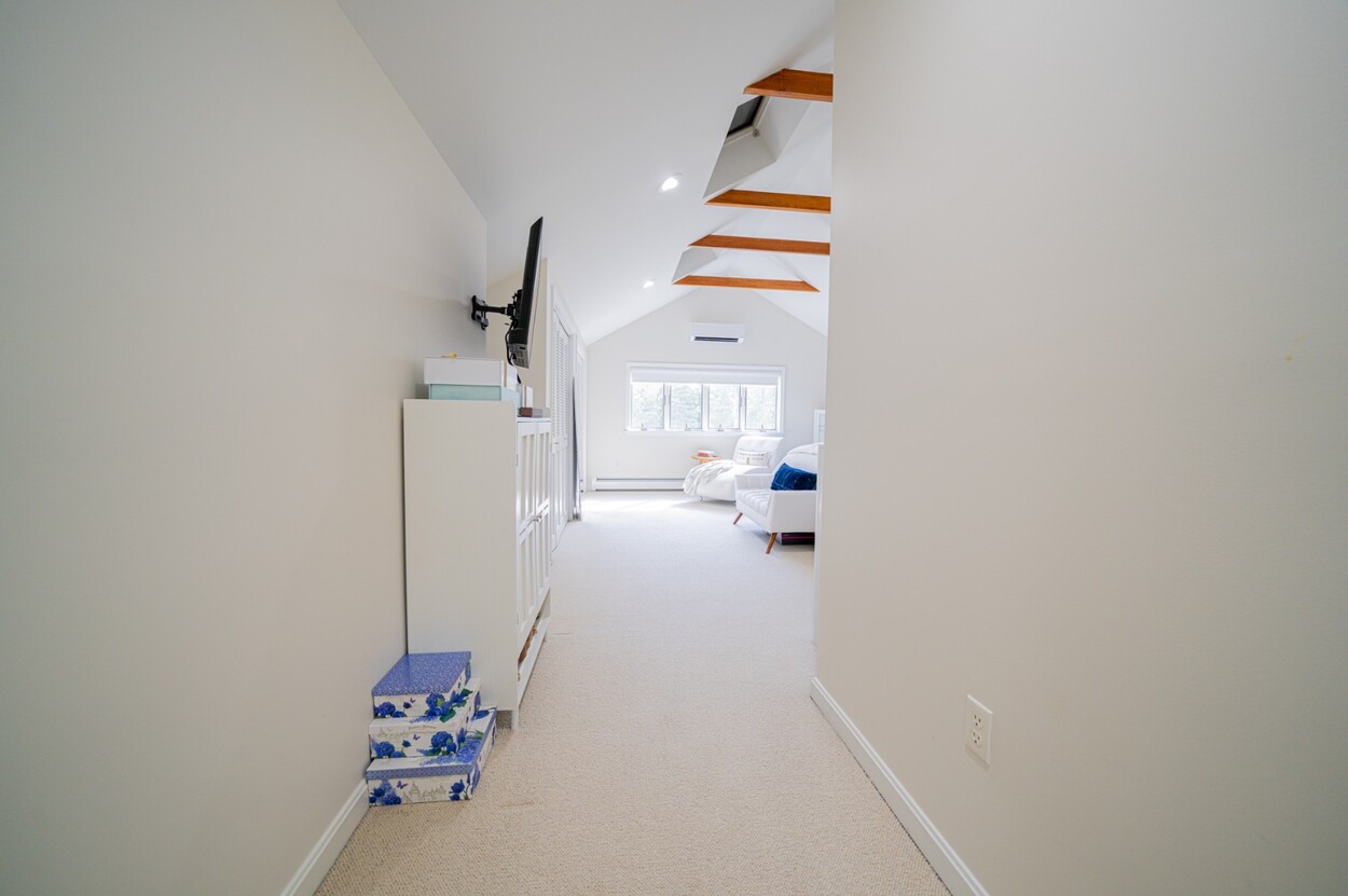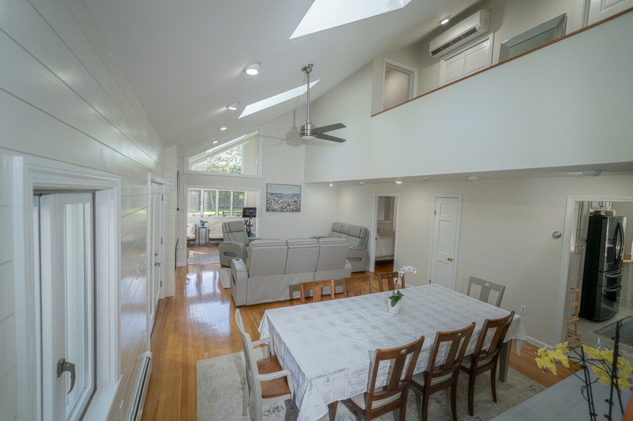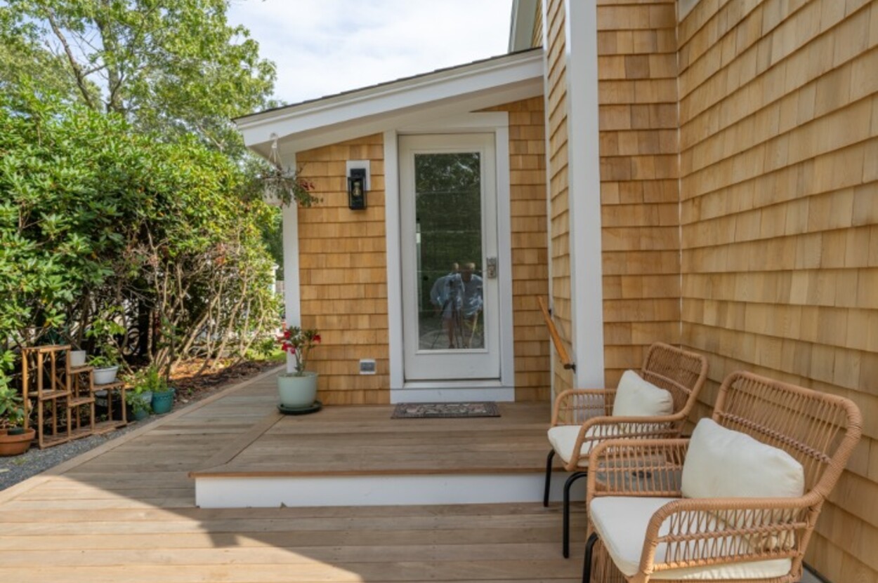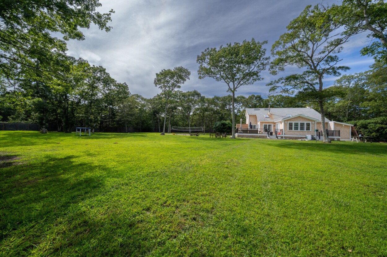 The first floor is a sunlight filled, open kitchen and dinning room, with hardwood floors throughout. There are multiple decks leading out to a spacious, private yard. There is even a volleyball court set up just off the back porch. Off to the side of the house is a large chicken coop and shed that is partitioned off by the fence. The home has been well maintained and perfect for family gatherings year around. There are walking, gravel and bike paths just a stones throw from the door step. It is approximately a 15 minute ride to downtown Vineyard Haven and 5 minute ride to the West Tisbury School. This is an ideal home for a family!
