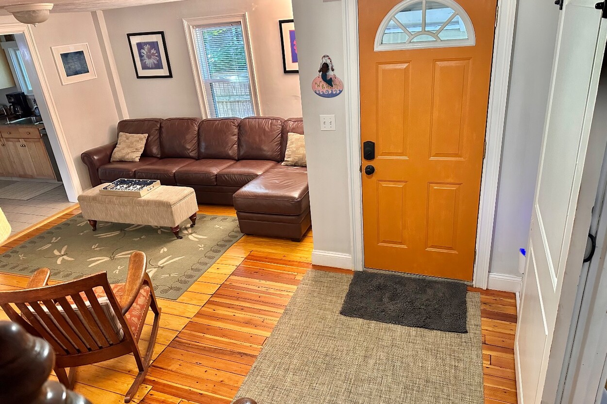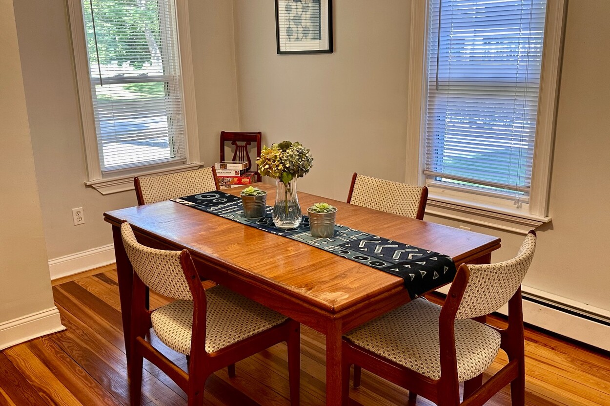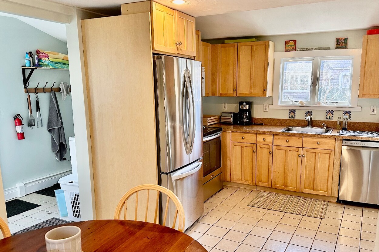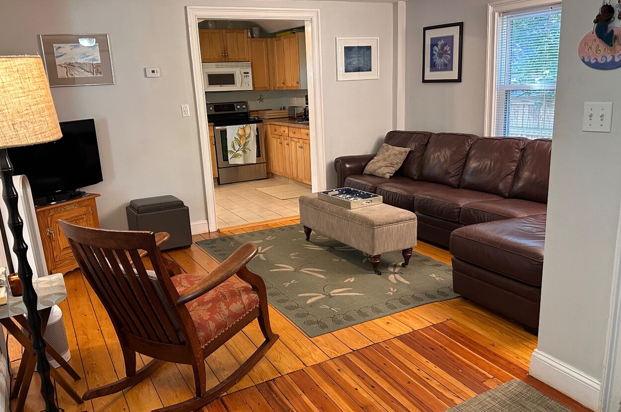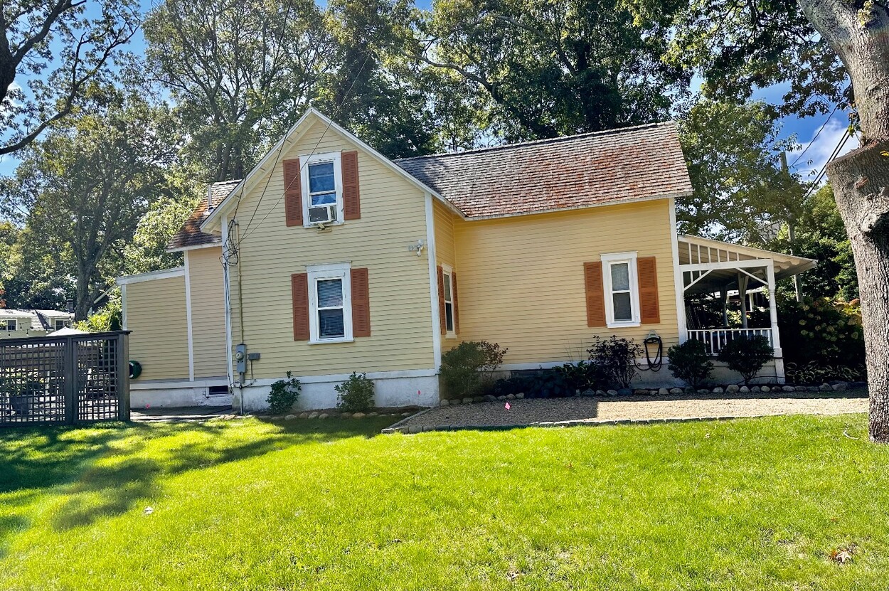 A comfortable home in an established, East Chop neighborhood, this four bedroom, two bathroom house is located within walking distance to the Harbor, downtown Oak Bluffs, and the Oak Bluffs Ferries. There is easy access to shops, family entertainment, and the beach. This home provides a welcoming porch and a spacious backyard patio for relaxation and gatherings. There is large first floor bedroom. The downstairs has an open living room, kitchen, and dining area plus a laundry and mud room near the rear exit. There is a bathroom on the first floor.