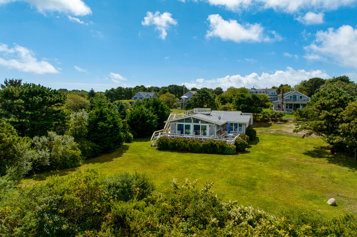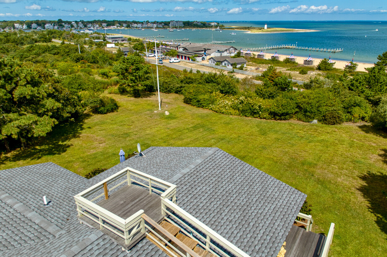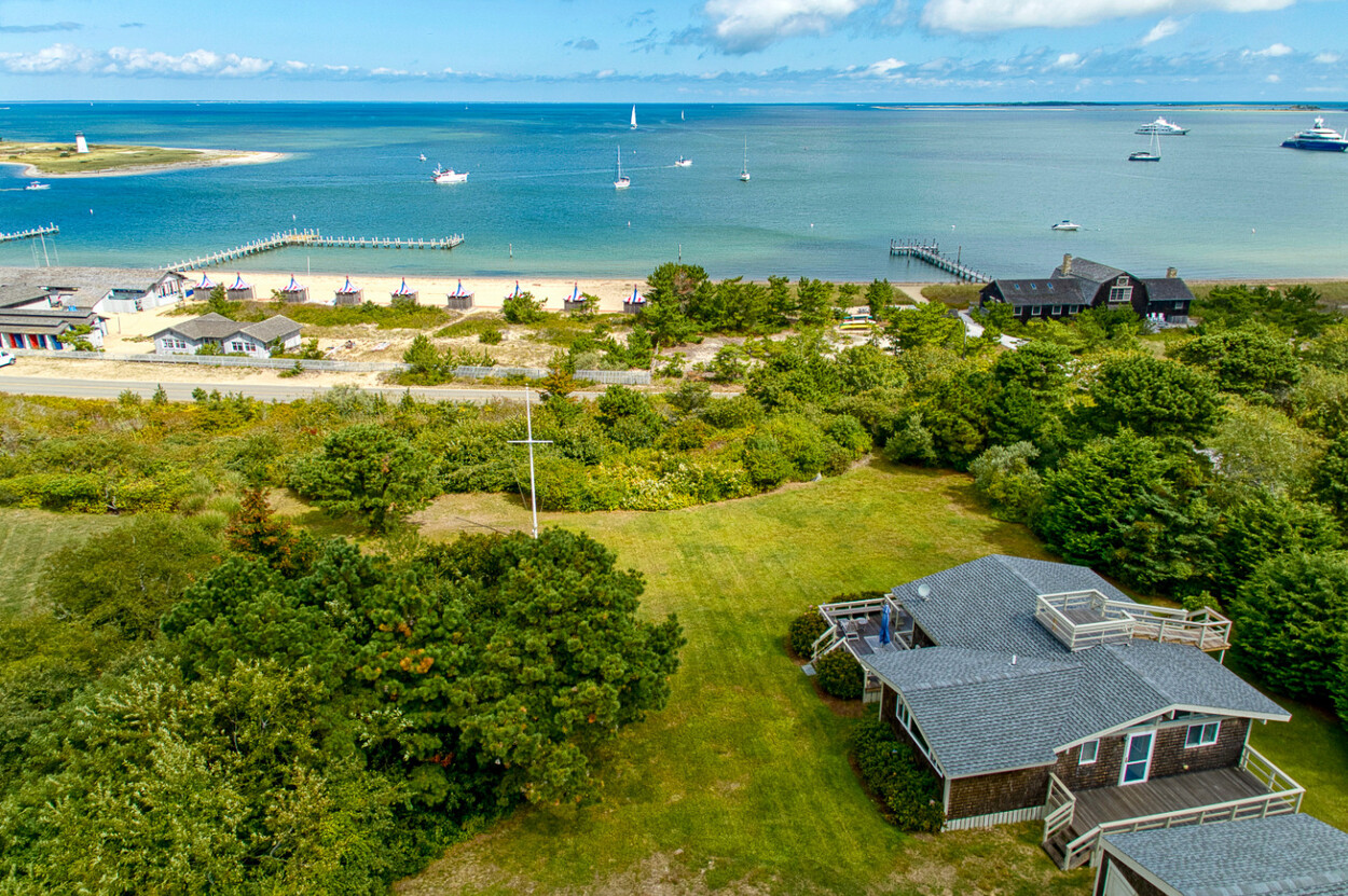 Enjoy dynamic, panoramic views from this charming and thoughtfully updated single-story Chappaquiddick cottage. Designed for effortless living, the home features an expansive deck overlooking the outer harbor and iconic lighthouse, perfect for entertaining or relaxation. A rooftop observation area provides additional seating and even more breathtaking vistas. Deeded beach access is conveniently located just across the way, offering a tranquil spot to enjoy the sandy shore and calm waters of the outer harbor. Ideally situated just off the Chappy Ferry, Manaca Hill offers the best of both worlds: easy access to the shops, dining, and vibrant charm of Downtown Edgartown, while embracing the laid-back, coastal lifestyle that makes Chappaquiddick so special.