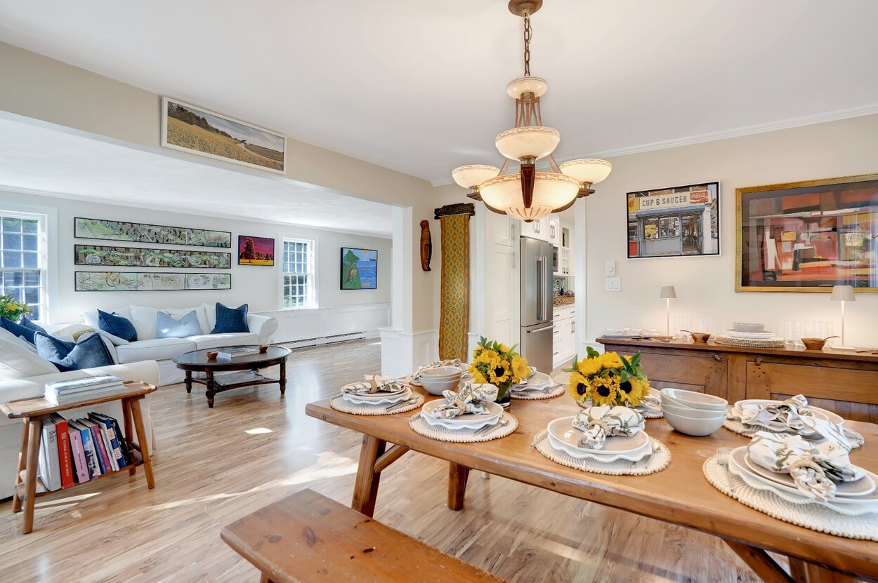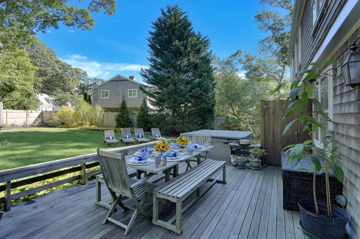Enjoy beach-close living—just 0.2 miles to the shore—in sought-after West Chop. This welcoming 5BR/3.5BA colonial blends classic Vineyard character with modern comforts, including central air, an updated kitchen, and three fireplaces. Approximately 3,152± sq ft (expanded from 2,632± with a 520± sq ft finished space over the garage) offers flexible, easy flow to a large fenced backyard with a deck, outdoor shower, and a new saltwater hot tub for effortless relaxation. The dry, unfinished basement with bulkhead walkout presents excellent finish potential for a gym, media room, or workshop (buyer to verify). From your front door, bike or stroll to town, beaches, shops, and the ferry. Ideal as a year-round residence, second-home retreat, or investment/rental opportunity.