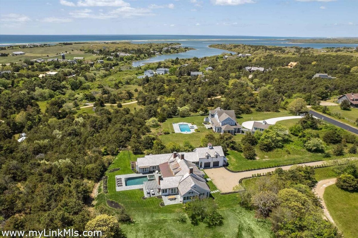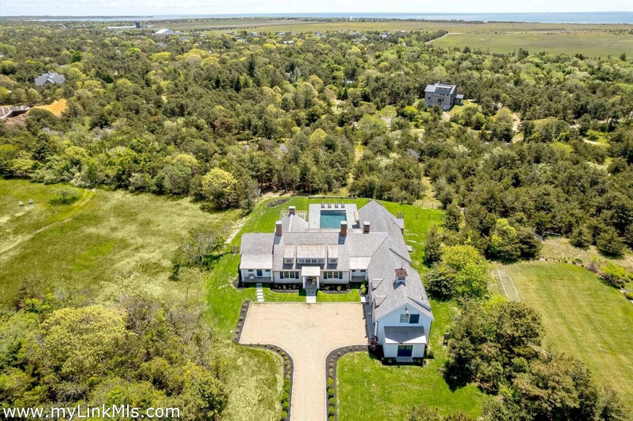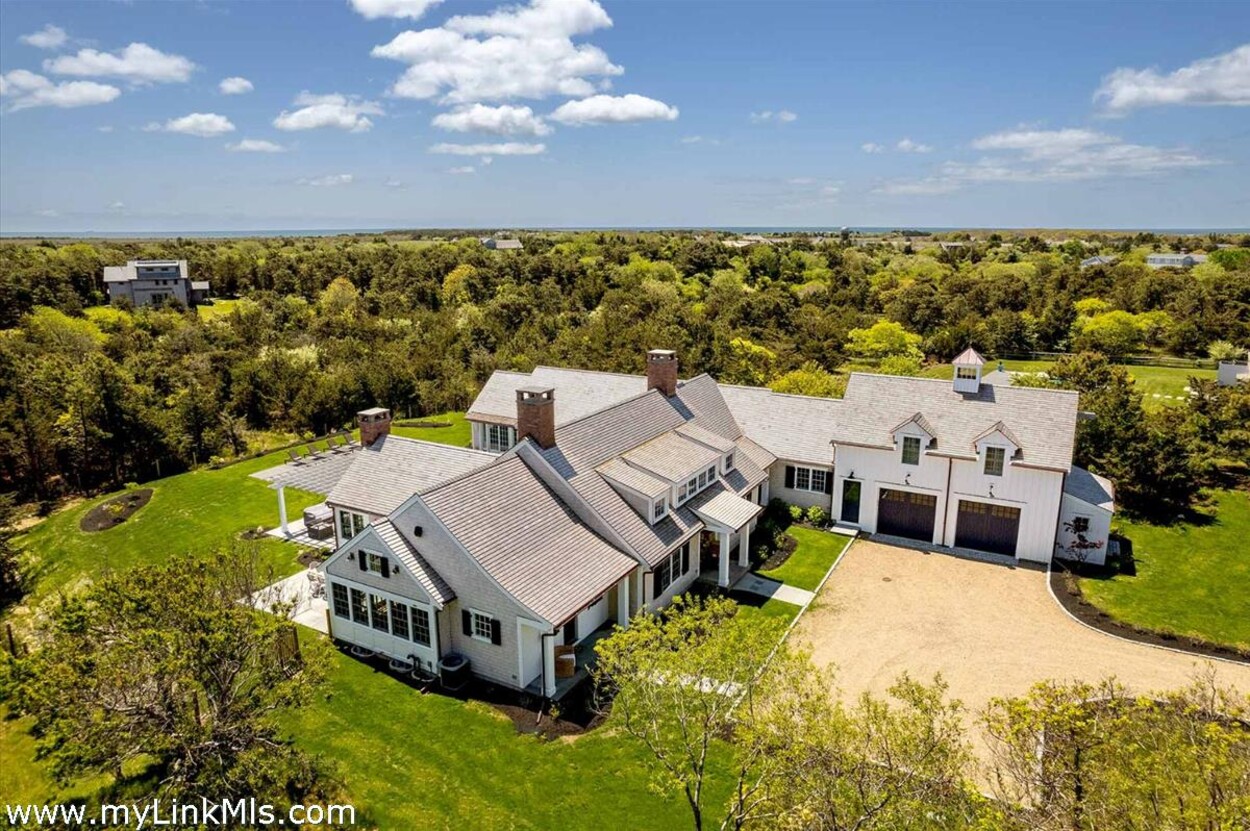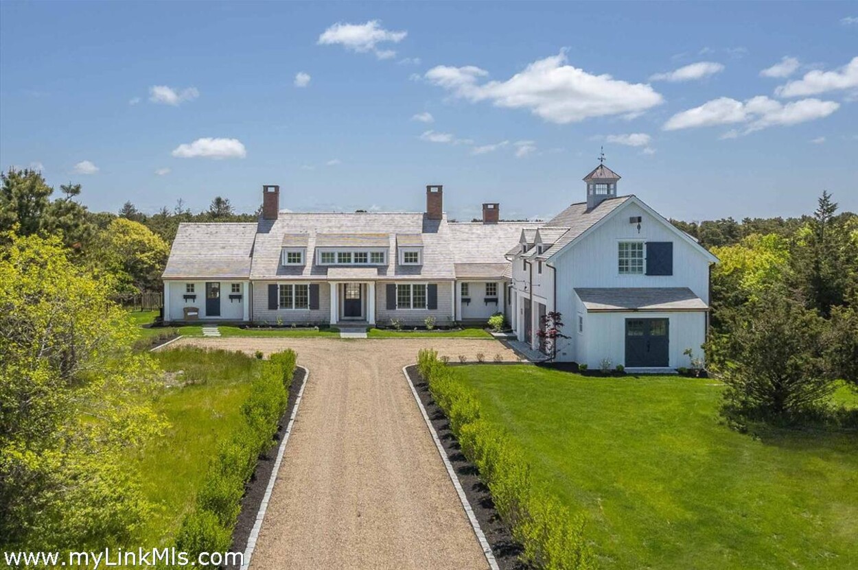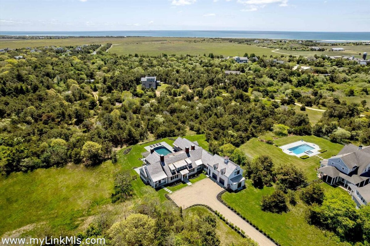 LUXE COASTAL RETREAT IN KATAMA. Sited at the end of a long private drive, amid a bucolic 1.5-acre meadow setting and lush perennial gardens, this elegant coastal retreat, designed by noted architect Patrick Ahearn, offers the epitome of luxurious living in Katama. The home’s timeless and charming character is highlighted by thoughtful, top-notch architectural details and styling throughout. There are vaulted ceilings in every room of the house with custom millwork and paneling, antique rough hewn beams adding charm and character. In addition, the well-designed floor plan features multiple living areas that open out to a central courtyard with bluestone terrace, an outdoor wood-burning fireplace and an 18'x36' gunite swimming pool with built-in whirlpool spa. The property is ideally located near South Beach, with the sounds of the ocean nearby. Furnishings, artwork and accessories are available separately for a turnkey and move-in ready purchase opportunity.