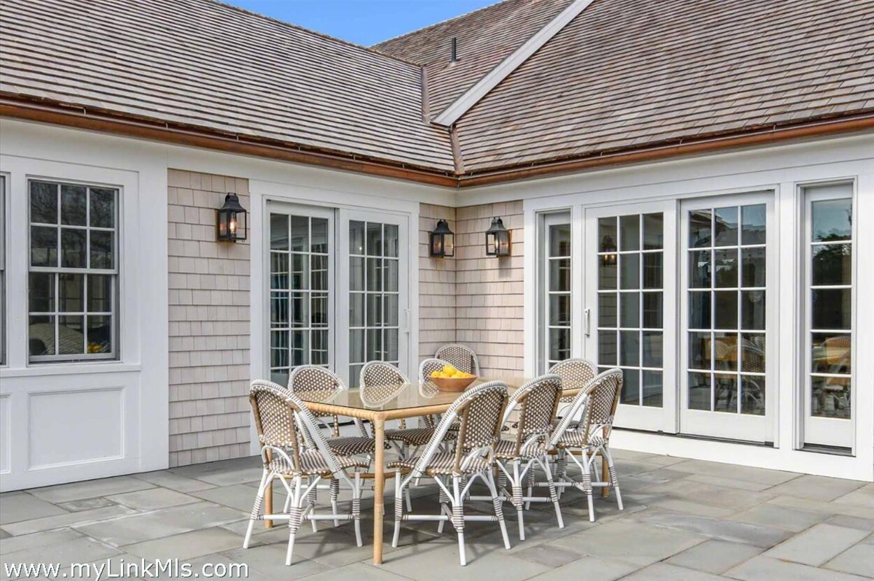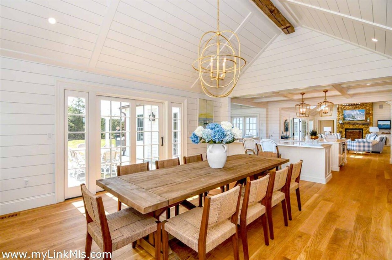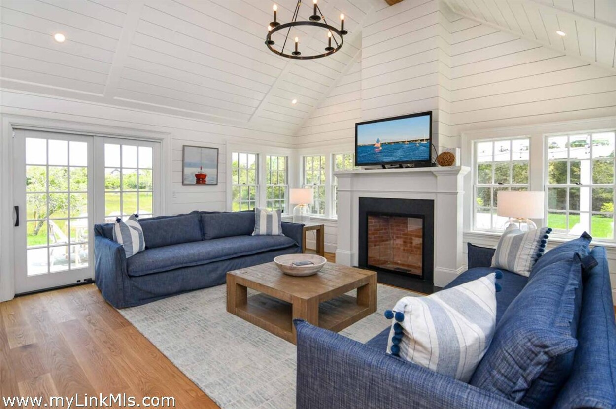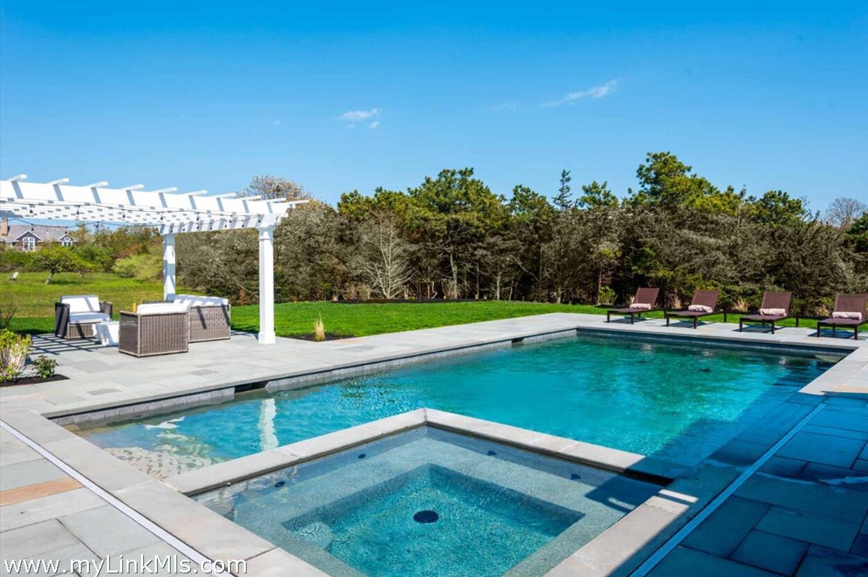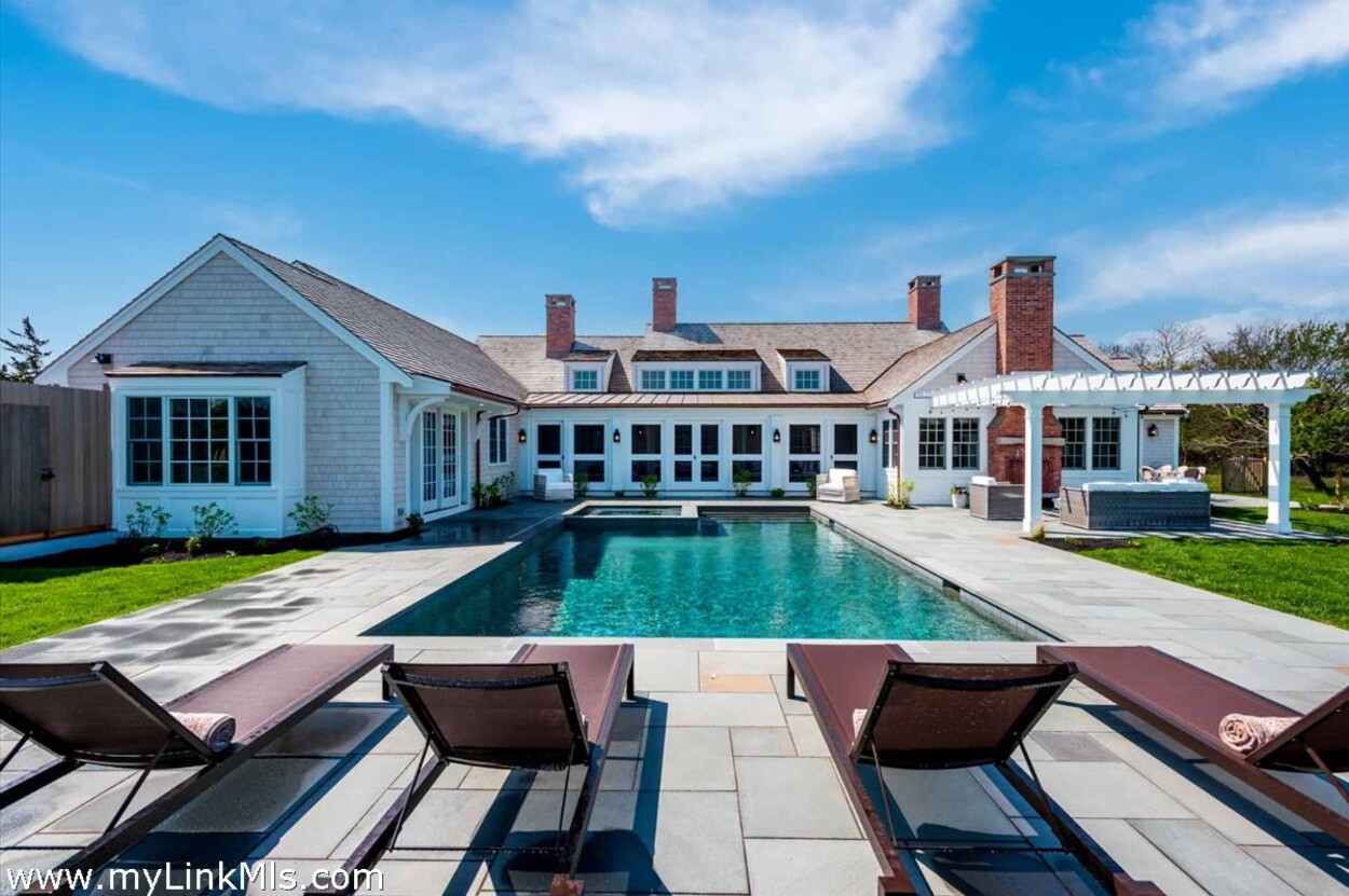 LUXE COASTAL RETREAT IN KATAMA. Sited at the end of a long private drive, amid a bucolic 1.5-acre meadow setting and lush perennial gardens, this elegant coastal retreat, designed by noted architect Patrick Ahearn, offers the epitome of luxurious living in Katama. The home’s timeless and charming character is highlighted by thoughtful, top-notch architectural details and styling throughout. There are vaulted ceilings in every room of the house with custom millwork and paneling, antique rough hewn beams adding charm and character. In addition, the well-designed floor plan features multiple living areas that open out to a central courtyard with bluestone terrace, an outdoor wood-burning fireplace and an 18'x36' gunite swimming pool with built-in whirlpool spa. The property is ideally located near South Beach, with the sounds of the ocean nearby. Furnishings, artwork and accessories are available separately for a turnkey and move-in ready purchase opportunity.