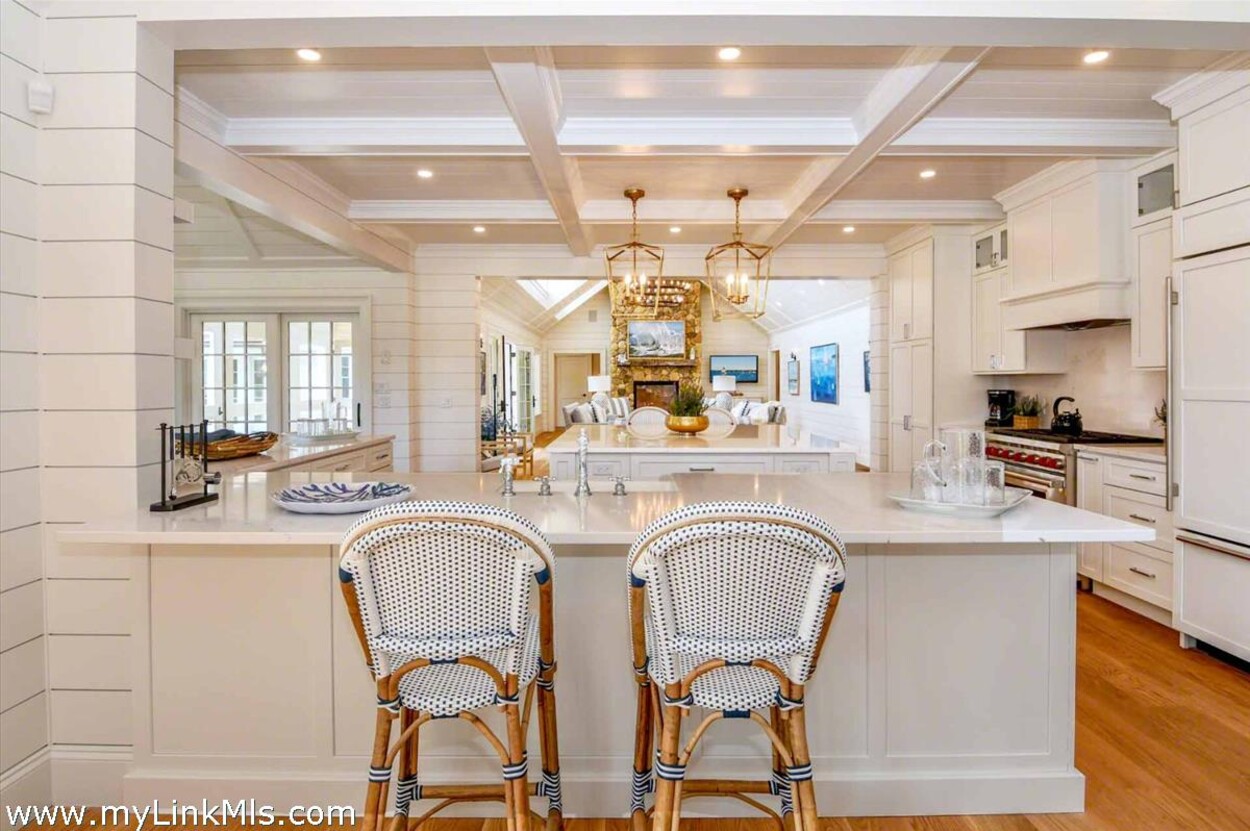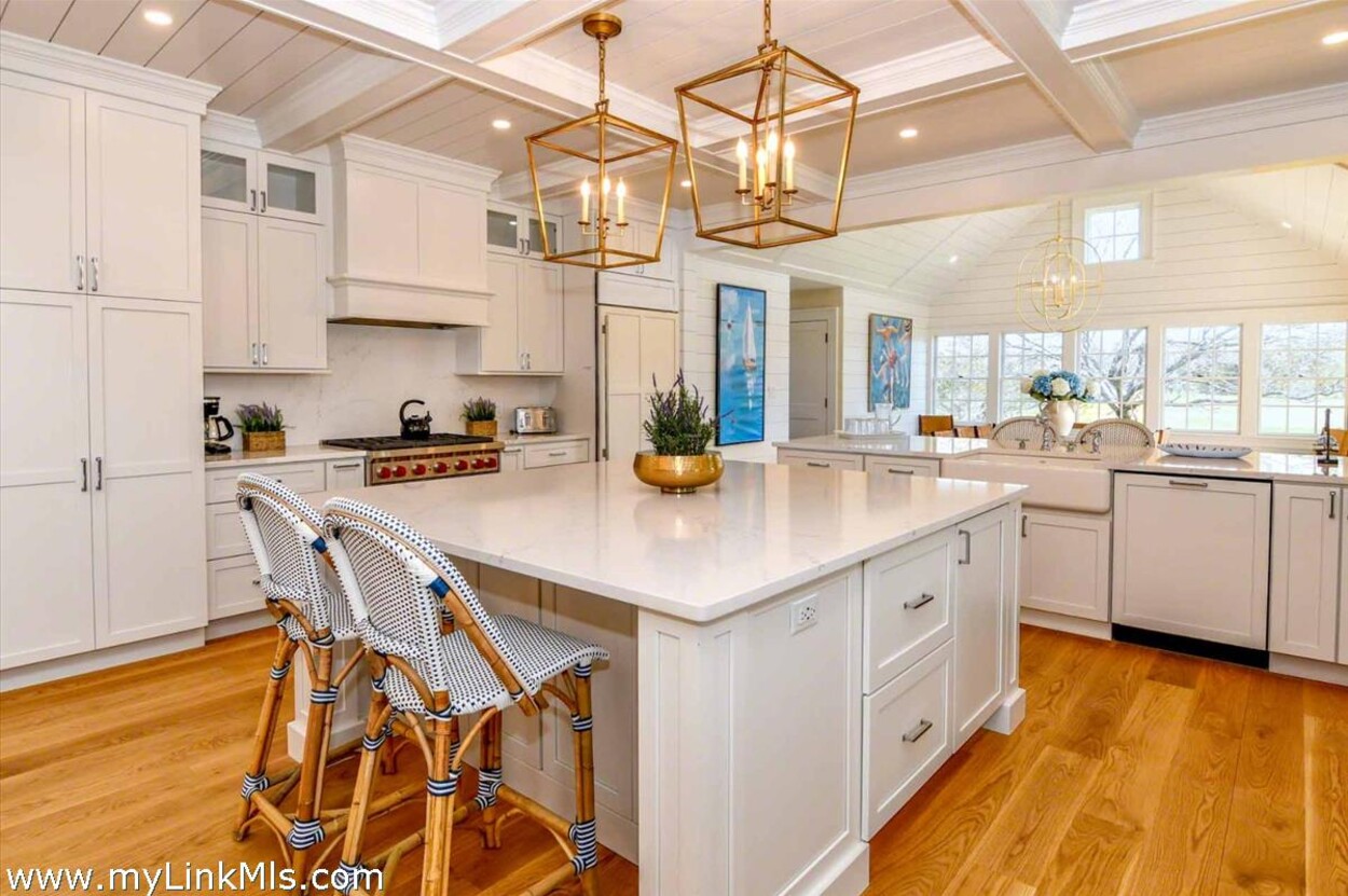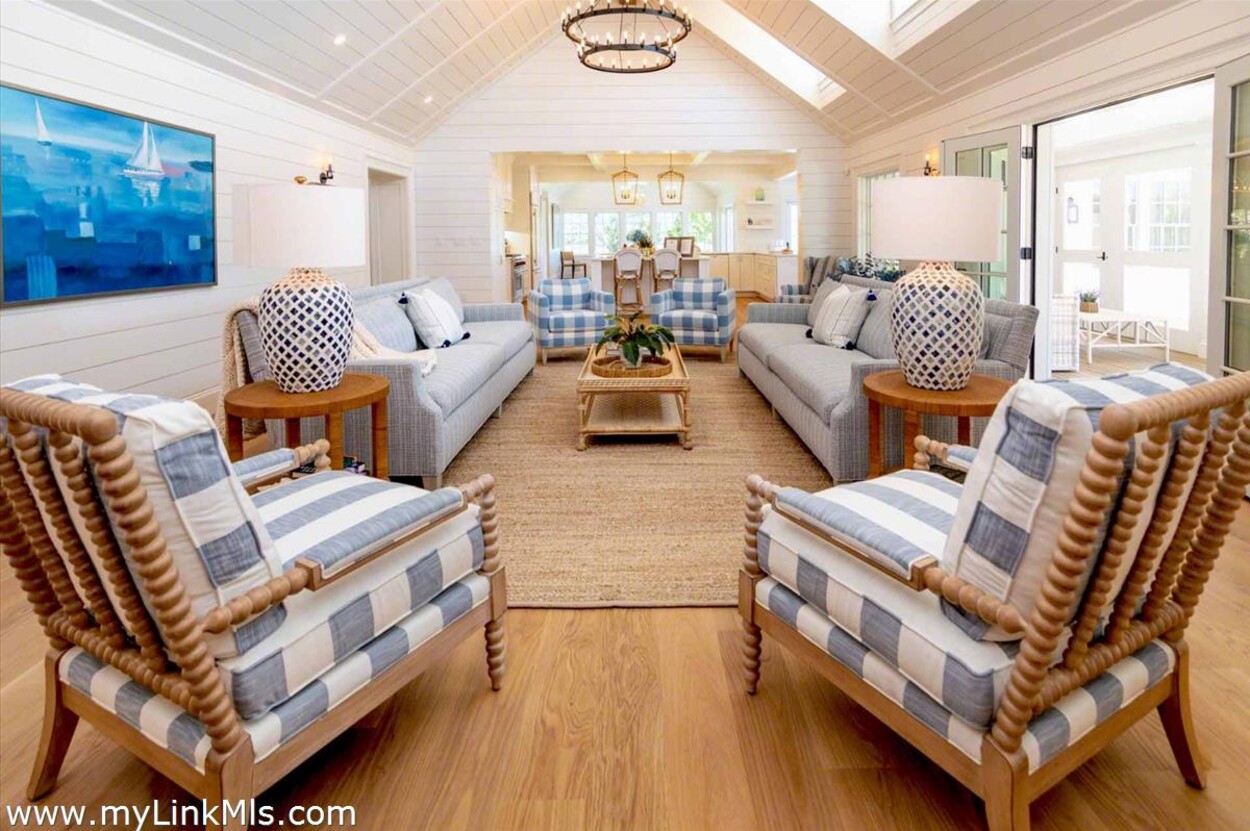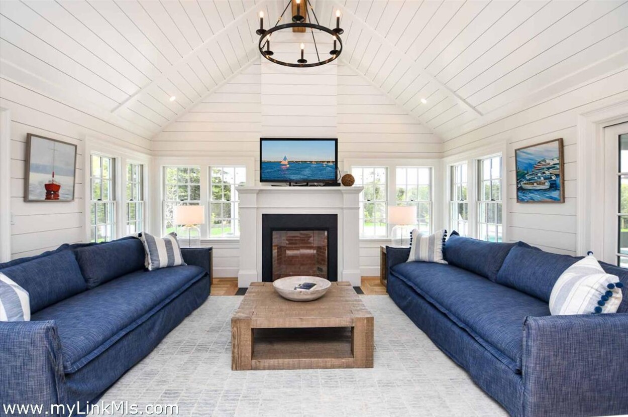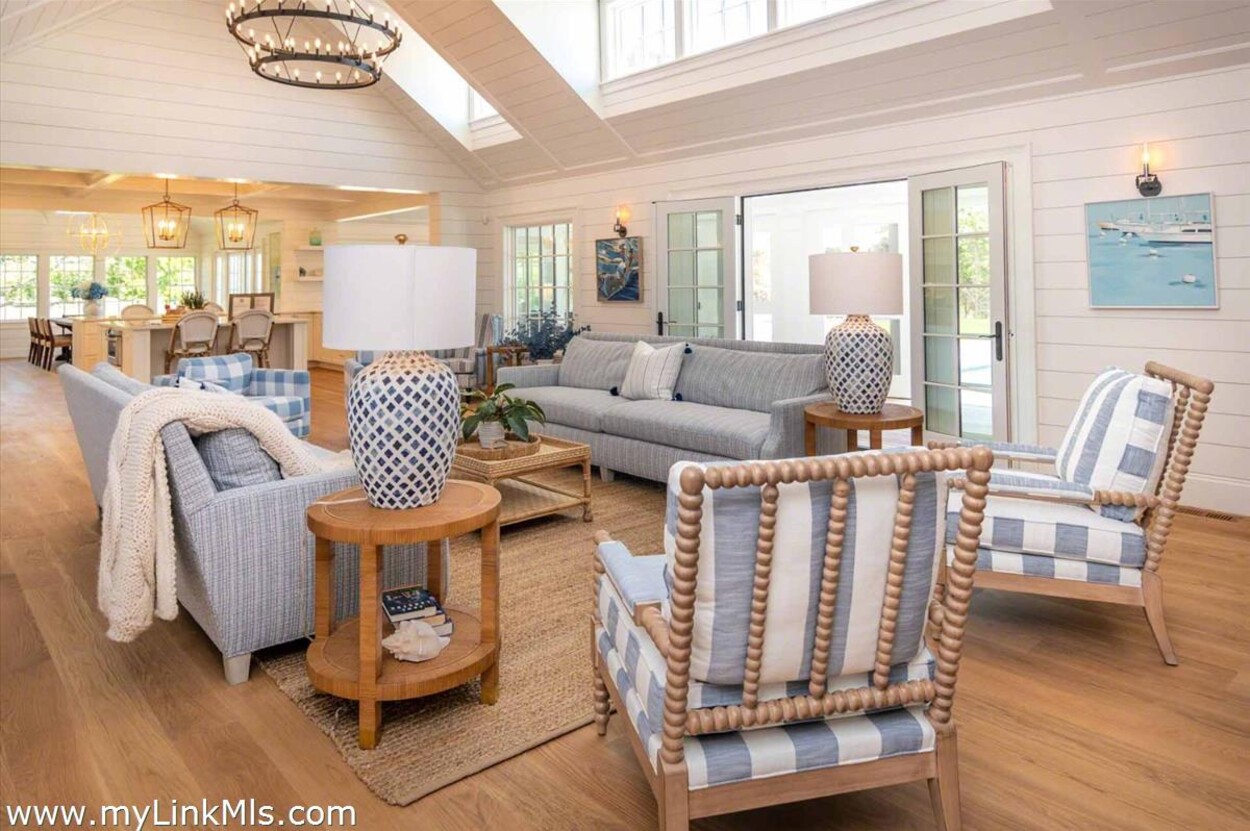 LUXE COASTAL RETREAT IN KATAMA. Sited at the end of a long private drive, amid a bucolic 1.5-acre meadow setting and lush perennial gardens, this elegant coastal retreat, designed by noted architect Patrick Ahearn, offers the epitome of luxurious living in Katama. The home’s timeless and charming character is highlighted by thoughtful, top-notch architectural details and styling throughout. There are vaulted ceilings in every room of the house with custom millwork and paneling, antique rough hewn beams adding charm and character. In addition, the well-designed floor plan features multiple living areas that open out to a central courtyard with bluestone terrace, an outdoor wood-burning fireplace and an 18'x36' gunite swimming pool with built-in whirlpool spa. The property is ideally located near South Beach, with the sounds of the ocean nearby. Furnishings, artwork and accessories are available separately for a turnkey and move-in ready purchase opportunity.