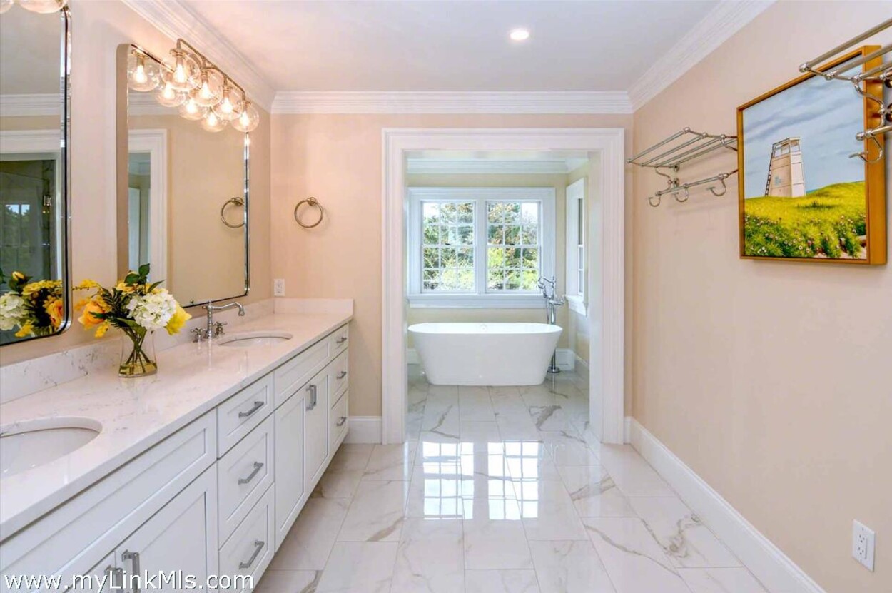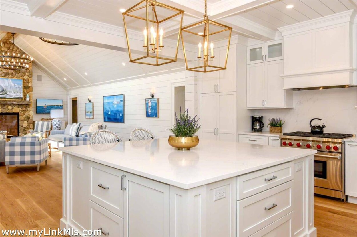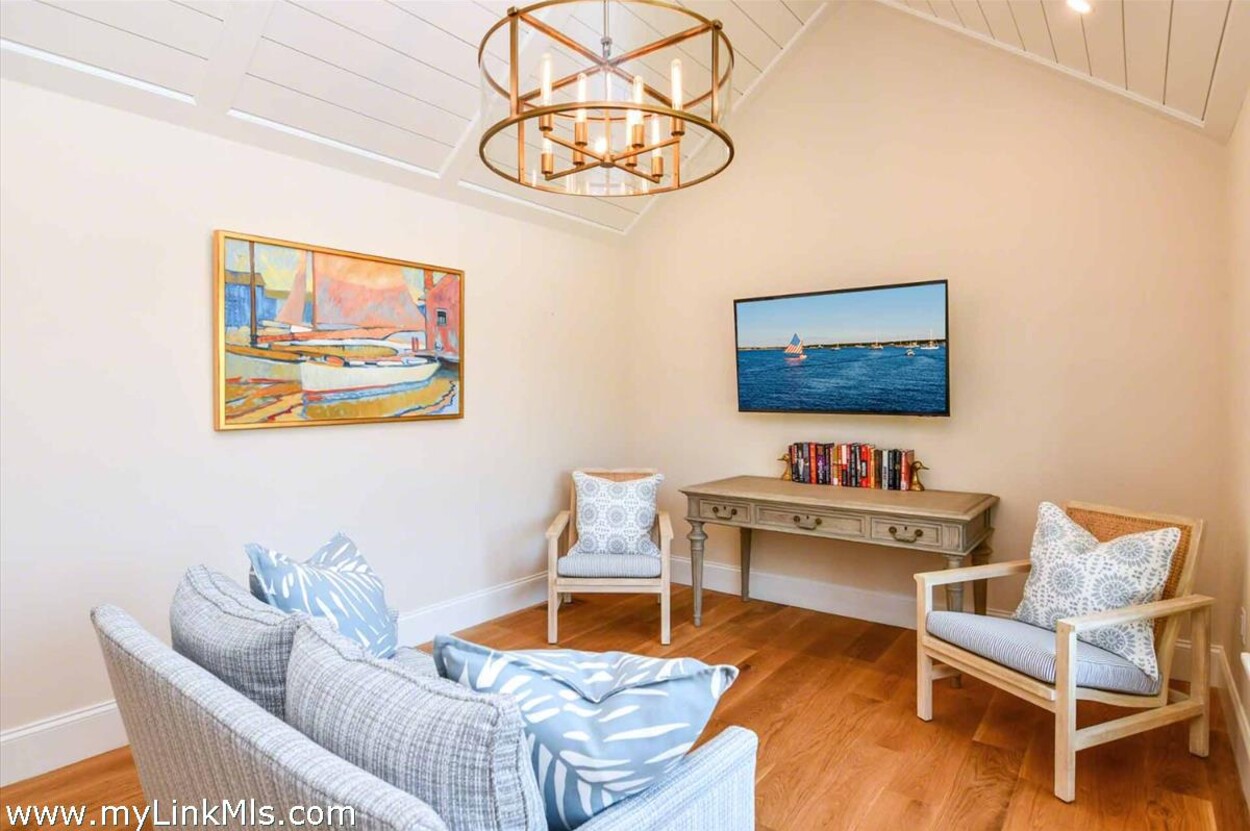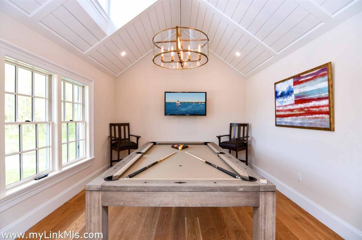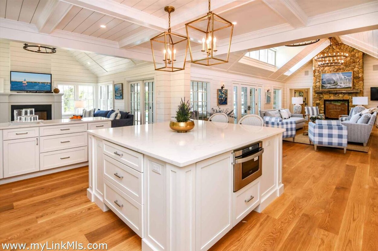 LUXE COASTAL RETREAT IN KATAMA. Sited at the end of a long private drive, amid a bucolic 1.5-acre meadow setting and lush perennial gardens, this elegant coastal retreat, designed by noted architect Patrick Ahearn, offers the epitome of luxurious living in Katama. The home’s timeless and charming character is highlighted by thoughtful, top-notch architectural details and styling throughout. There are vaulted ceilings in every room of the house with custom millwork and paneling, antique rough hewn beams adding charm and character. In addition, the well-designed floor plan features multiple living areas that open out to a central courtyard with bluestone terrace, an outdoor wood-burning fireplace and an 18'x36' gunite swimming pool with built-in whirlpool spa. The property is ideally located near South Beach, with the sounds of the ocean nearby. Furnishings, artwork and accessories are available separately for a turnkey and move-in ready purchase opportunity.