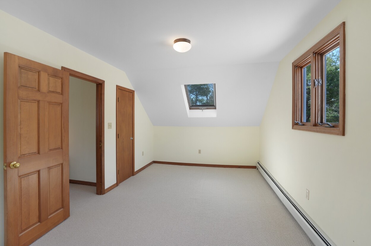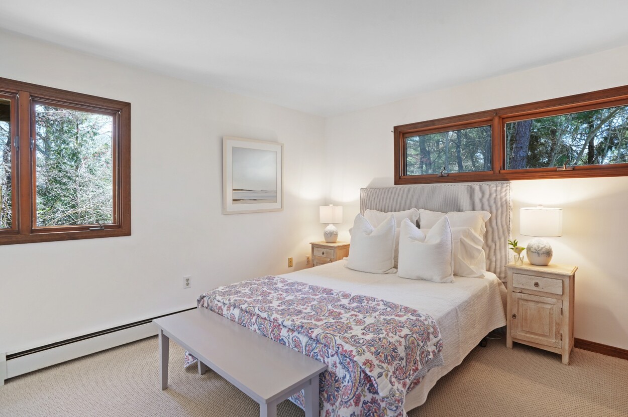 The existing residence features four bedrooms and three bathrooms, complemented by a two-car garage with an artist’s studio above. With town approval, a new six-bedroom septic system may be installed, allowing the home to be expanded accordingly—offering exceptional flexibility for customization and future enhancements.