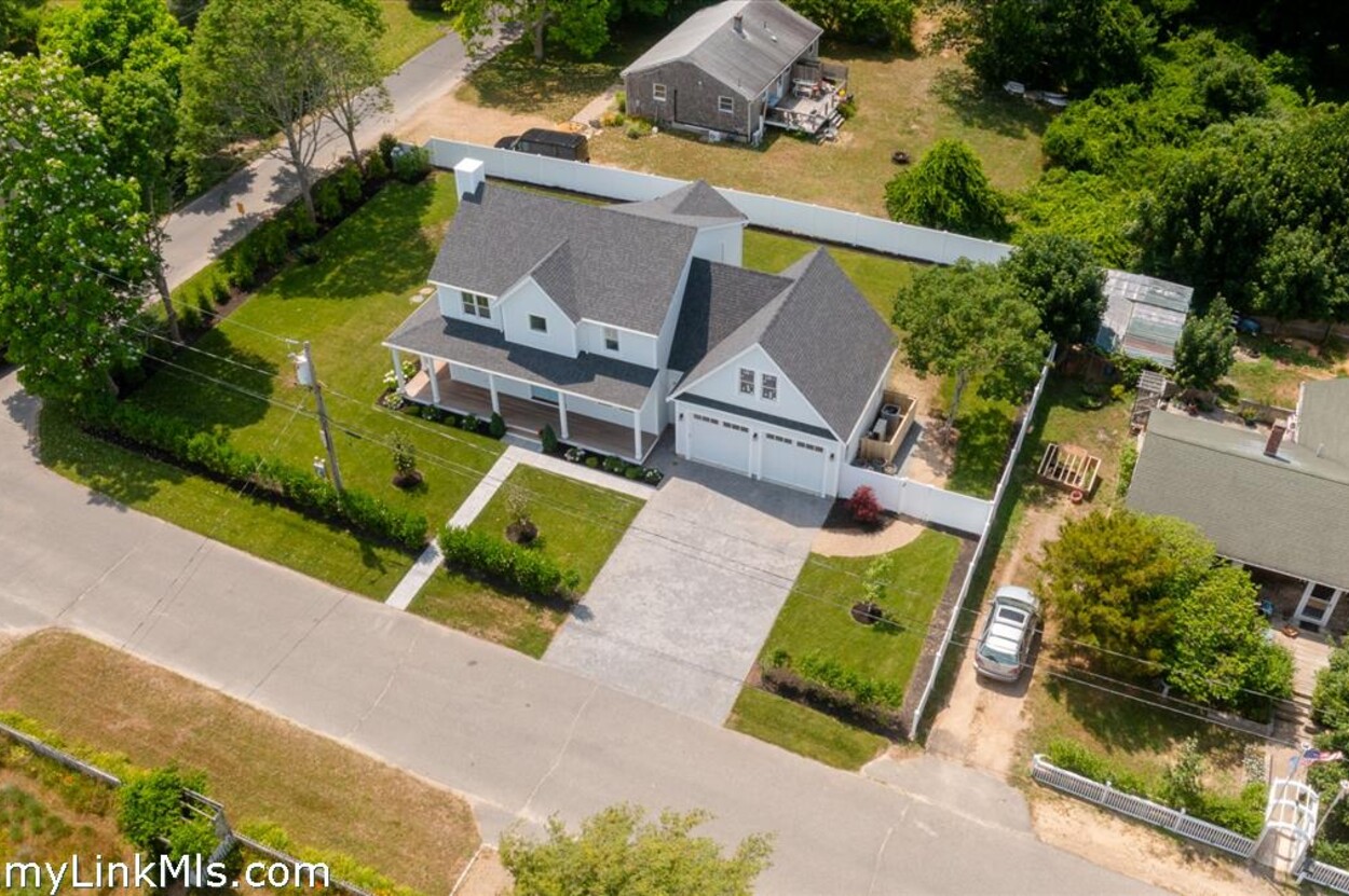 Welcome to your dream home! This stunning new construction boasts a coastal feel throughout and is situated on a spacious corner lot. Inside, you'll find luxurious finishes, including Thermador appliances and quartz countertops in the gourmet kitchen including a large pantry with beverage refrigerator. The elegance continues with white oak floors throughout the home. With 2 bedrooms and 2.5 baths, including a spa room, this residence offers both comfort and relaxation. The bright living room offers a gas fireplace with built-in shelving, and access to a wrap around porch and stone patio. The 2-car garage provides ample storage space. Located just minutes from downtown Oak Bluffs, this home offers convenience and charm. Don't miss the opportunity to own this fantastic property.