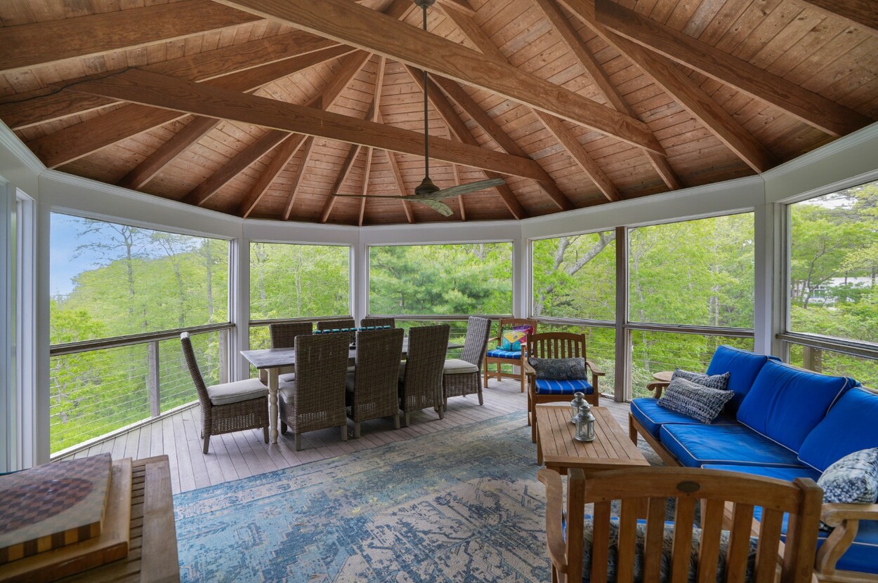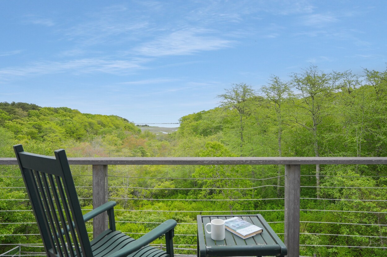 Secluded island retreat nestled above the trees! Located in the desirable Sengekontacket Association, this four-bedroom, three-bathroom home offers stunning views of acres of conservation land, Sengekontacket Pond, and Nantucket Sound. Perched on a hillside, the house provides utmost privacy from all rooms while being just a short walk from the Association boat ramp and kayak storage.
