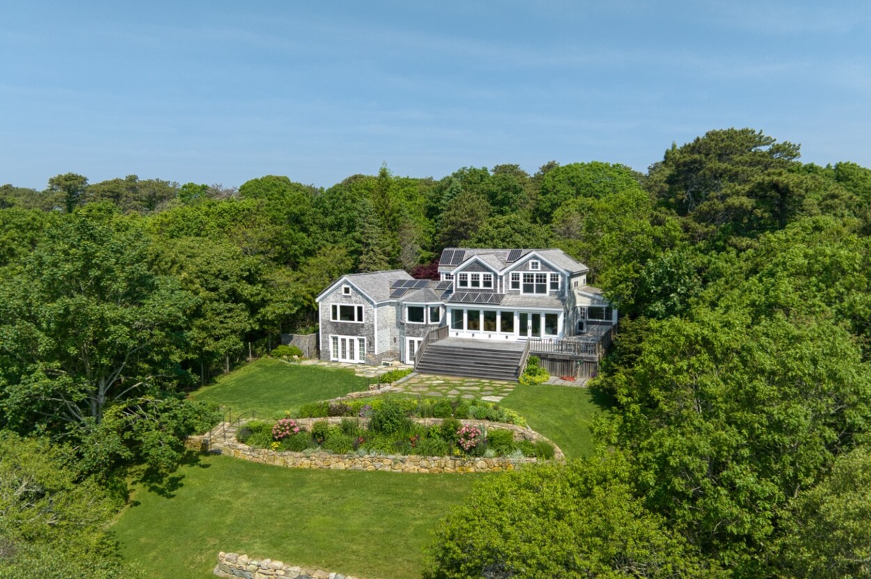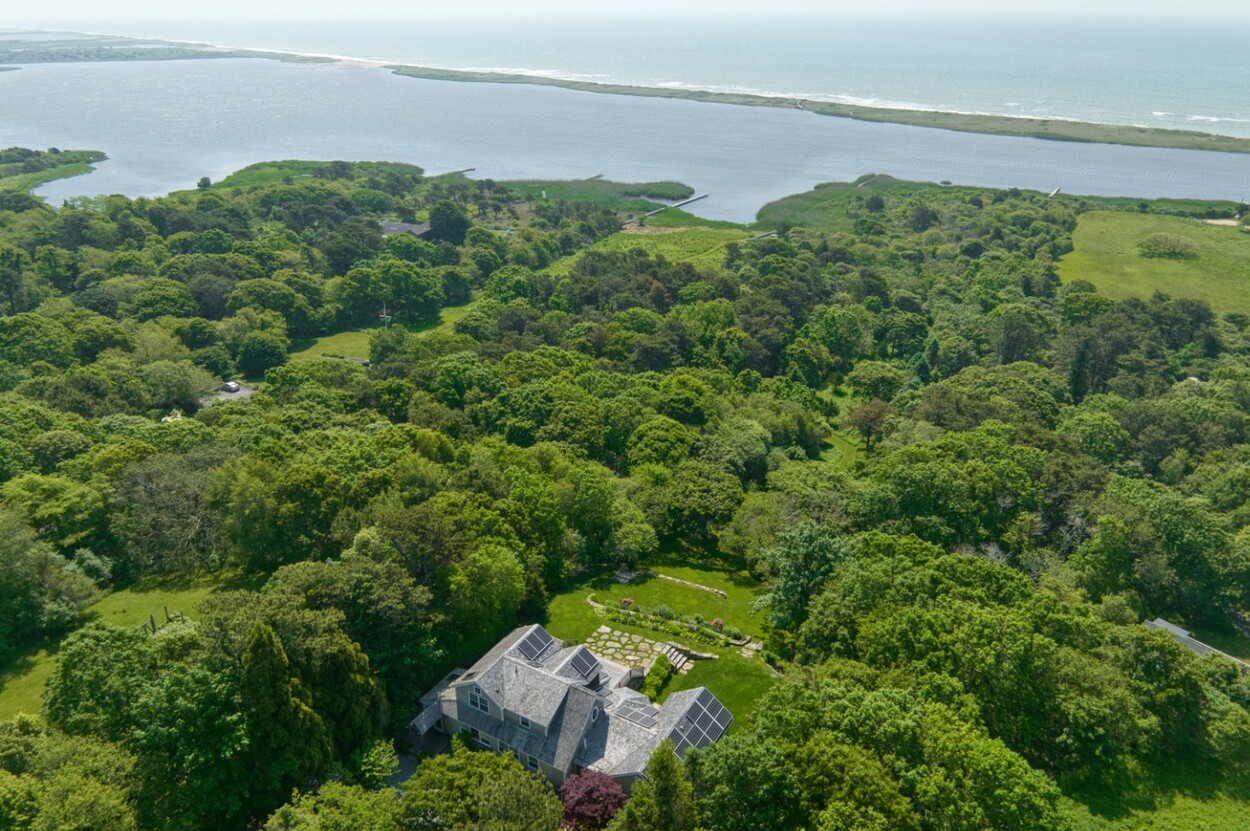 Waterfront South Shore Retreat with Private Dock and Water Views. Set on the edge of Chilmark Pond, this exceptional waterfront residence offers rare privacy, refined design, generous water views and easy pond access. Thoughtfully renovated in 2018, the home blends contemporary sophistication with the beauty of its natural environment. A private dock on the property provides direct pond access. The beautifully manicured path, leads from the house to the dock, where you can launch across the pond to your own private South Shore beach lot, included in this sale. Of course the new owner also has access to iconic Lucy Vincent and Squibnocket beaches. The property is surrounded by over seven acres of abutting conservation land. The grounds are meticulously designed, with mature landscaping and gardens that feel both timeless and intentional. This is more than a residence. It's the key to embracing the Chilmark lifestyle defined by privacy, water access, and understated elegance.