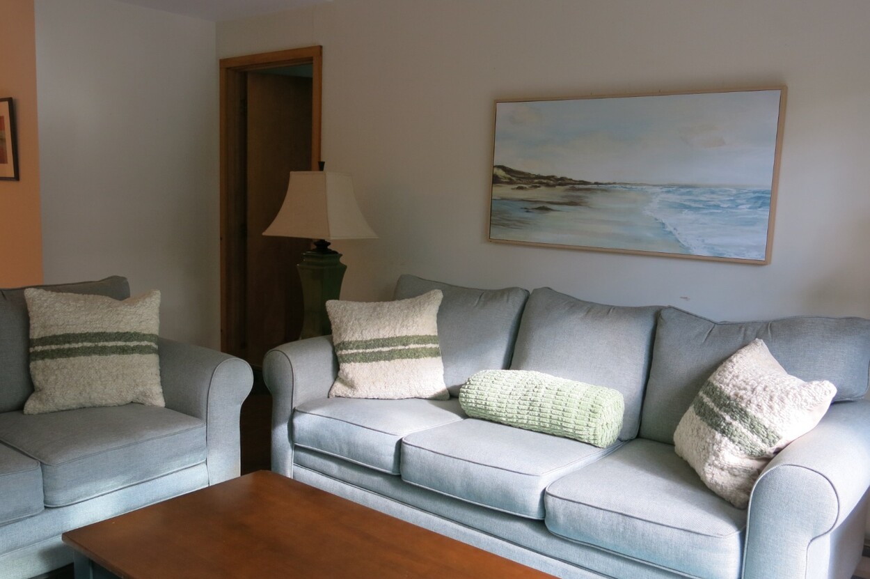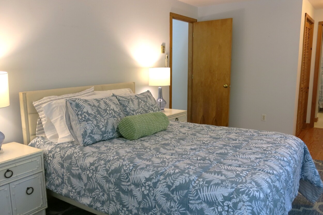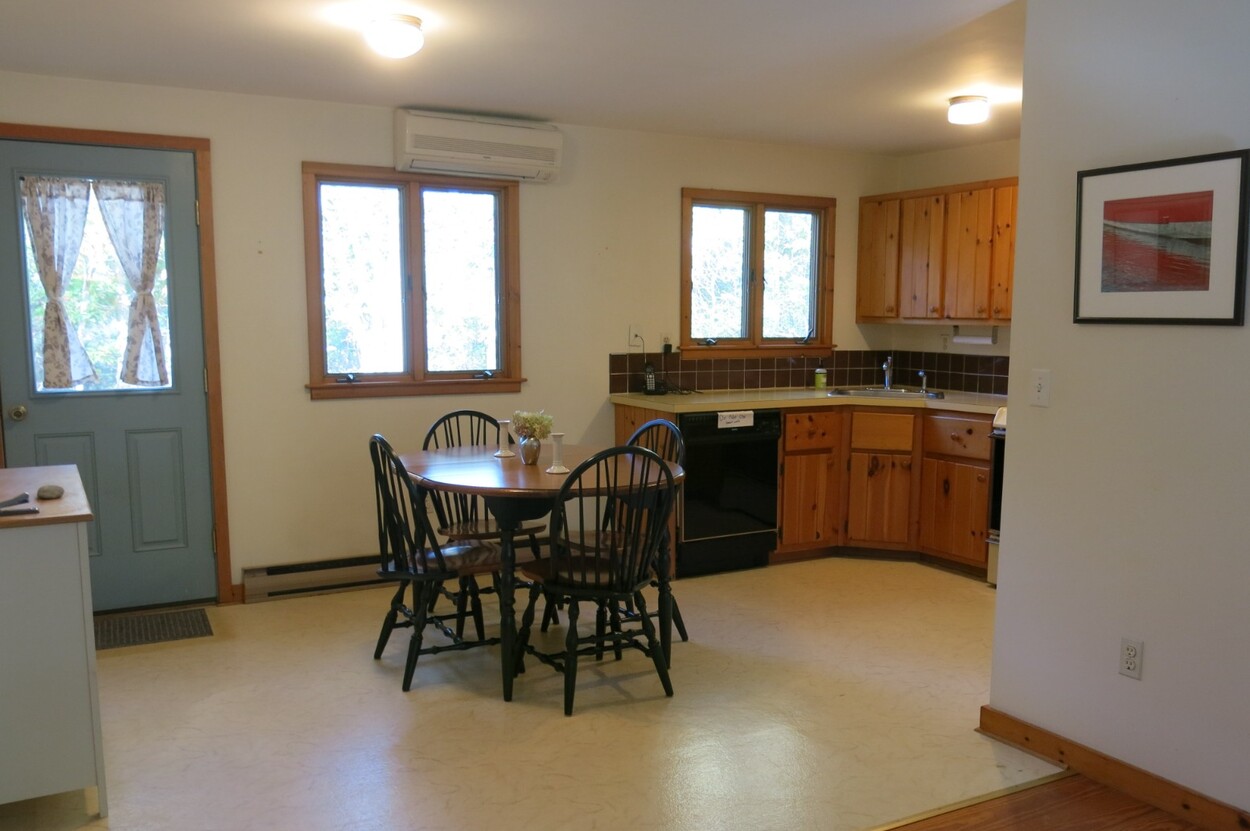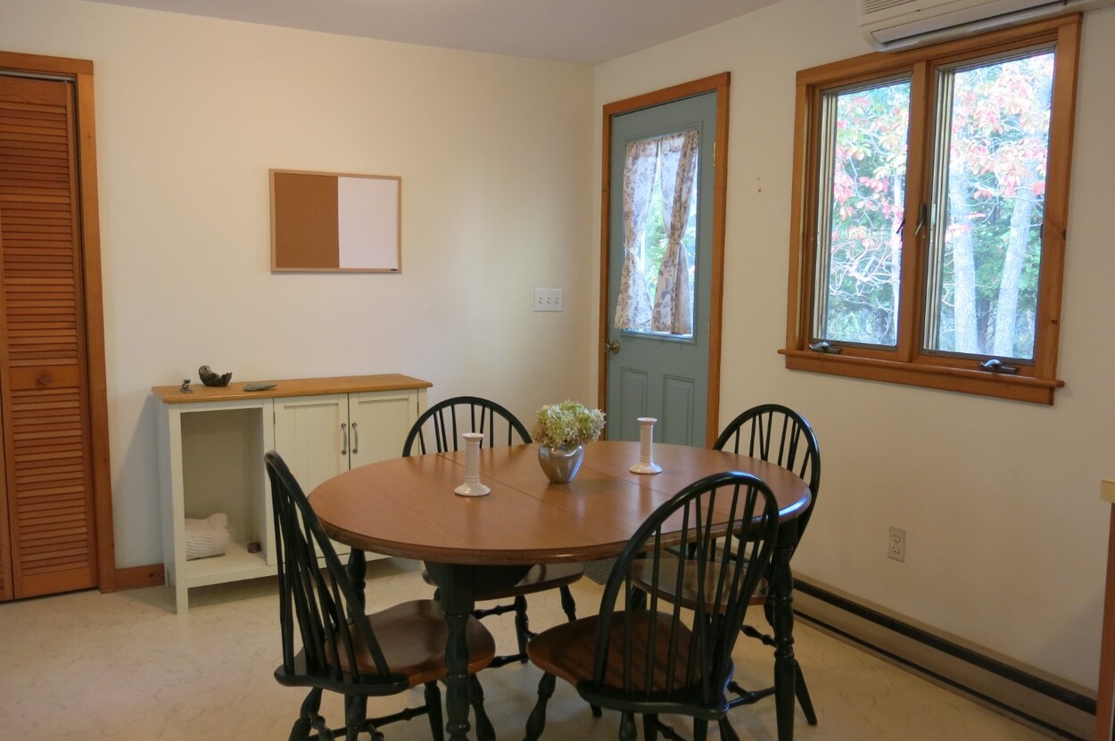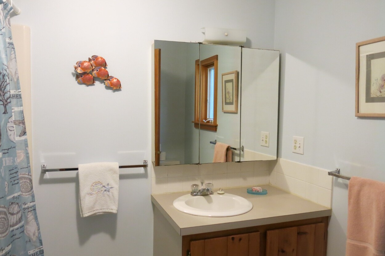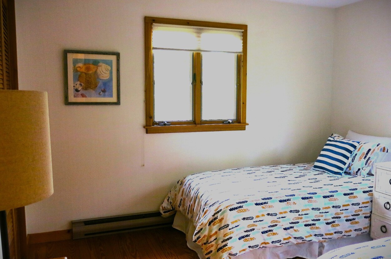 One level living! This ranch-style home has a great layout and some sweet, unexpected features. The living spaces are opened up to each other allowing the wall of sliders in the living room to flood the rooms with light - and these sliders give access out to the deck with serene views of the woodlands beyond; where Stoney Hill Path bounds the entire south side of the property. The primary suite is at one end of the home and has been expanded by the addition of a 3-season sunroom that also offers access out to the deck. At the far end of the house are the two guest bedrooms and their shared bath. The living room and all of the bedrooms have hardwood floors, the home is offered nicely furnished - and the full basement offers opportunities for additional living spaces. Great location just a hop, skip and jump to North Tisbury amenities or down-town Vineyard Haven.