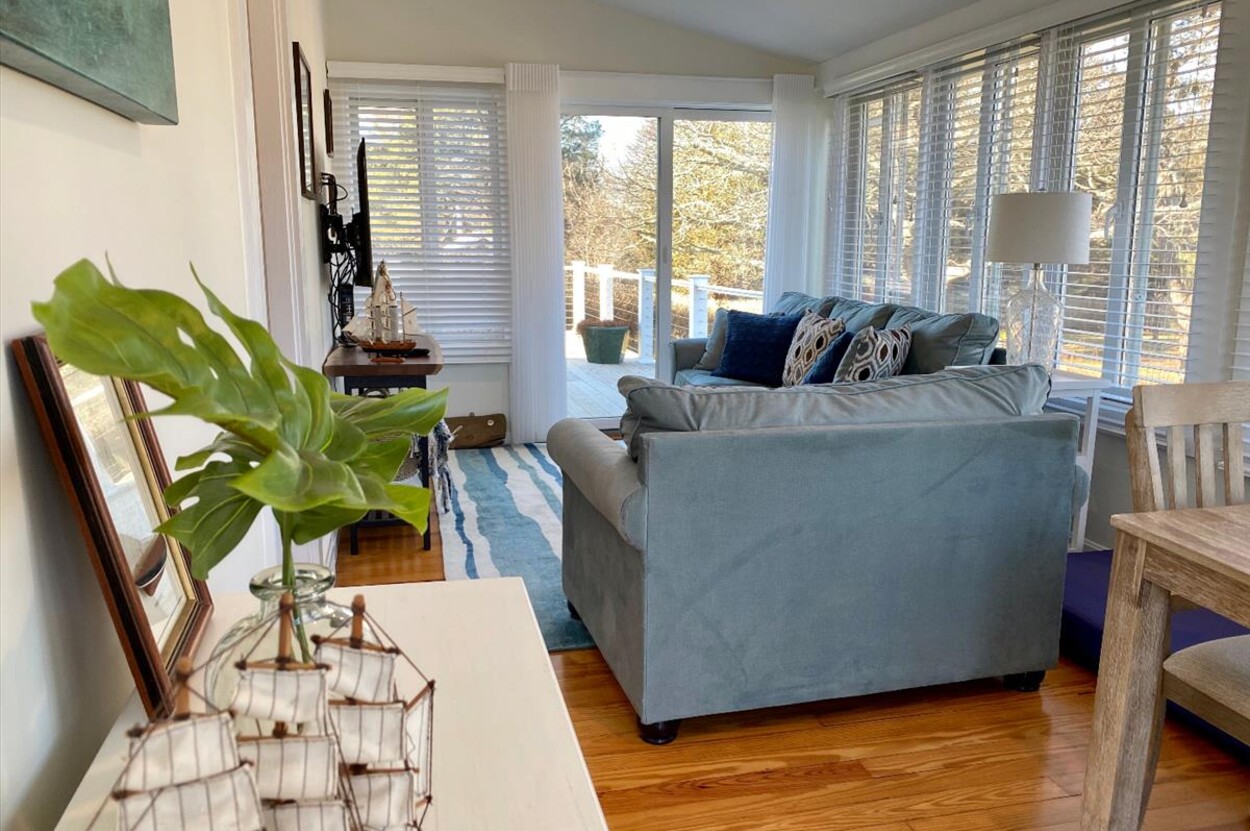 Perfect opportunity to own a Beautiful Beach Cottage with access to Lagoon. Totally renovated in 2019. It has been designed for relaxed living and memorable entertaining. There are 3 seating areas on the deck, to enjoy dining outside, experiencing incredible waterviews and lovely sky reflections of sunsets. Beautifully landscaped, with seasonal flowers, and Butterfly flowering bushes. Easement to the boardwalk to reach the beach, swim, kayak, canoe, and sunbathe. Two story Beach Cottage, first floor kitchen leads to the dining, living and sun room, Queen bedroom and a full bath. Second floor features three bedrooms. Master Queen en-suite with water view, Guest Bunk bedroom and Twin bedroom which share full bath. Wood floors, water views throughout, new outdoor shower. In the morning enjoy what mother nature has in store for you. The cry of gulls,deer running on the beach, it is just solitude. Property is being sold with 2 unbuildable lots. You will never have to worry about losing your view. This is a property worth seeing. Leases are in place for 2024 to be transferred to Buyer at closing. Showings only on Sunday from 12:00pm until 2:30pm during the rental season.