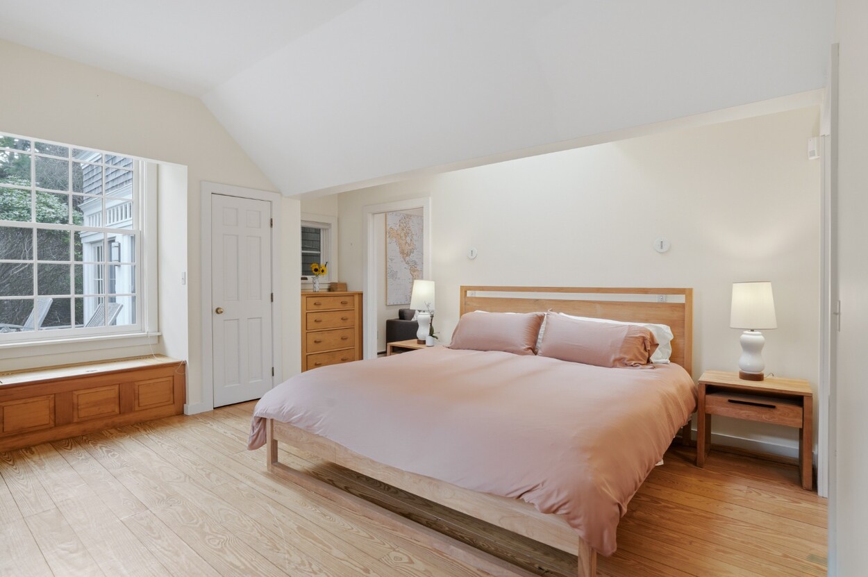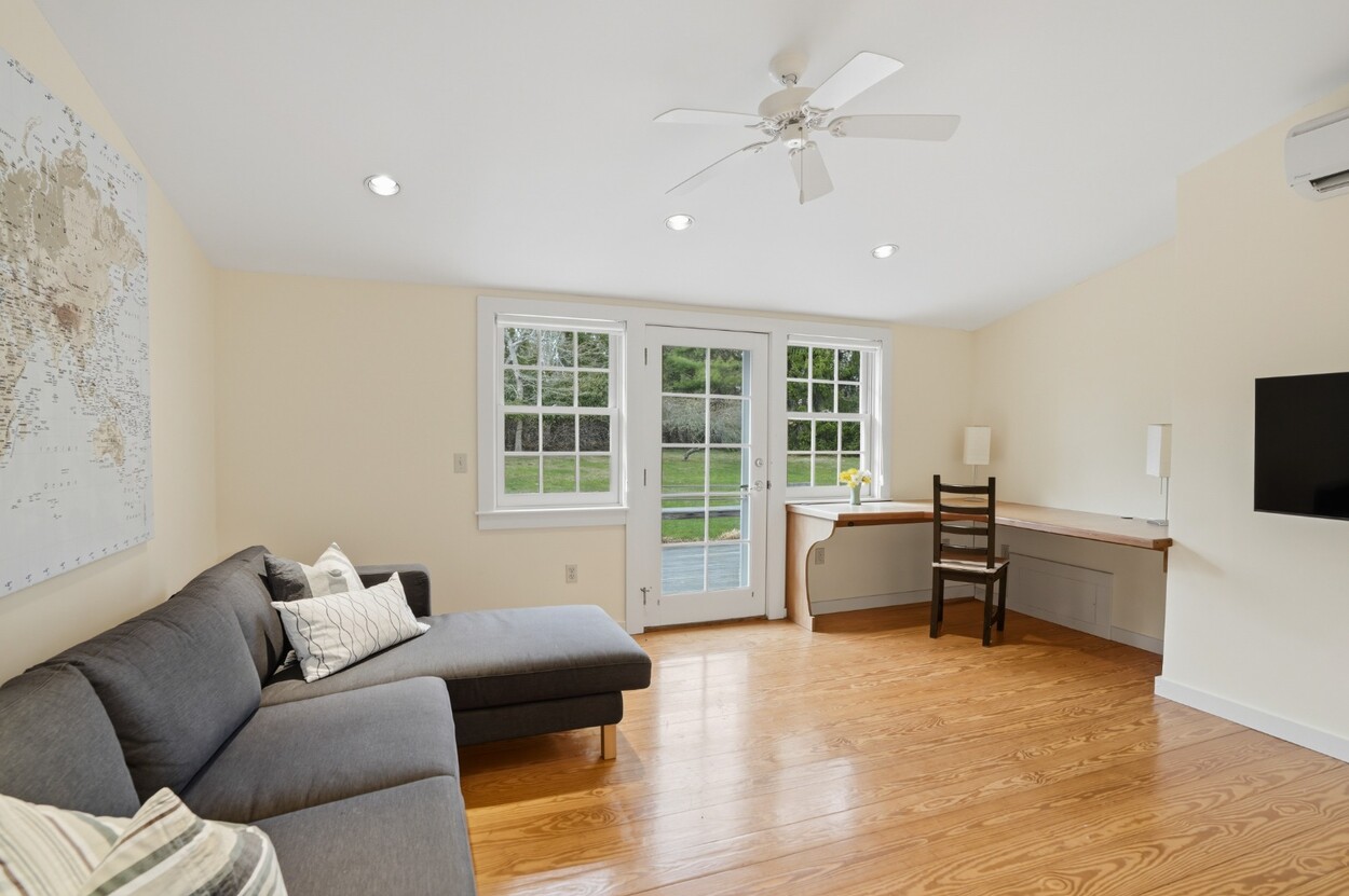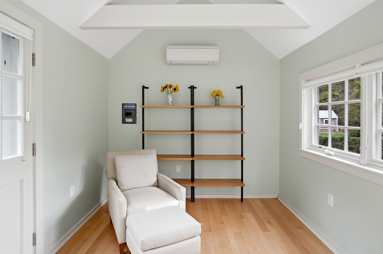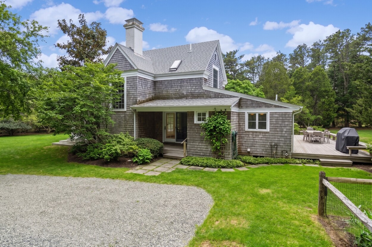 Nestled within the prestigious Nats Farm Association this beautifully crafted West Tisbury home offers a quintessential Martha’s Vineyard retreat. Designed for comfortable island living, the first floor features a bright, open floor plan with a well-appointed kitchen, dining area, and inviting living room, perfect for gathering with family and friends. The generously sized primary suite is thoughtfully positioned on the main level and includes a private office and a spa-like bath with soaking tub and separate shower. French doors open to a lovely stone patio surrounded by established perennial gardens, an ideal setting for morning coffee or summer evenings under the stars. Upstairs are two welcoming guest bedrooms, while a detached bedroom suite provides exceptional flexibility and privacy for visitors. Tucked quietly in the backyard, a charming cottage creates yet another cozy retreat space for guests, creative pursuits, or peaceful relaxation.