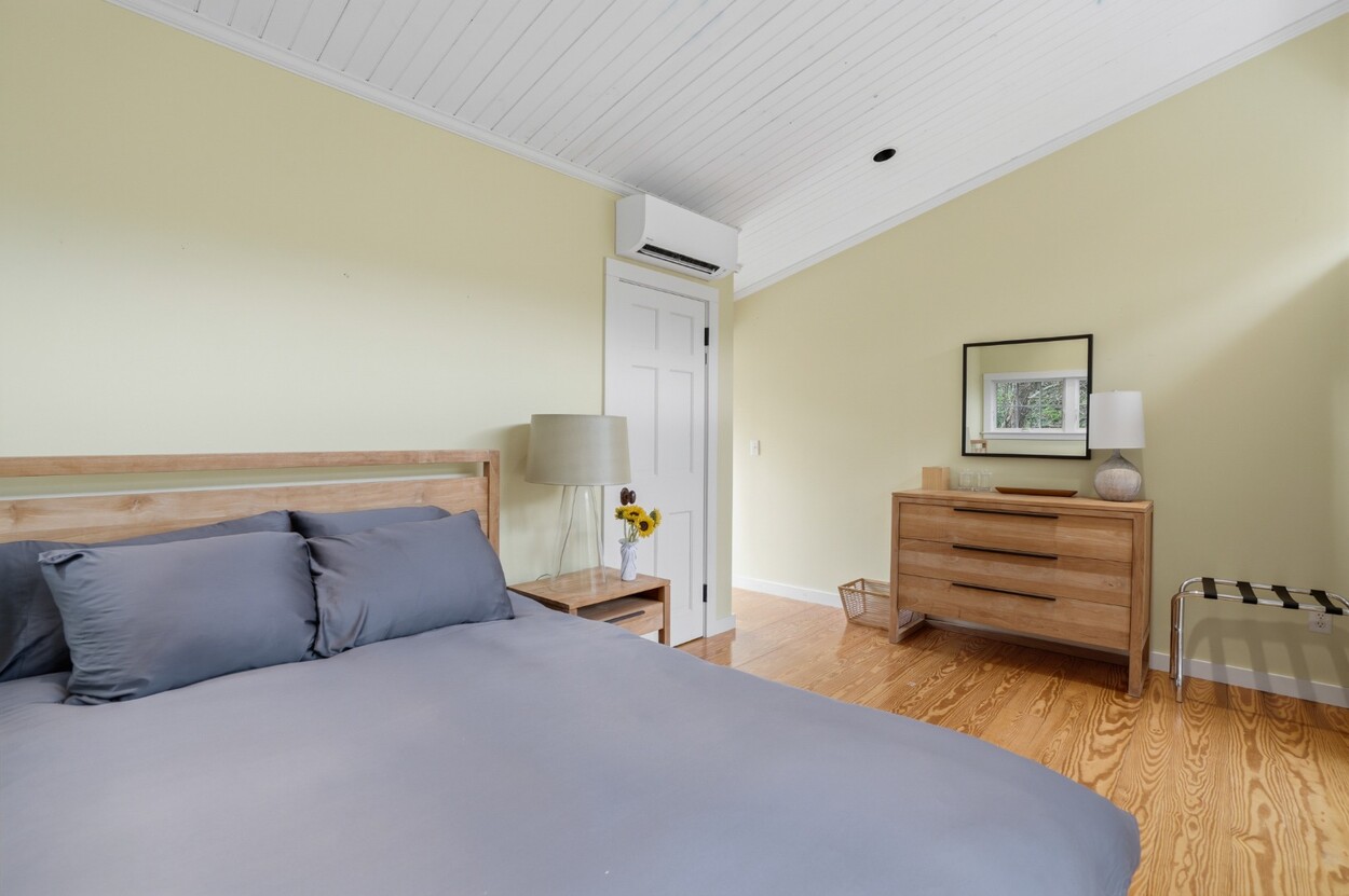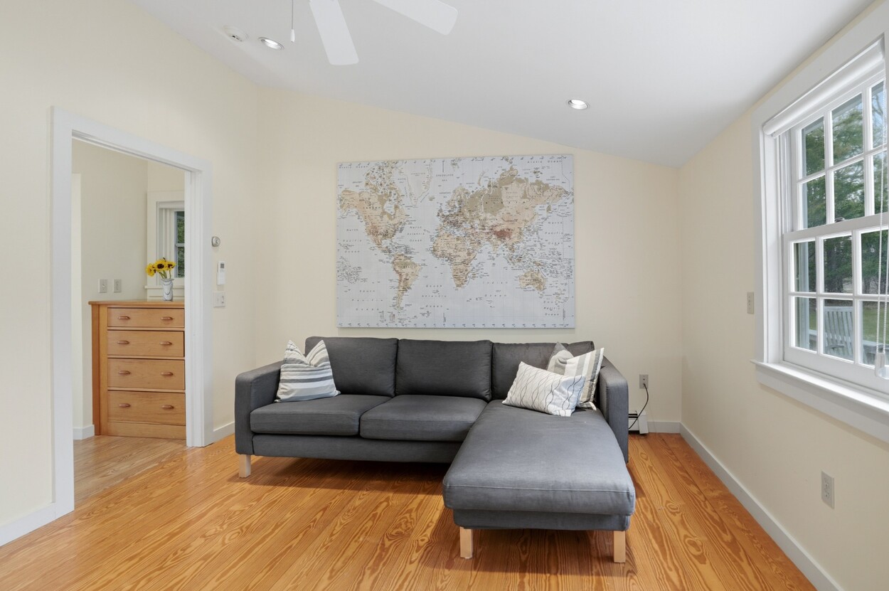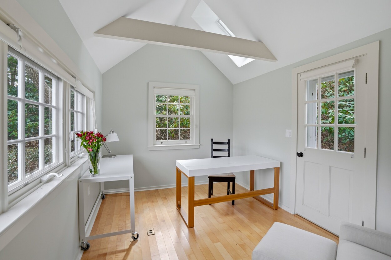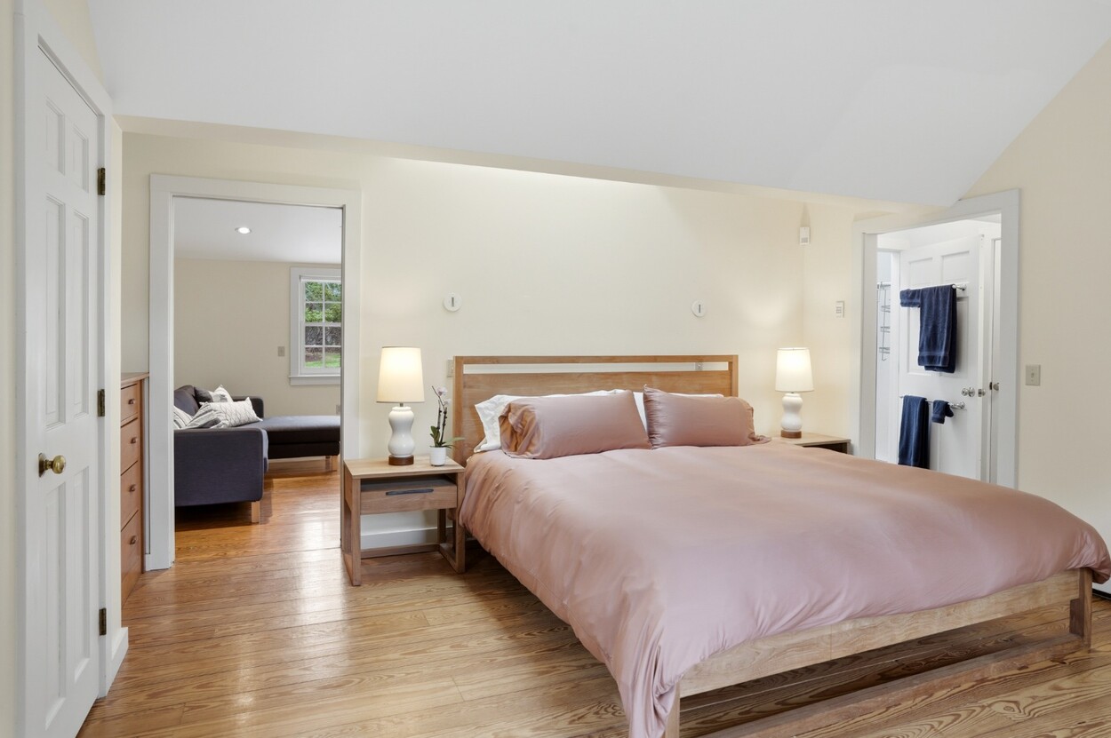 Nestled within the prestigious Nats Farm Association this beautifully crafted West Tisbury home offers a quintessential Martha’s Vineyard retreat. Designed for comfortable island living, the first floor features a bright, open floor plan with a well-appointed kitchen, dining area, and inviting living room, perfect for gathering with family and friends. The generously sized primary suite is thoughtfully positioned on the main level and includes a private office and a spa-like bath with soaking tub and separate shower. French doors open to a lovely stone patio surrounded by established perennial gardens, an ideal setting for morning coffee or summer evenings under the stars. Upstairs are two welcoming guest bedrooms, while a detached bedroom suite provides exceptional flexibility and privacy for visitors. Tucked quietly in the backyard, a charming cottage creates yet another cozy retreat space for guests, creative pursuits, or peaceful relaxation.