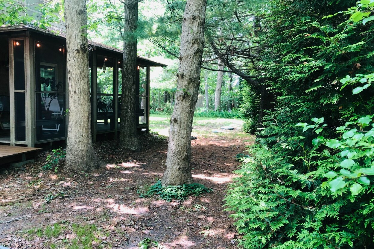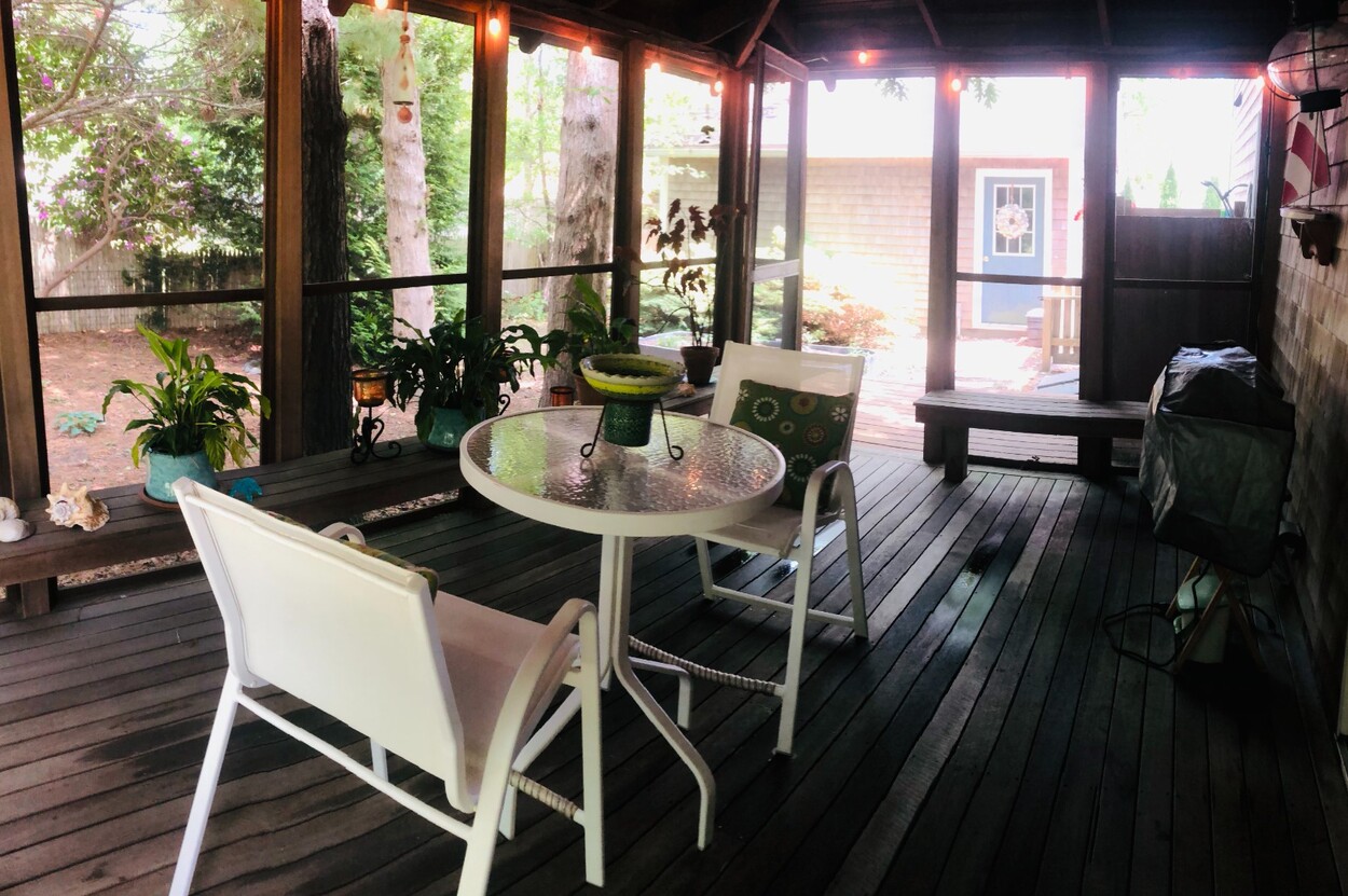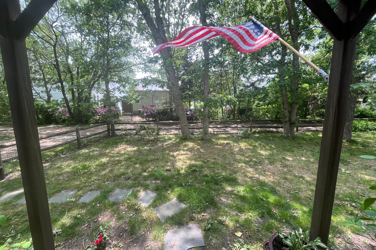 The spacious yard features old-growth trees and is fully fenced-in for a dog lover sanctuary.