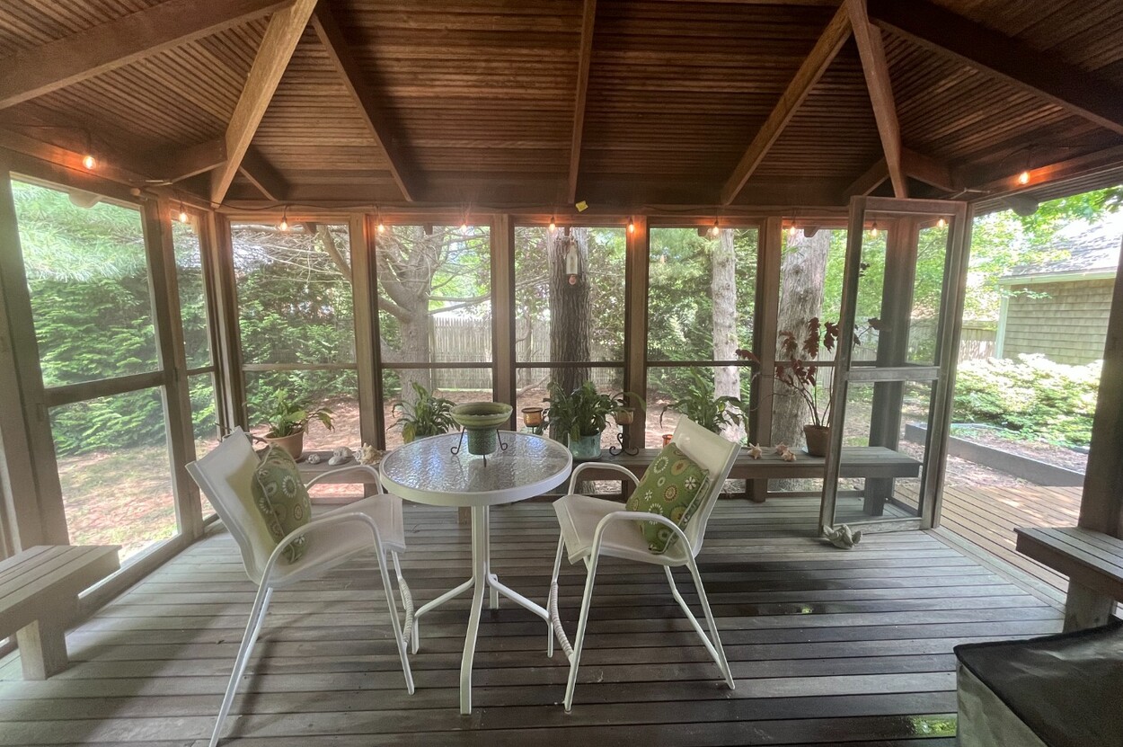 Nestled in a quiet Oak Bluffs neighborhood, this colonial-style home and its surrounding area gives the feel of being up-Island. The well-kept home was built in 2008 and is move-in ready. Located 1 mile to Circuit Avenue, and less than a mile to both the Oak Bluffs School and the Oak Bluffs Library, the property is also conveniently close to a bus stop and the bike path. Its many features include an open floor plan downstairs, with kitchen, dining, and gas fireplace-enhanced living area perfect for entertaining. A separate office, or formal dining room, and a full bathroom, round out the first floor, in addition to a large, screened-in mahogany porch.
